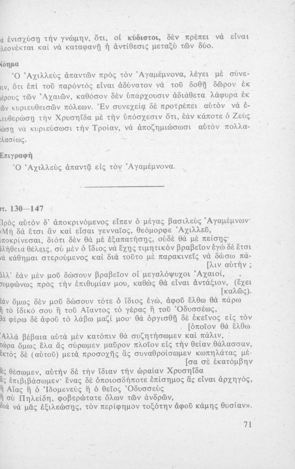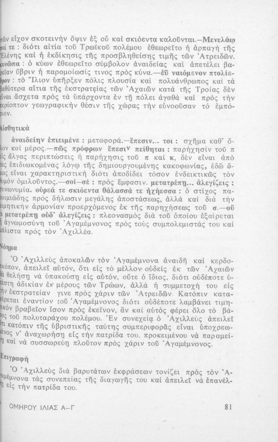 Ομήρου Ιλιάς, Ραψωδία Α' και Γ' δια τους μαθητάς της Ε΄ τάξεως των Γυμνασίων