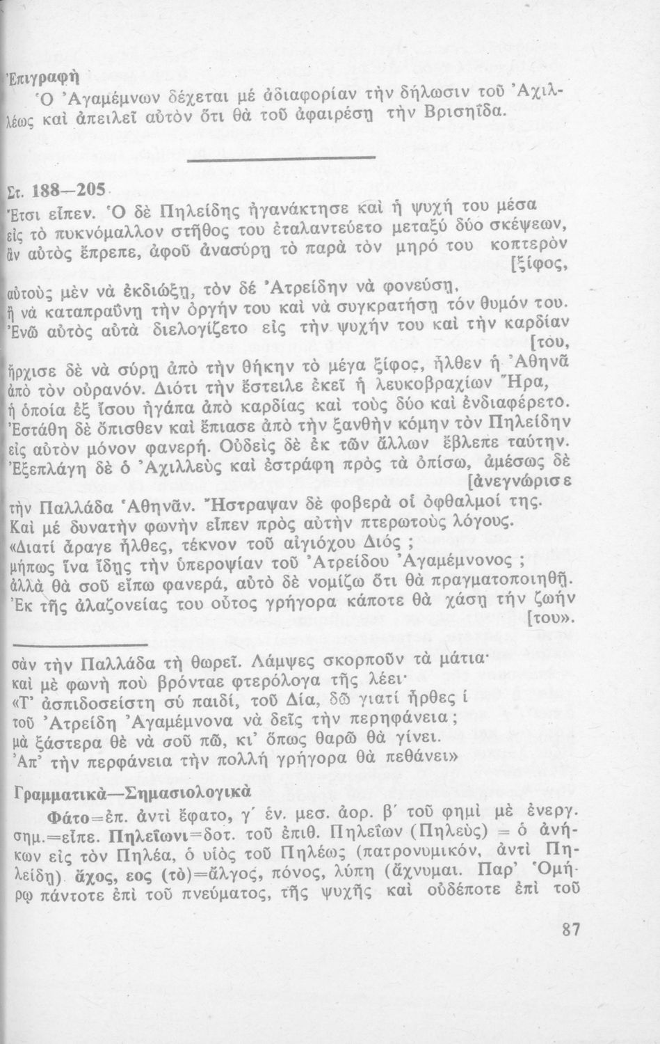 Μαθητικό βοήθημα Αρχαίων Ελληνικών για τους μαθητές της Ε' τάξης των Γυμνασίων. Περιέχει το κείμενο, μετάφραση, γραμματικά και συντακτικά σχόλια.