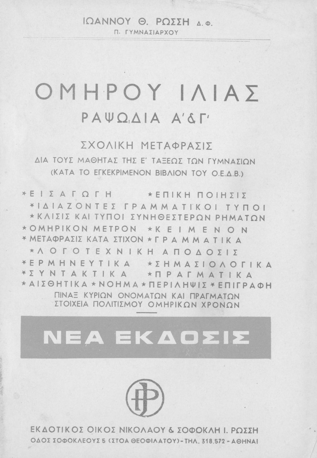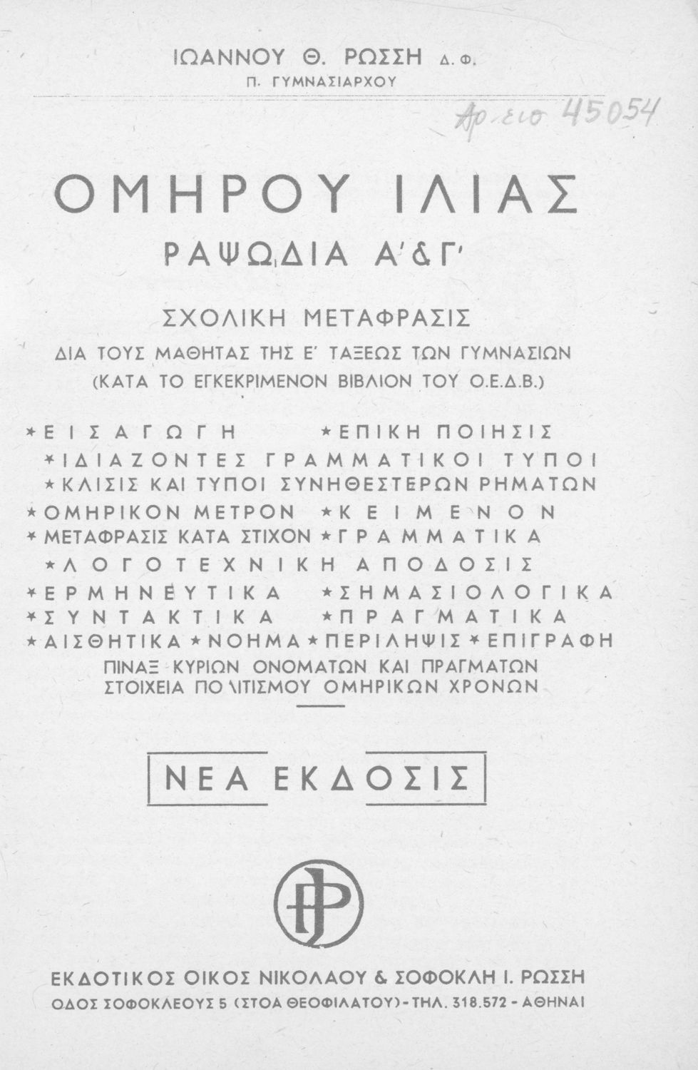 Εκδότης: Νικόλαος και Σοφοκλής Ι. Ρώσσης Τόπος έκδοσης: Αθήνα |