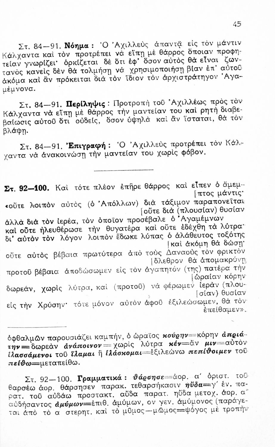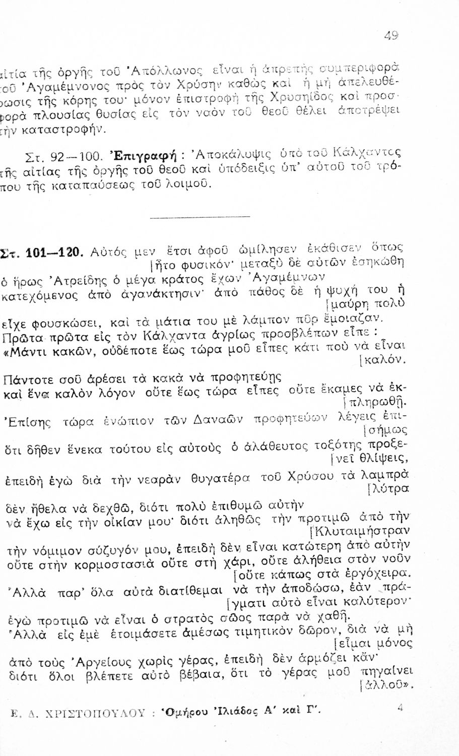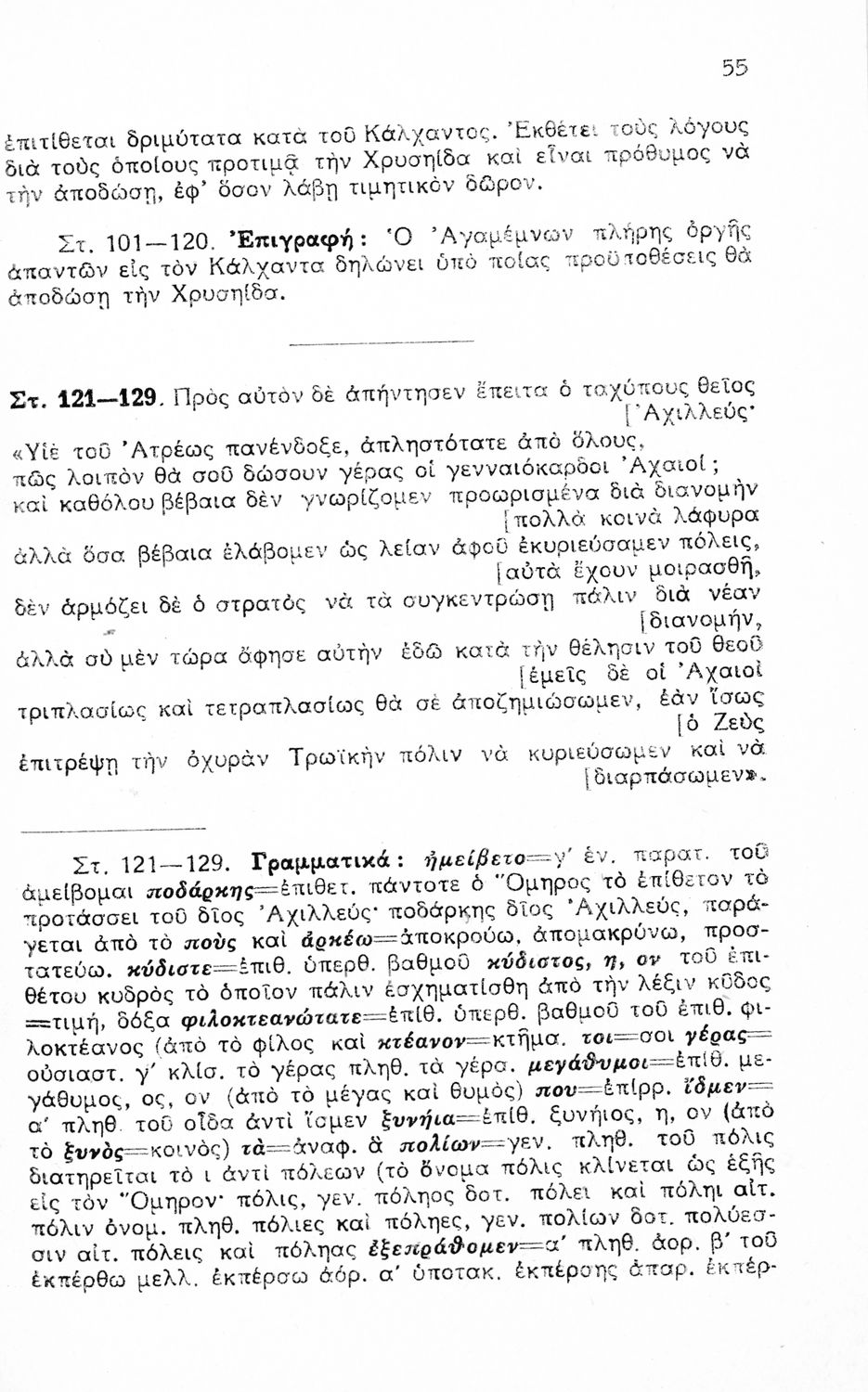 Κωδικός αναγνώρισης: 01-45055 Τίτλος: Ομήρου Ιλιάδα, Εκλογαί Α-Γ ραψωδιών δια τους μαθητάς της Ε΄ τάξεως των εξατάξιων Γυμνασίων Συγγραφέας: Ευθ. Δ. Χριστόπουλος (μετάφραση, σχόλια) Μέγεθος και υπόστρωμα: Μαθητικό βοήθημα, μαλακό εξώφυλλο, 142 σελίδες. |