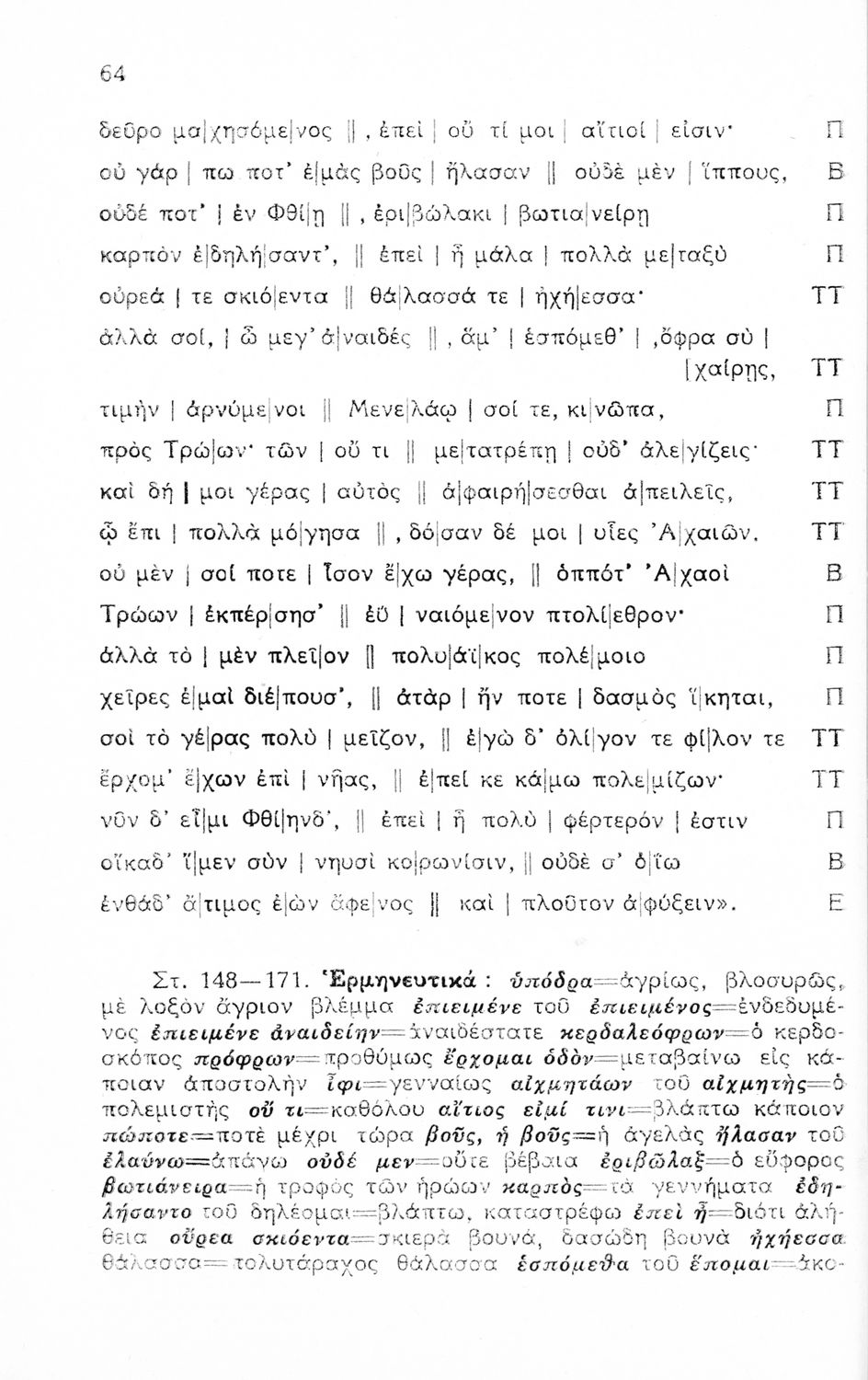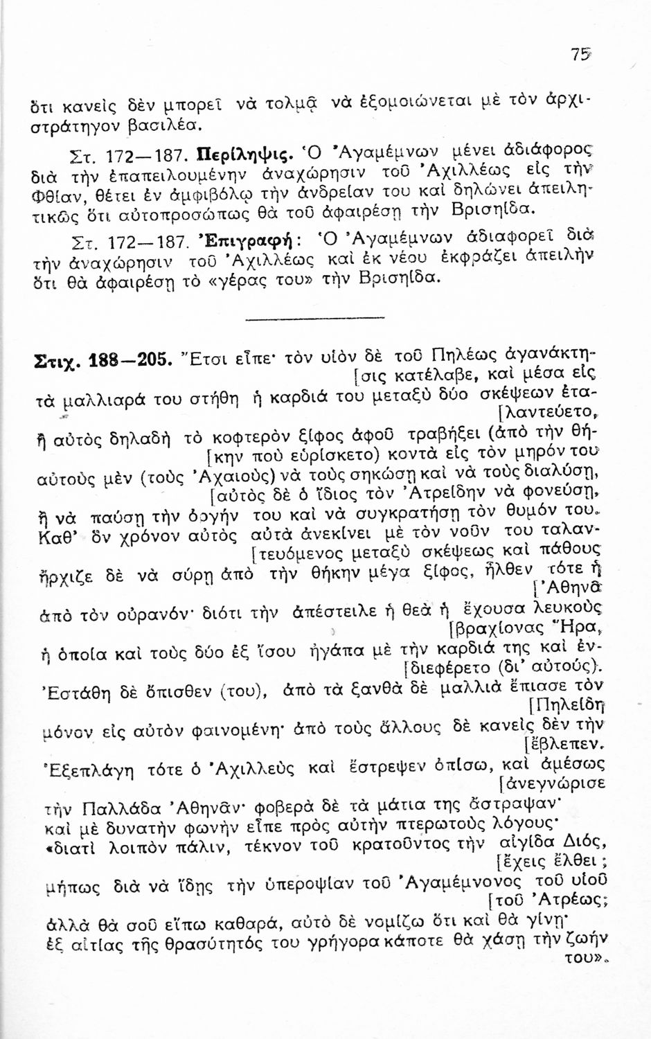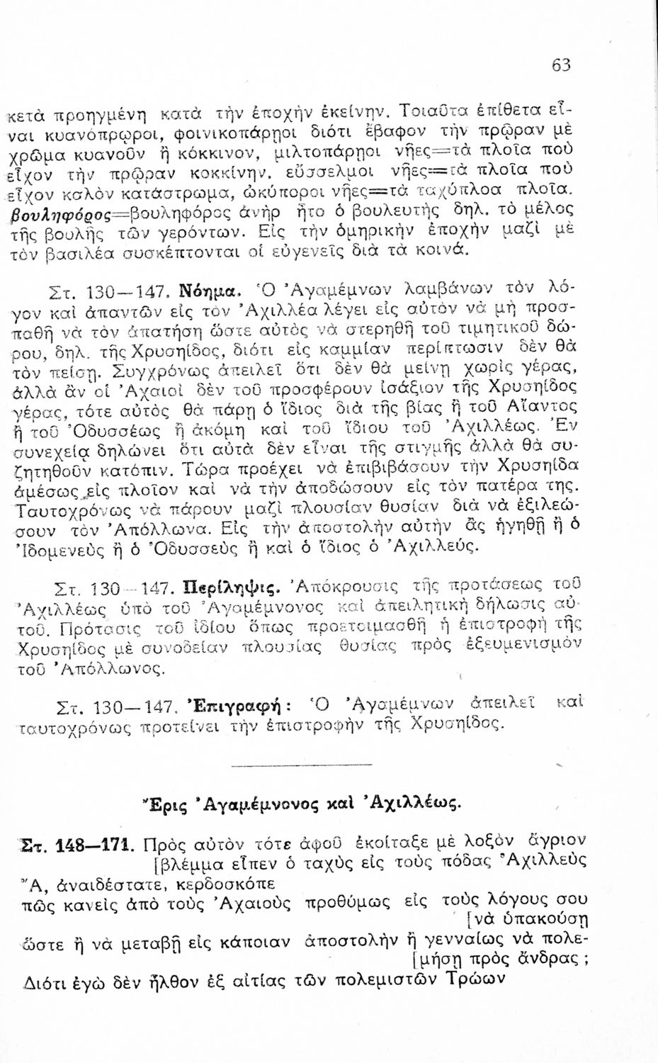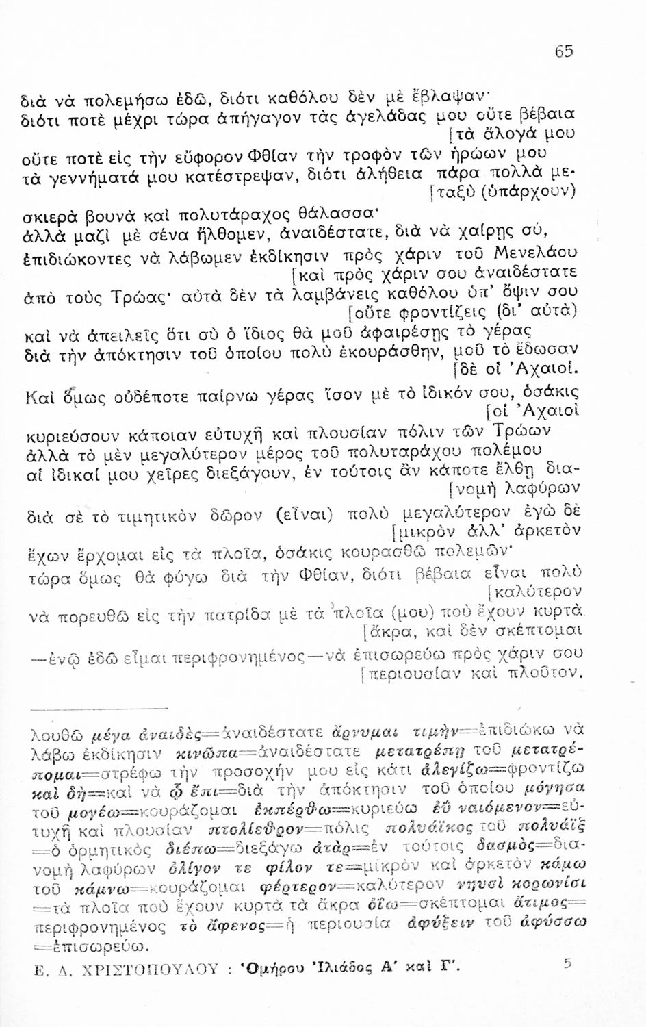 Ομήρου Ιλιάδα, Εκλογαί Α-Γ ραψωδιών δια τους μαθητάς της Ε΄ τάξεως των εξατάξιων Γυμνασίων