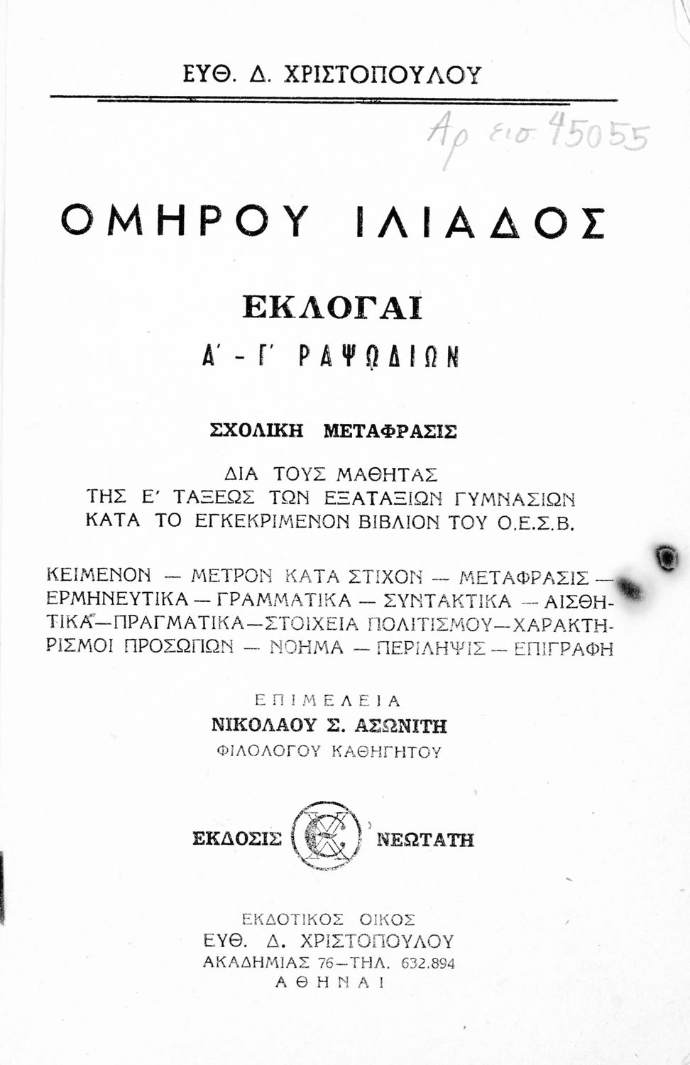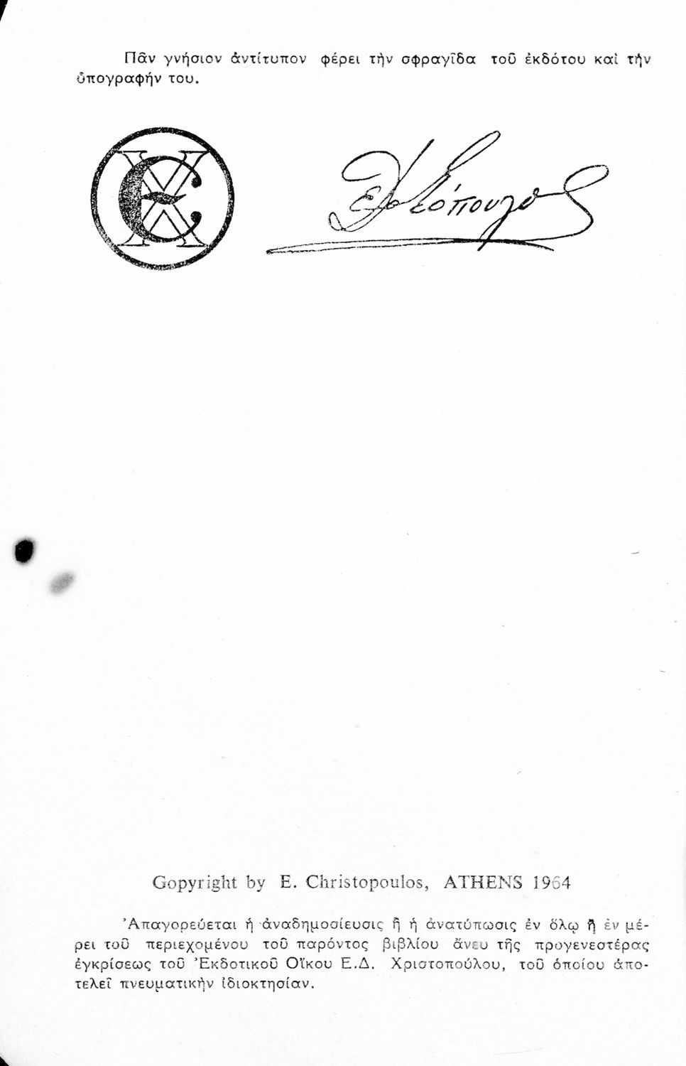 Εκδότης: Ευθ. Χριστόπουλος Τόπος έκδοσης: Αθήνα |
