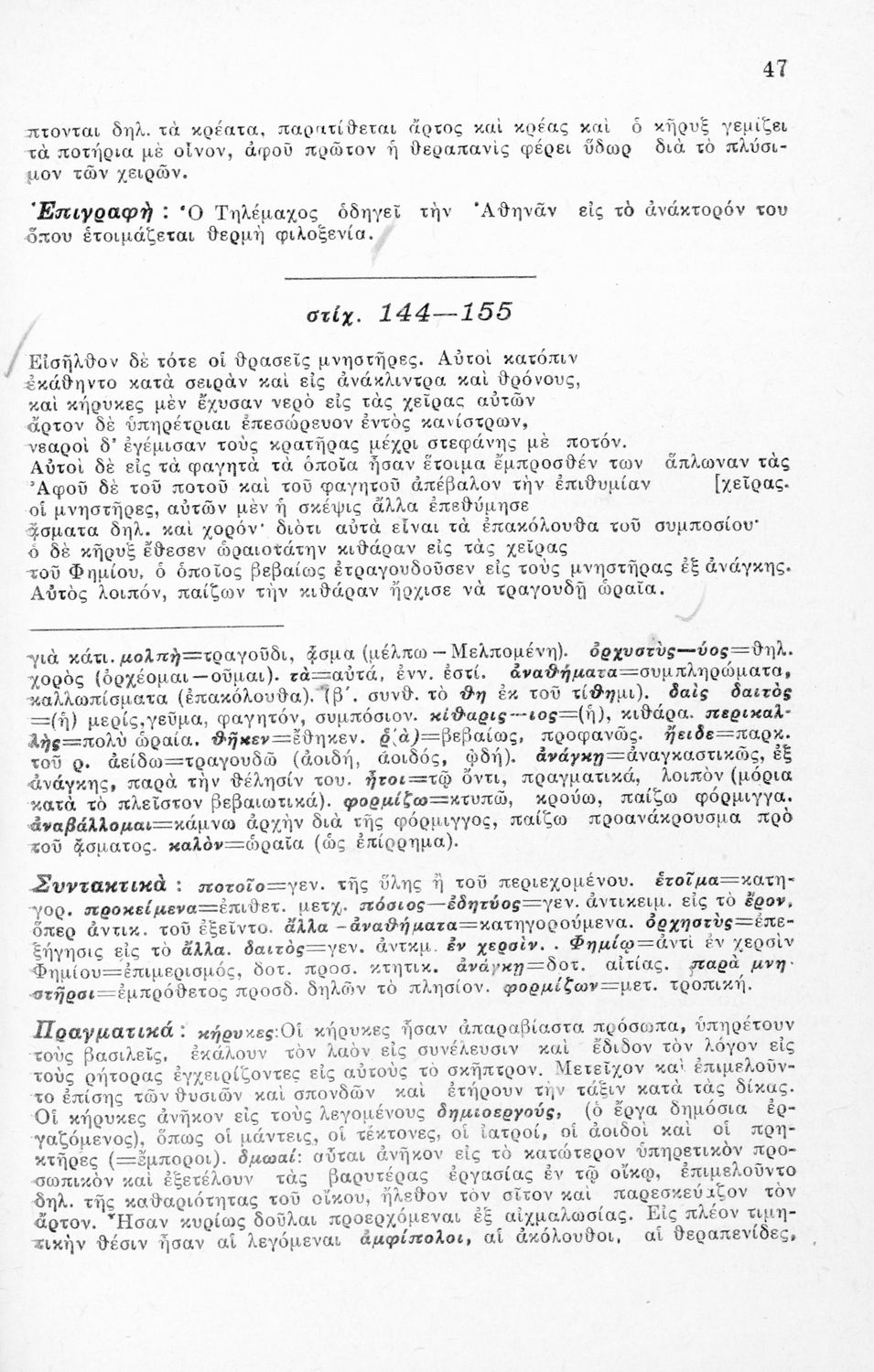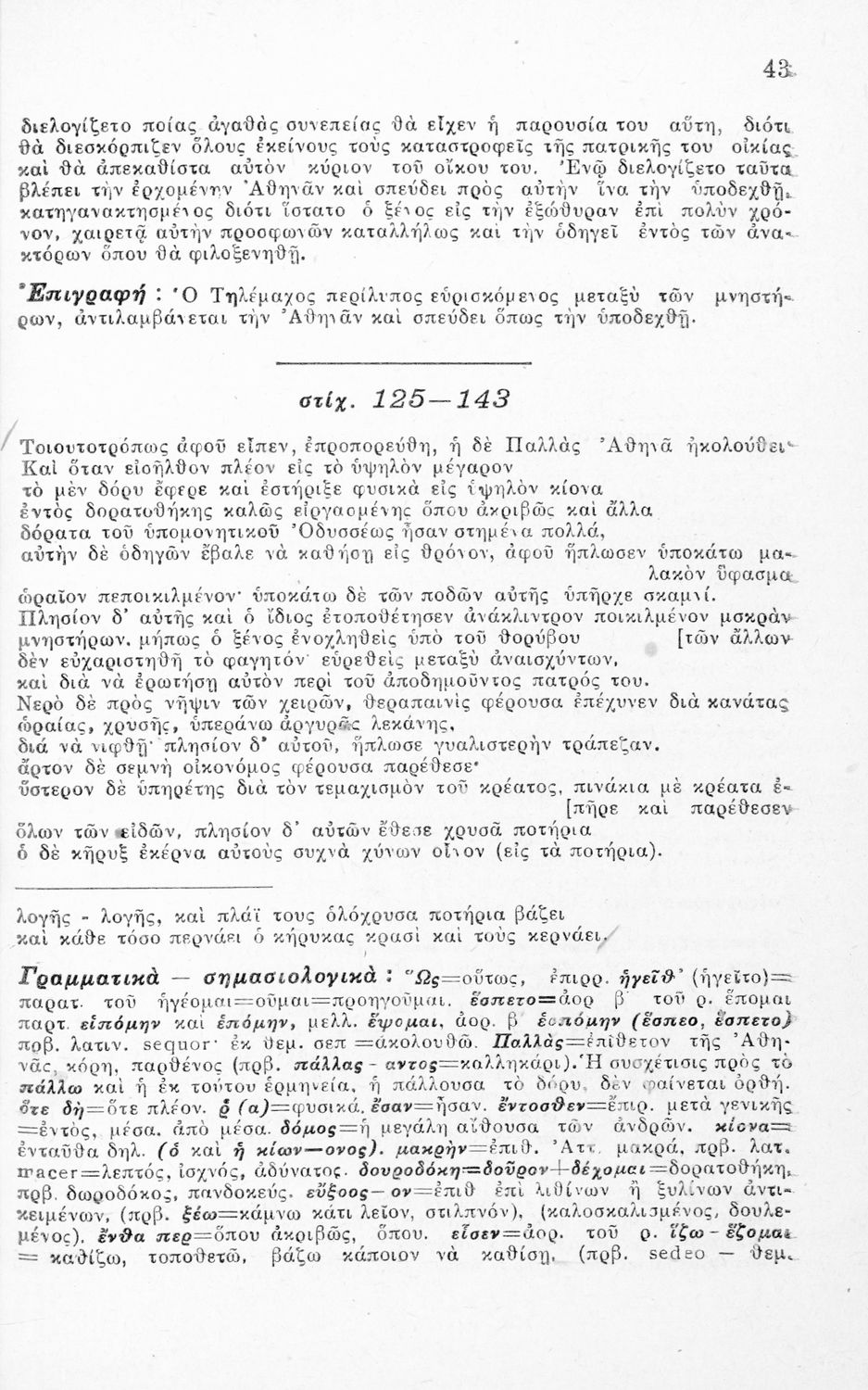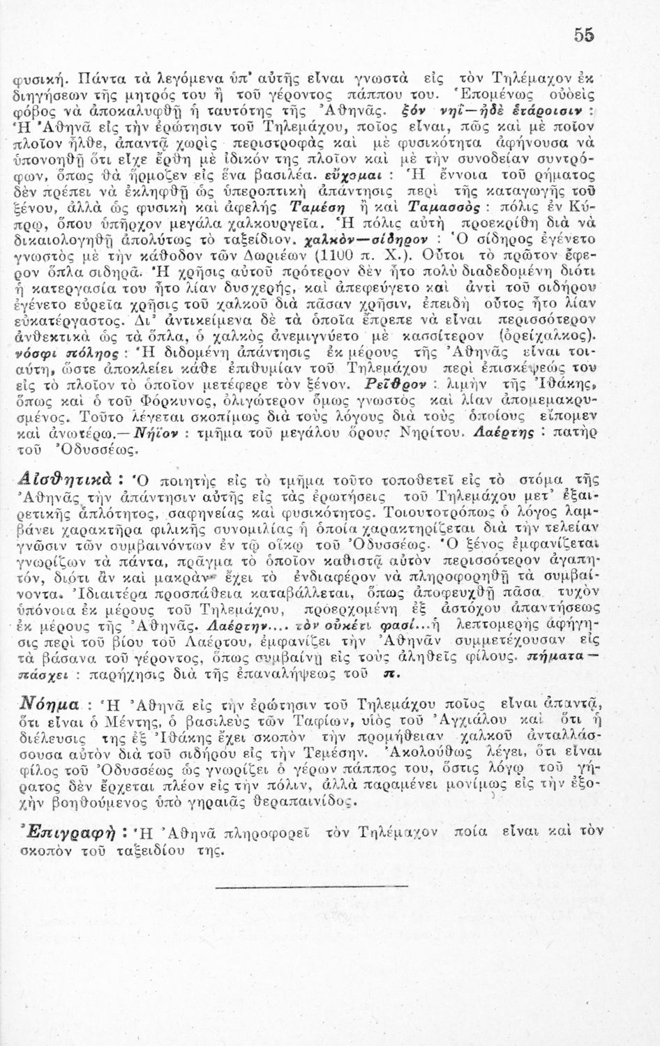 Μαθητικό βοήθημα Αρχαίων Ελληνικών για τη Δευτεροβάθμια Εκπαίδευση. Περιλαμβάνει λογοτεχνική απόδοση, σημασιολογικά και γραμματικά σχόλια καθώς και εισαγωγή στην επική ποίηση.