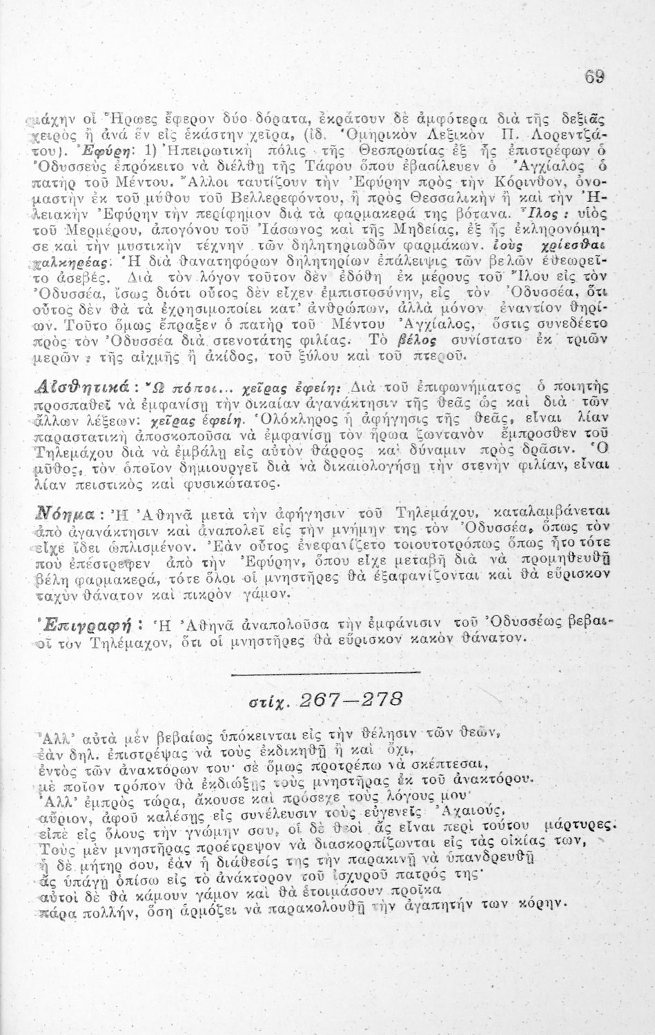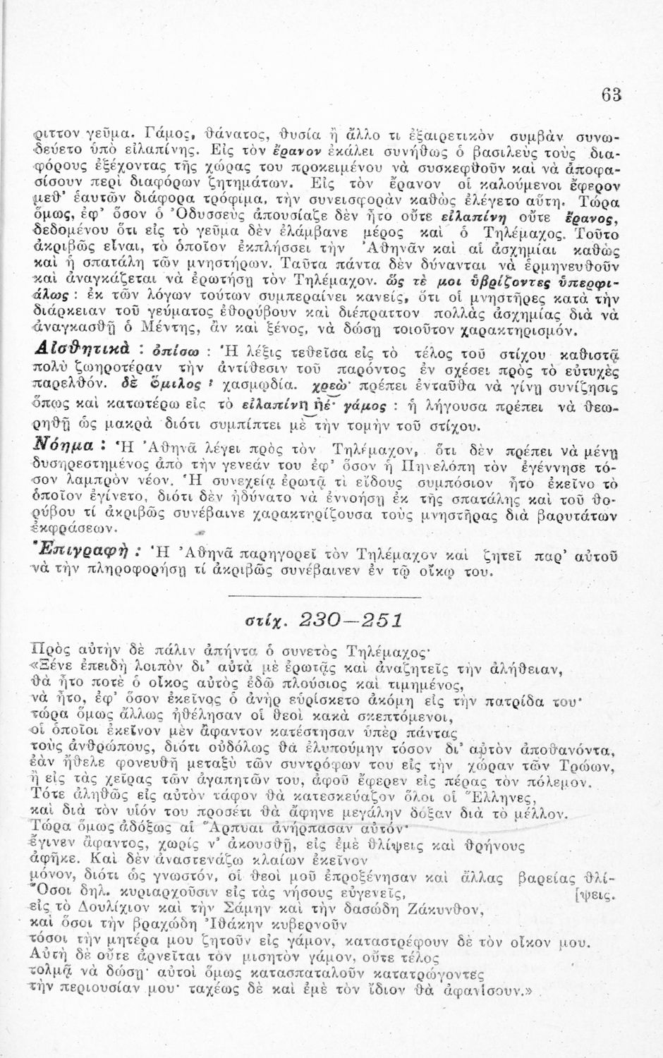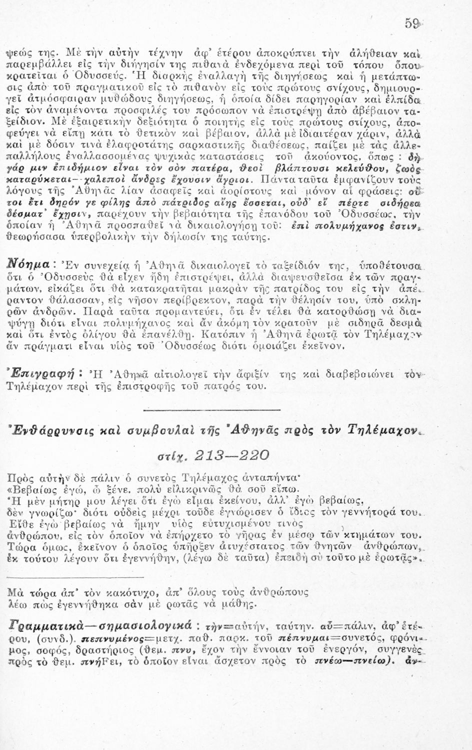 Ομήρου Οδύσσεια ραψωδία Α΄, δια τους μαθητάς της ΣΤ΄ τάξεως των Οκτατάξιων Γυμνασίων