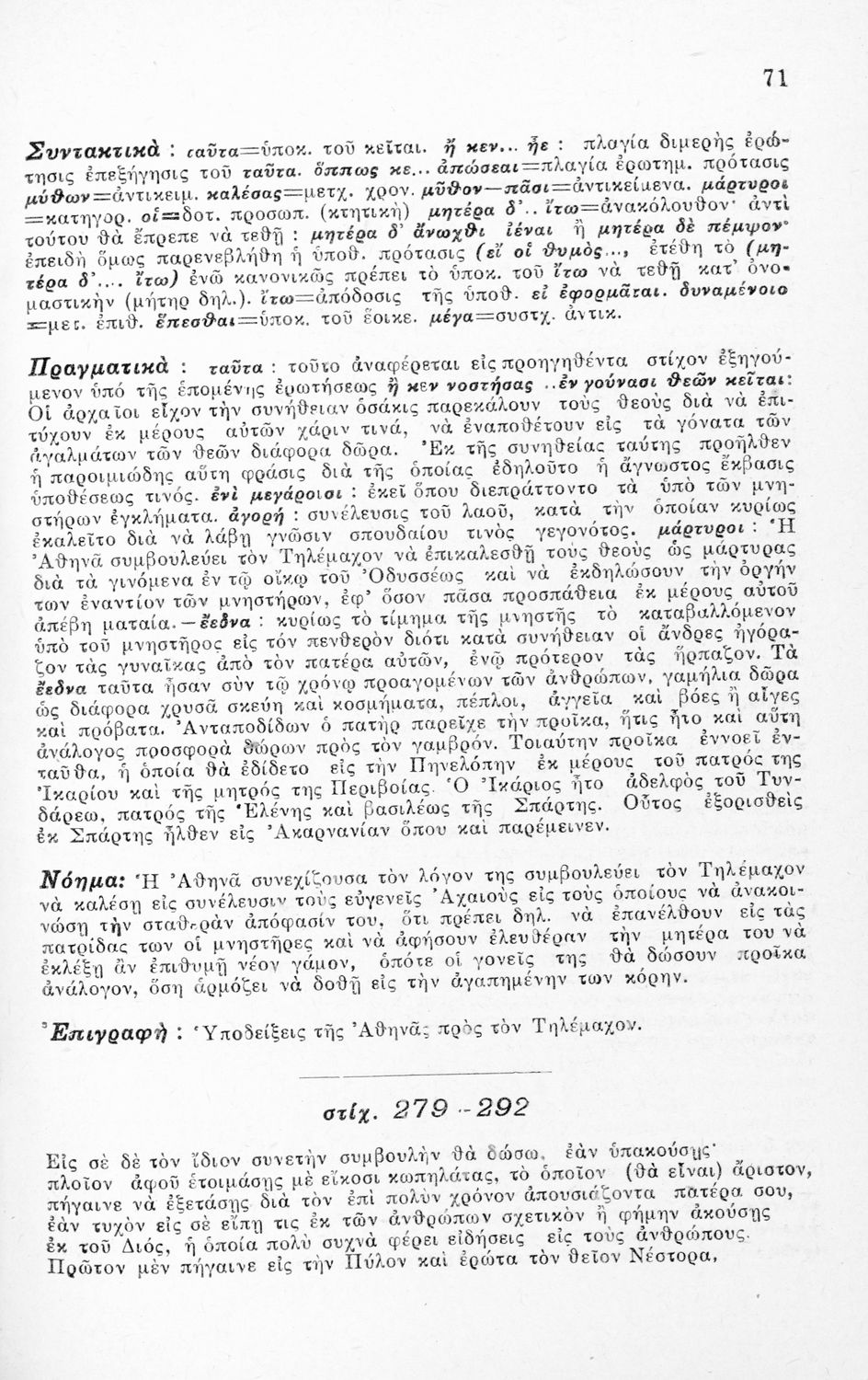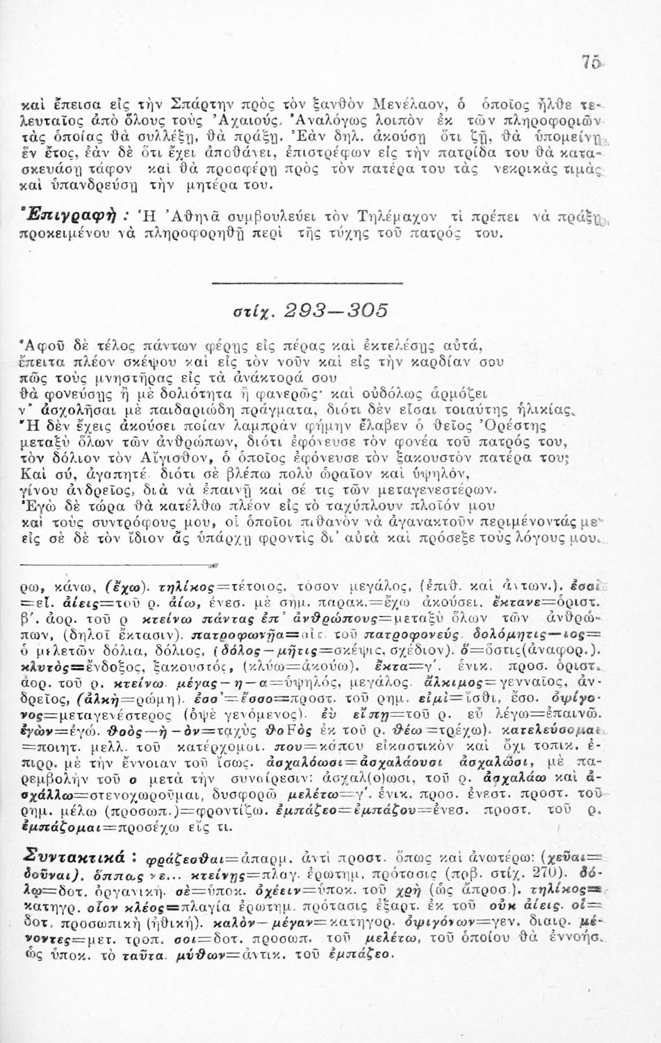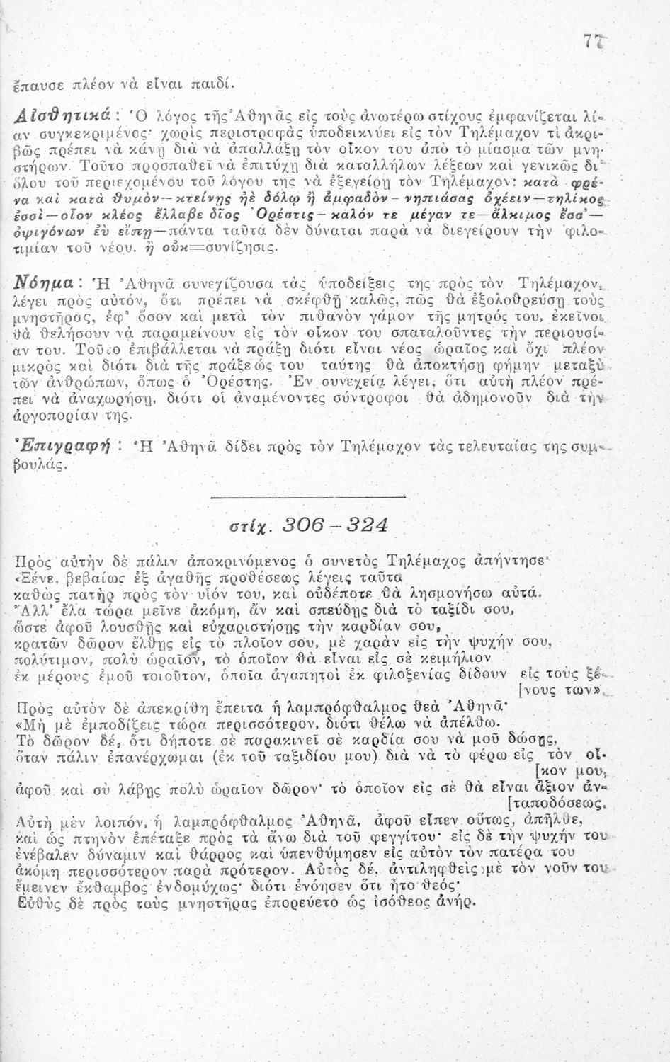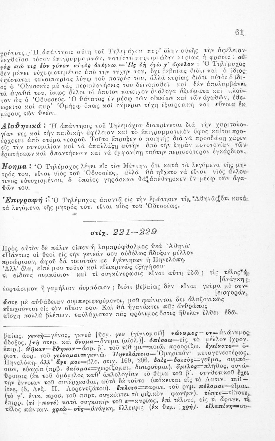 Ομήρου Οδύσσεια ραψωδία Α΄, δια τους μαθητάς της ΣΤ΄ τάξεως των Οκτατάξιων Γυμνασίων