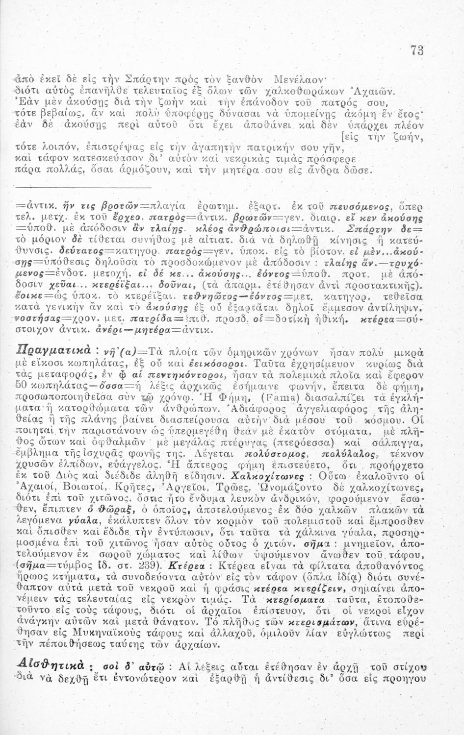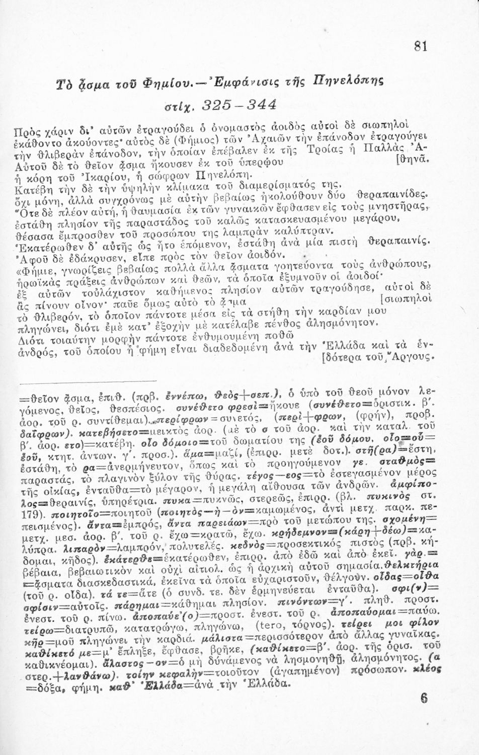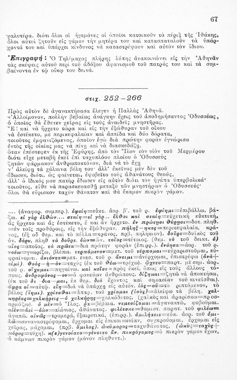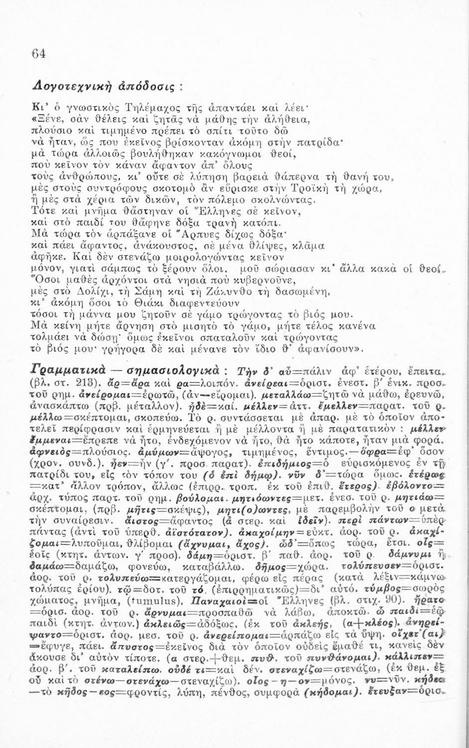 Μαθητικό βοήθημα Αρχαίων Ελληνικών για τη Δευτεροβάθμια Εκπαίδευση. Περιλαμβάνει λογοτεχνική απόδοση, σημασιολογικά και γραμματικά σχόλια καθώς και εισαγωγή στην επική ποίηση.