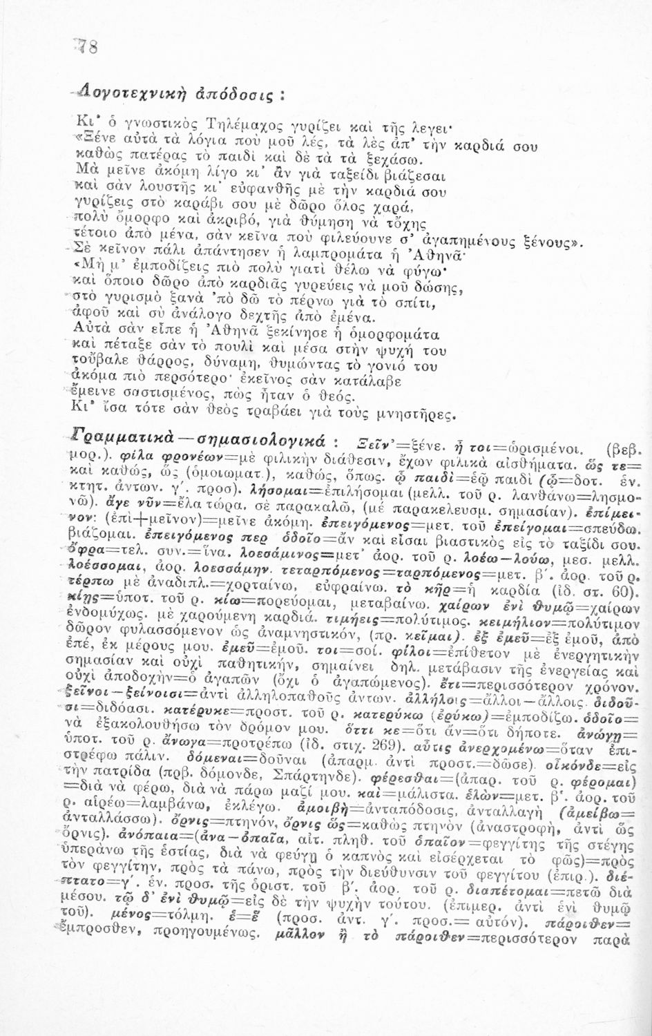Μαθητικό βοήθημα Αρχαίων Ελληνικών για την ΣΤ΄ Γυμνασίου. Περιλαμβάνει μετάφραση, ερμηνευτικά, γραμματικά και συντακτικά σχόλια καθώς και το νόημα του σχολικού βιβλίου.
