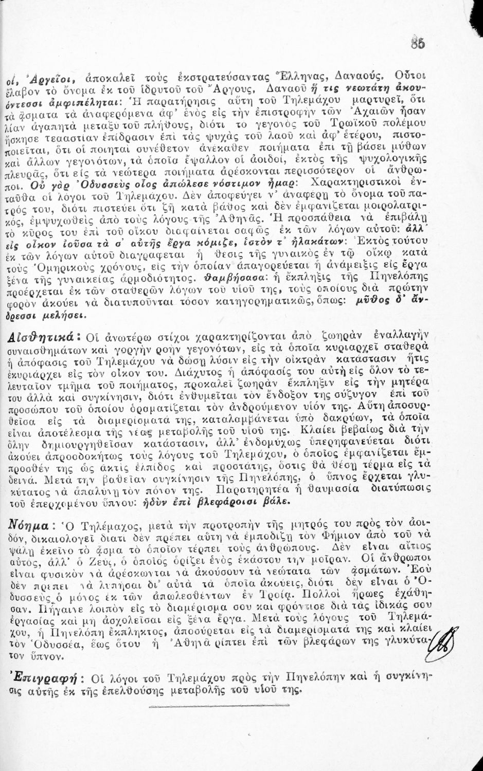 Μαθητικό βοήθημα Αρχαίων Ελληνικών για τη Δευτεροβάθμια Εκπαίδευση. Περιλαμβάνει λογοτεχνική απόδοση, σημασιολογικά και γραμματικά σχόλια καθώς και εισαγωγή στην επική ποίηση.