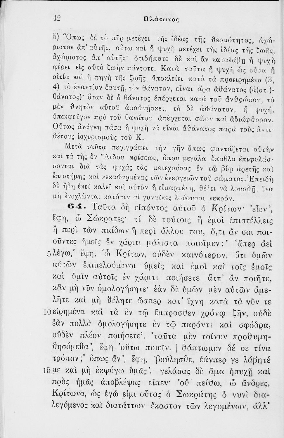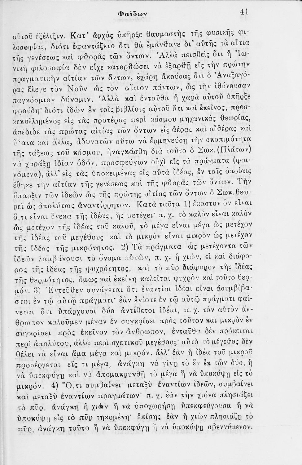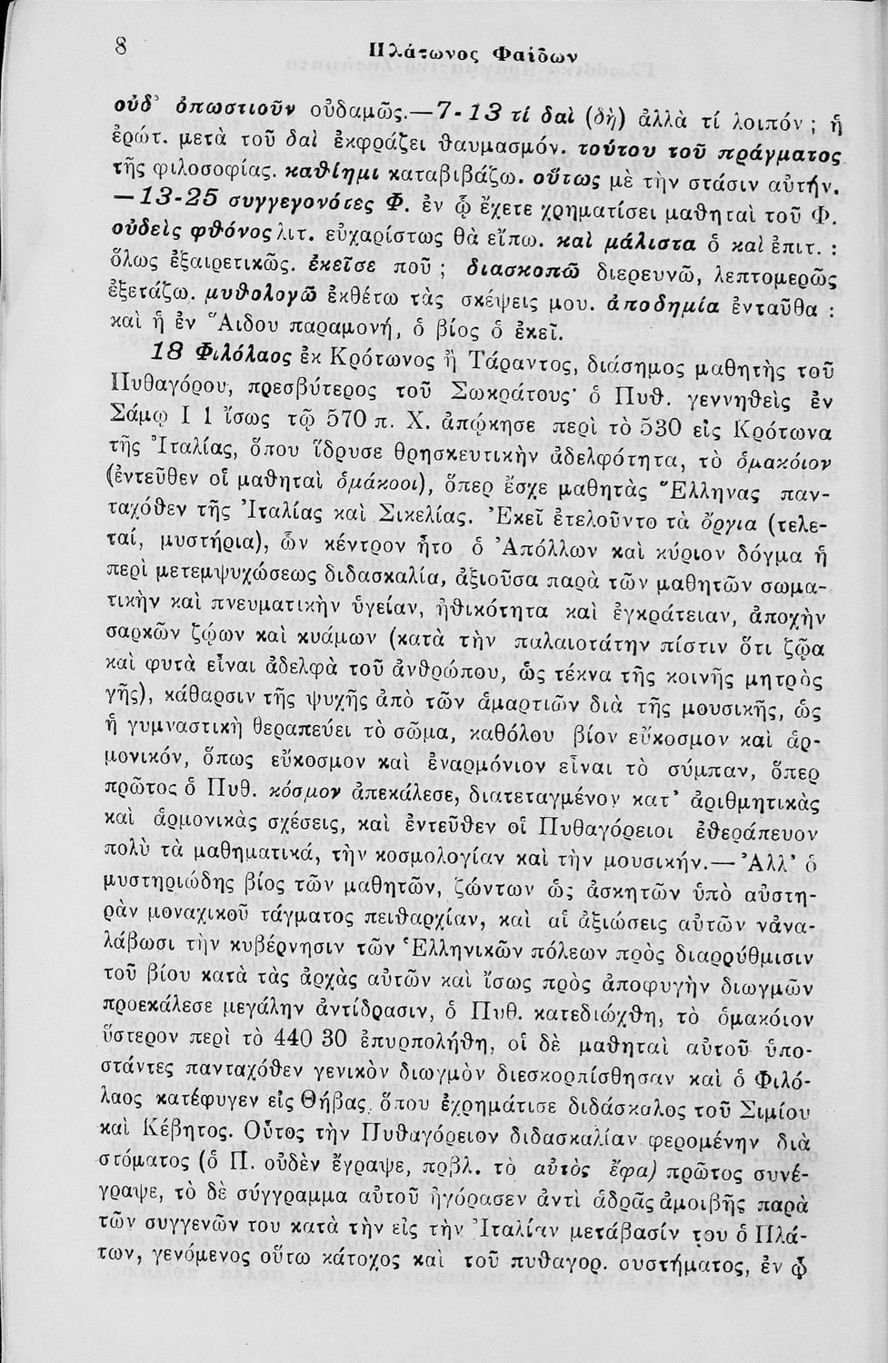 Σχολικό εγχειρίδιο Αρχαίων Ελληνικών. Το βιβλίο περιλαμβάνει εισαγωγή σχετικά με τη ζωή και το έργο του Πλάτωνα και αναφέρεται σε φιλοσόφους της εποχής. Παραθέτεται το κείμενο "Φαίδων : Η περί ψυχής ηθικός" το