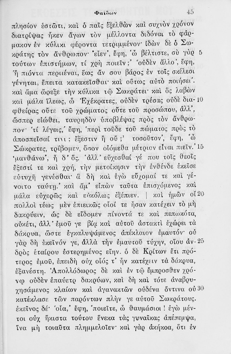Μαθητικό βοήθημα εγκεκριμένο για το μάθημα των Αρχαίων Ελληνικών. Περιλαμβάνει το έργο του Πλάτωνα Φαίδων με ερμηνευτικές παρατηρήσεις.