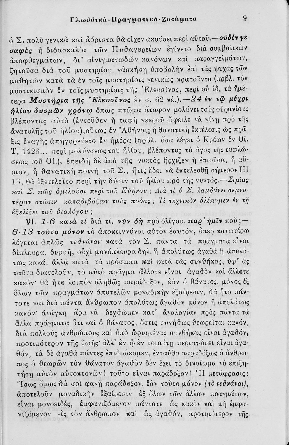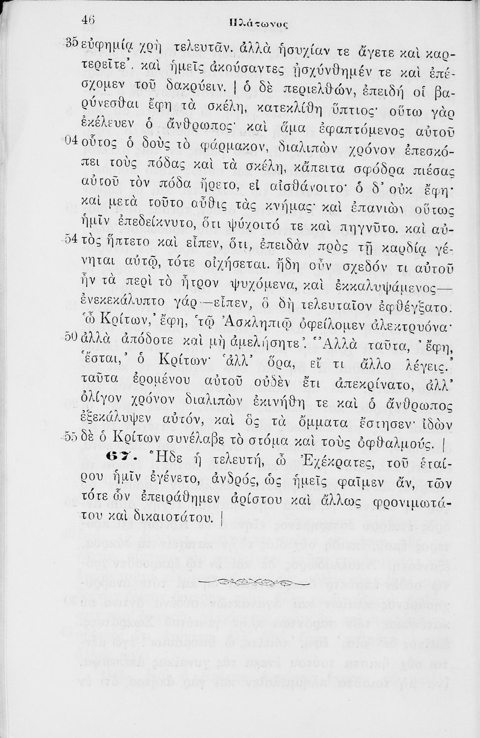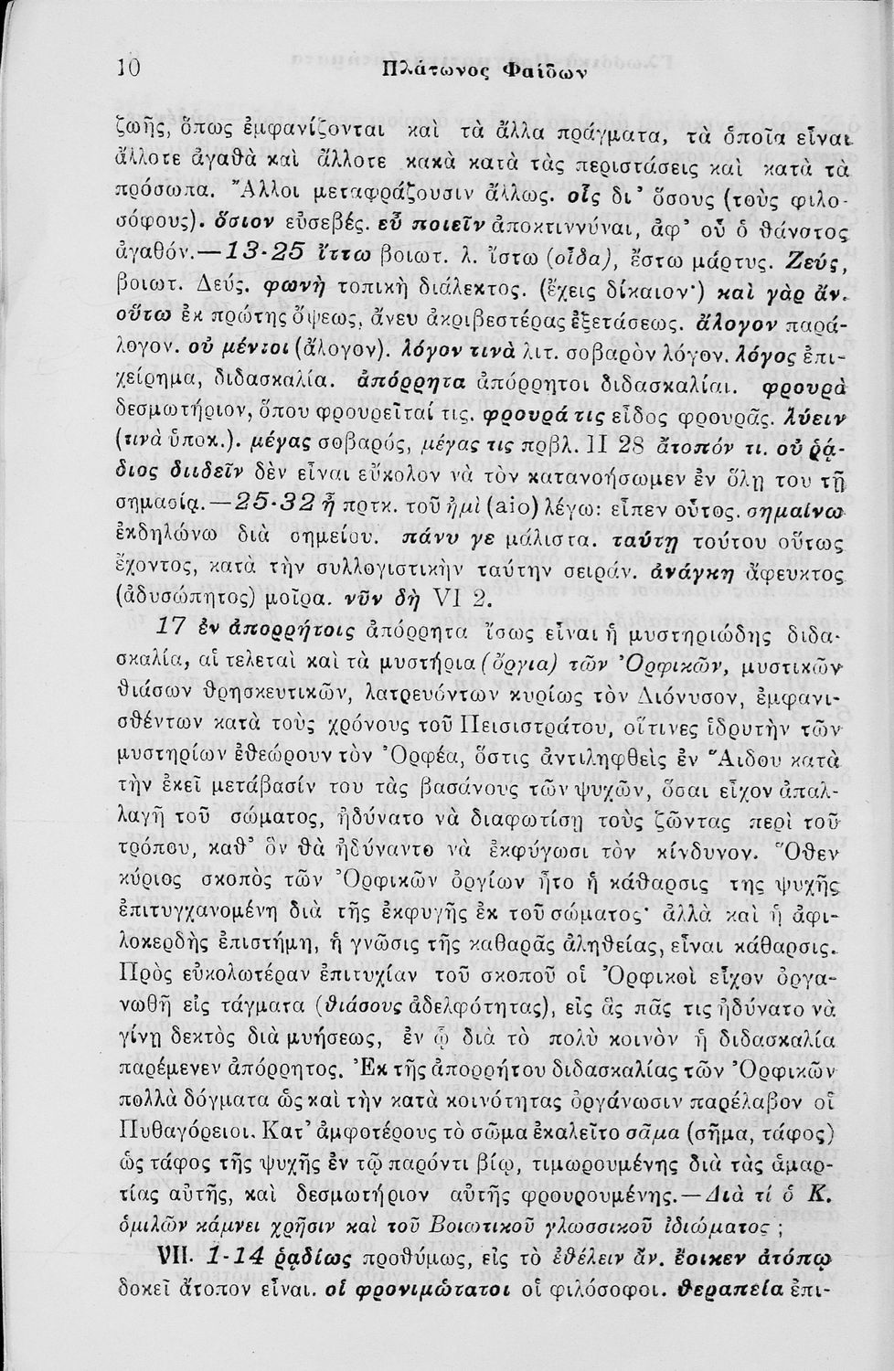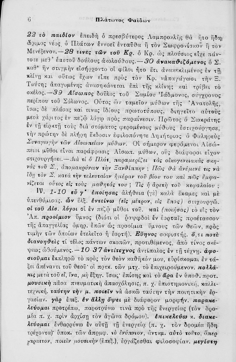 Σχολικό εγχειρίδιο Αρχαίων Ελληνικών ΣΤ΄ Γυμνασίου που περιέχει αποσπάσματα από το έργο του Πλάτωνα Φαίδων, λεξιλογικές παρατηρήσεις, και ερμηνευτικά, πραγματολογικά σχόλια και γραμματικές παρατηρήσεις.