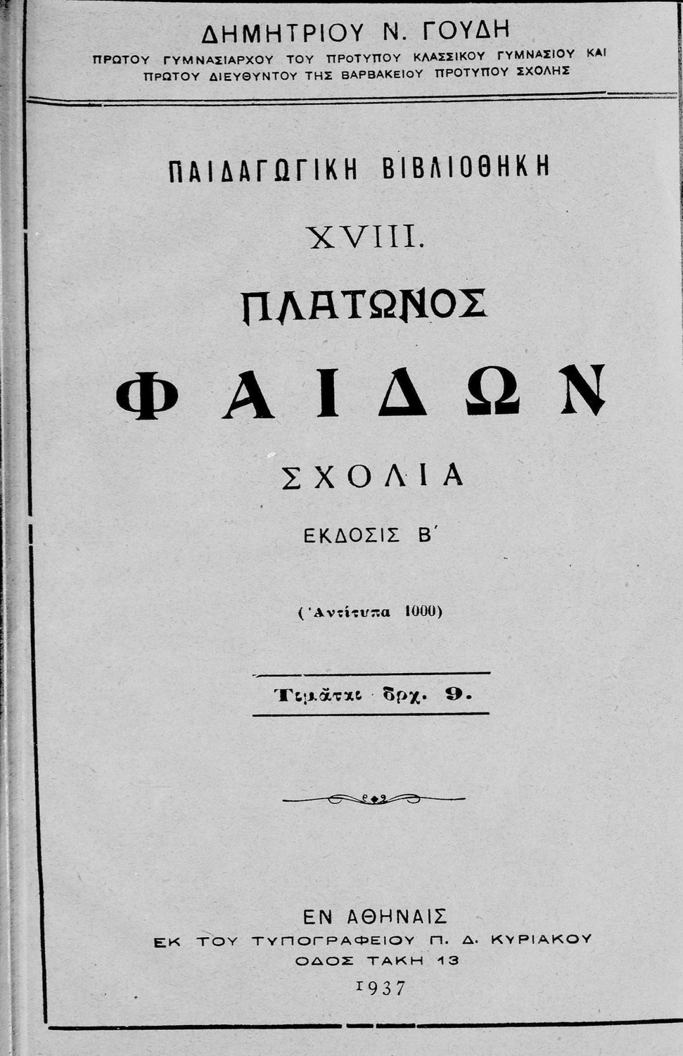 Συγγραφέας: Πλάτων, Δημήτριος Ν. Γουδής