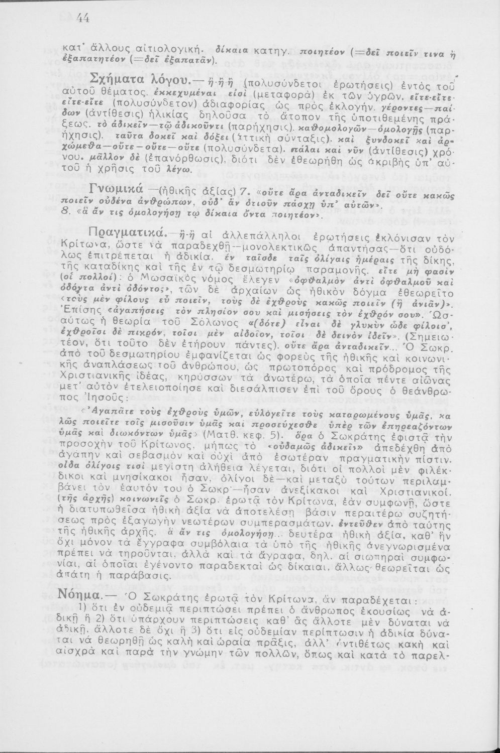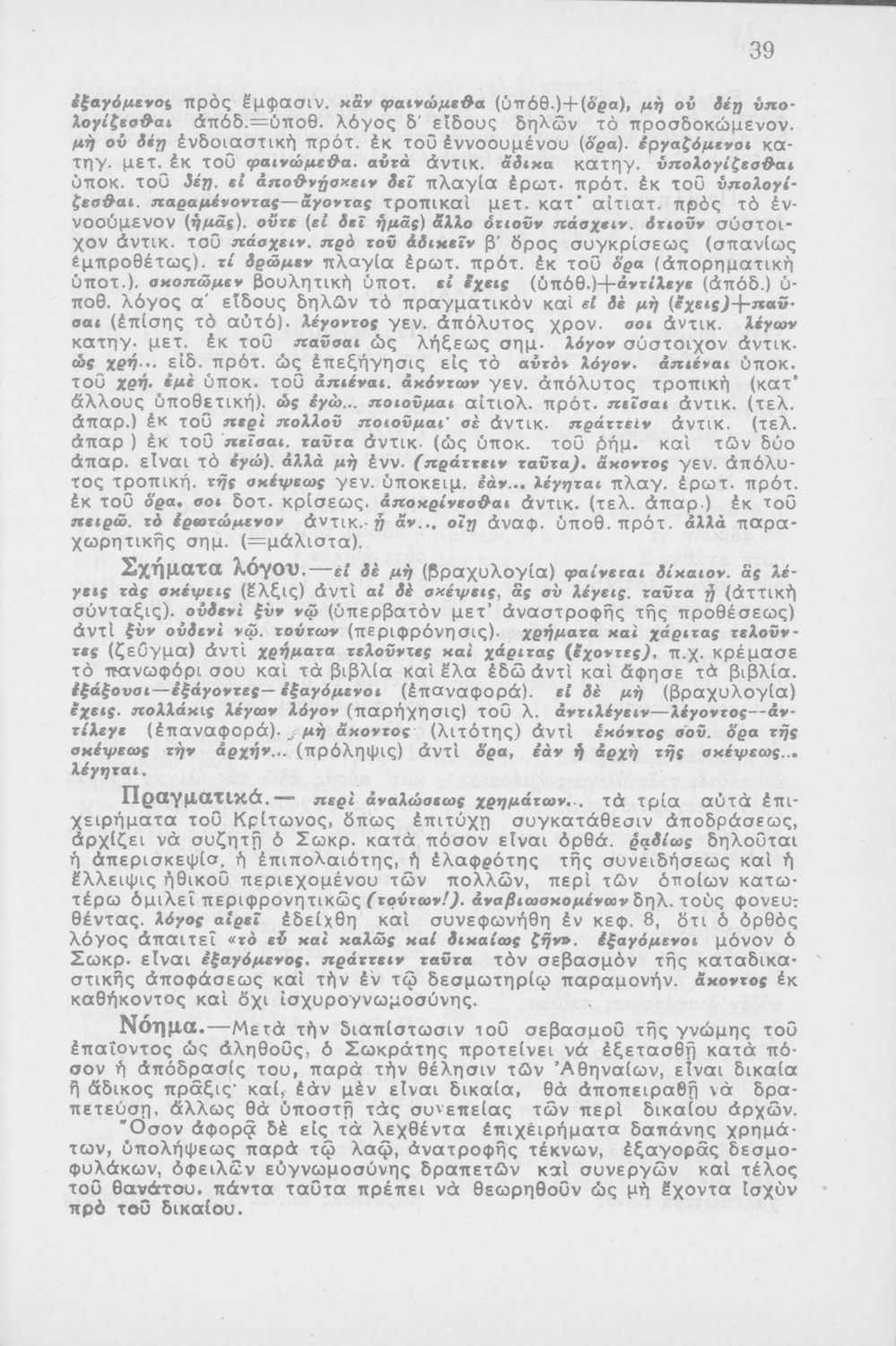 Σχολικό εγχειρίδιο Αρχαίων Ελληνικών από το κείμενο του Πλάτωνα. Περιέχονται ερμηνευτικά σχόλια του συγγραφέα στη καθαρεύουσα. Απεικονίζεται το σύμβολο της Επταετίας.