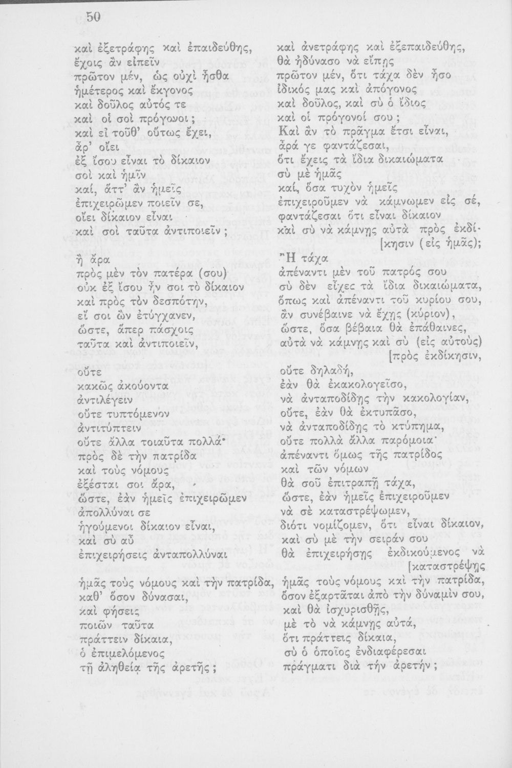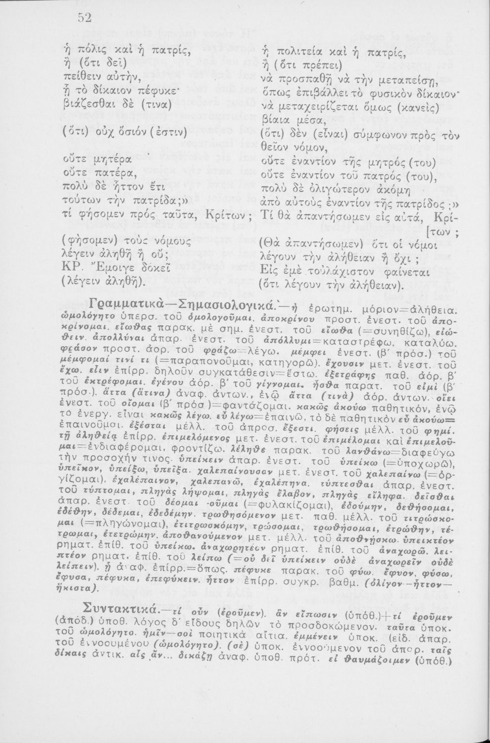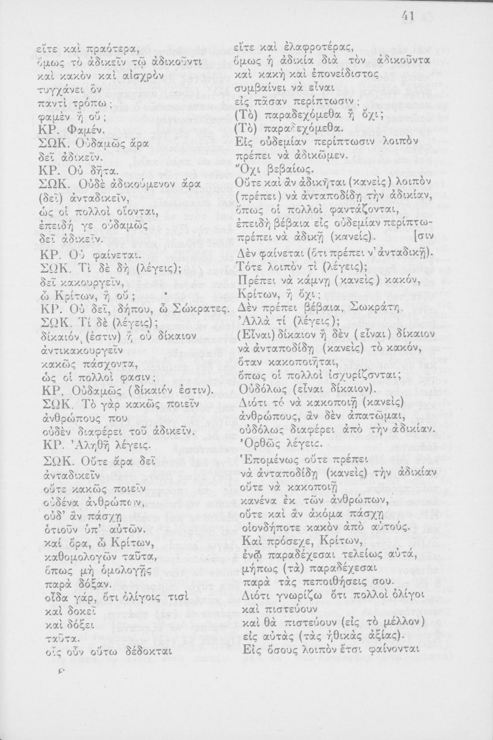Σχολικό εγχειρίδιο Αρχαίων Ελληνικών για την Ε΄ Γυμνασίου. Περιέχει το πρωτότυπο κείμενο και περιλαμβάνει το διάλογο του Σωκράτη και του Κρίτωνα. Έχει εισαγωγές και ερμηνευτικά σχόλια. Φέρει το σύμβολο της ...
