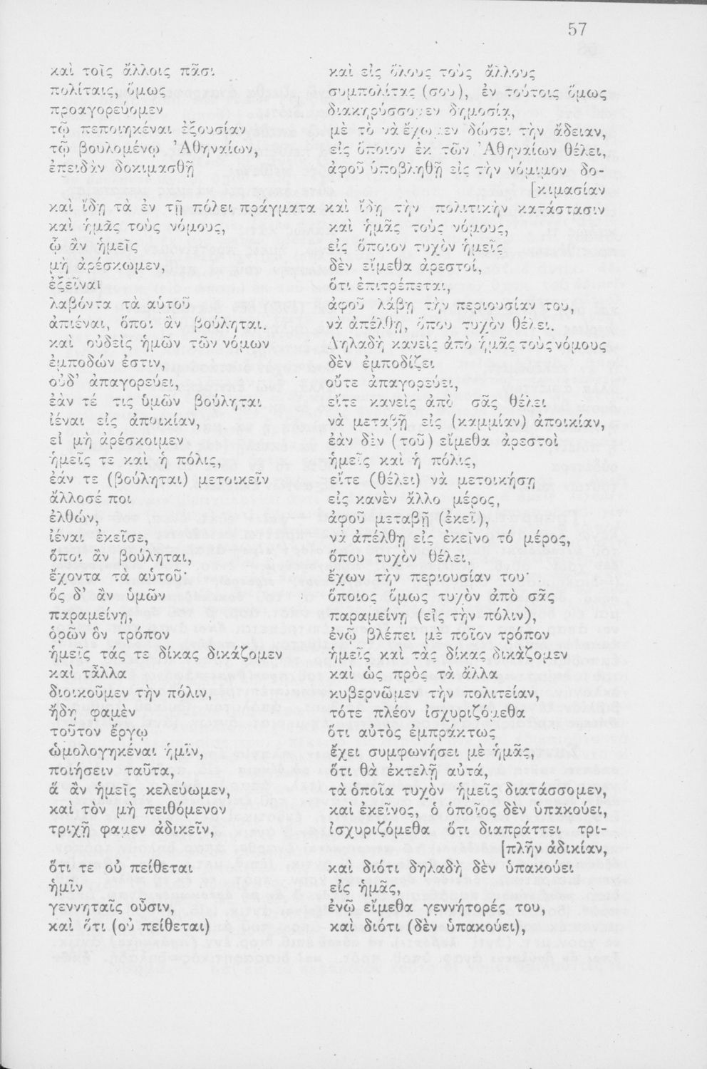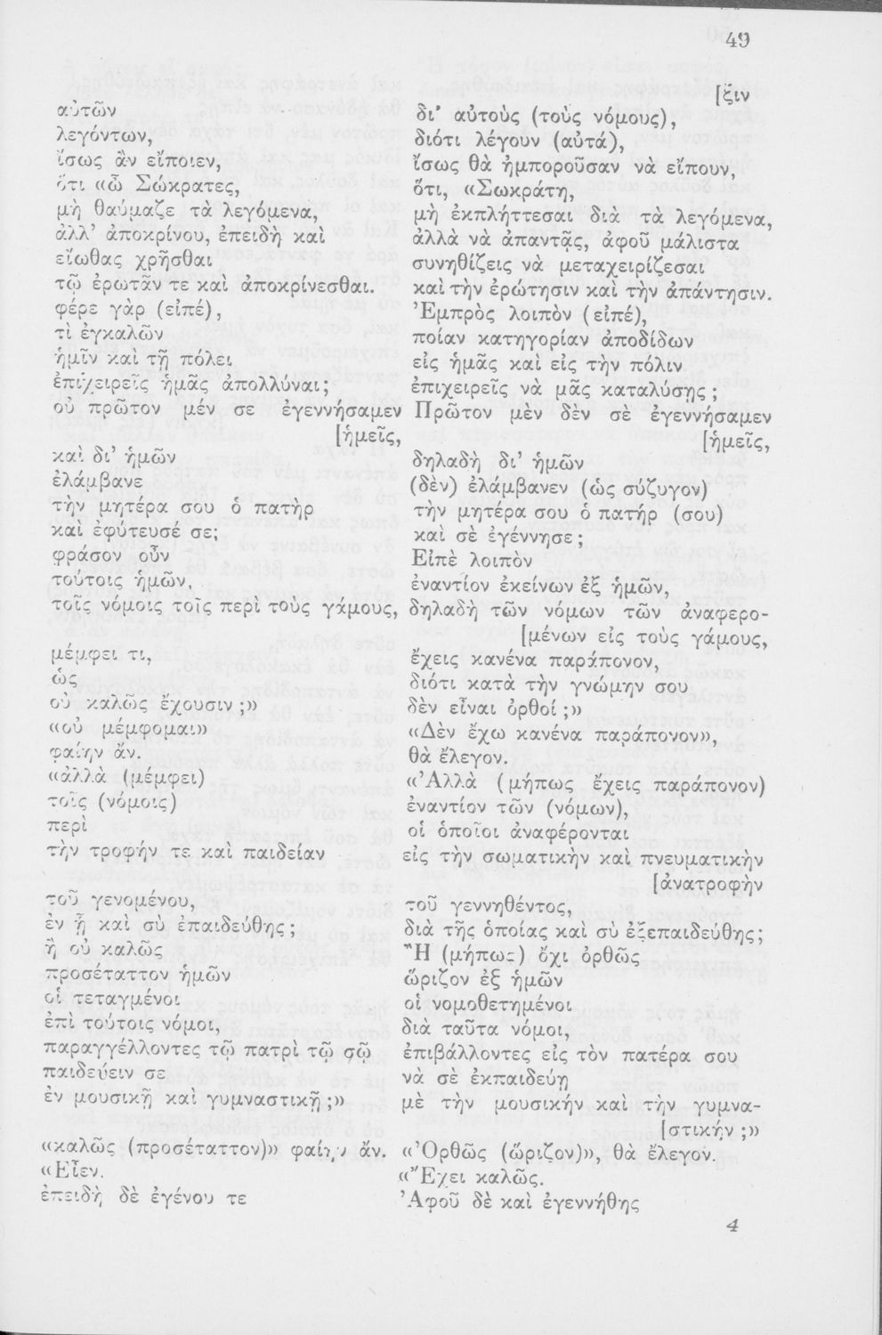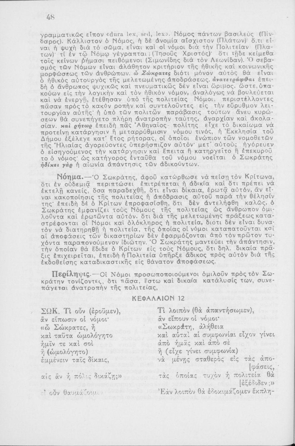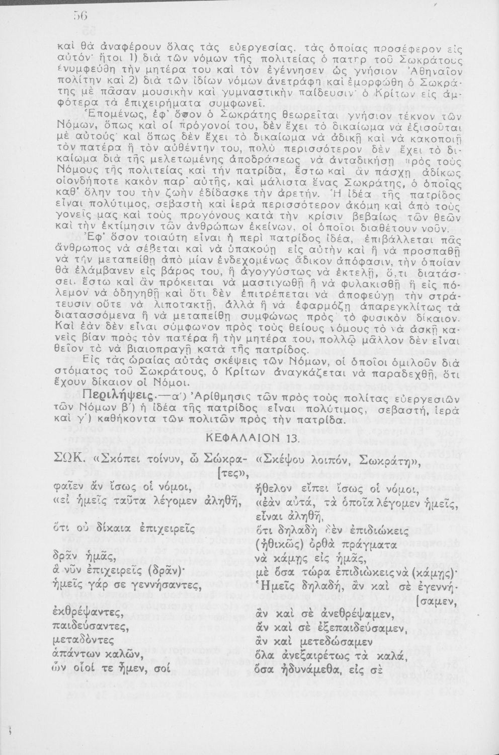 Σχολικό εγχειρίδιο Αρχαίων Ελληνικών για την Ε΄ Γυμνασίου. Περιέχει το πρωτότυπο κείμενο και περιλαμβάνει το διάλογο του Σωκράτη και του Κρίτωνα. Έχει εισαγωγές και ερμηνευτικά σχόλια. Φέρει το σύμβολο της ...