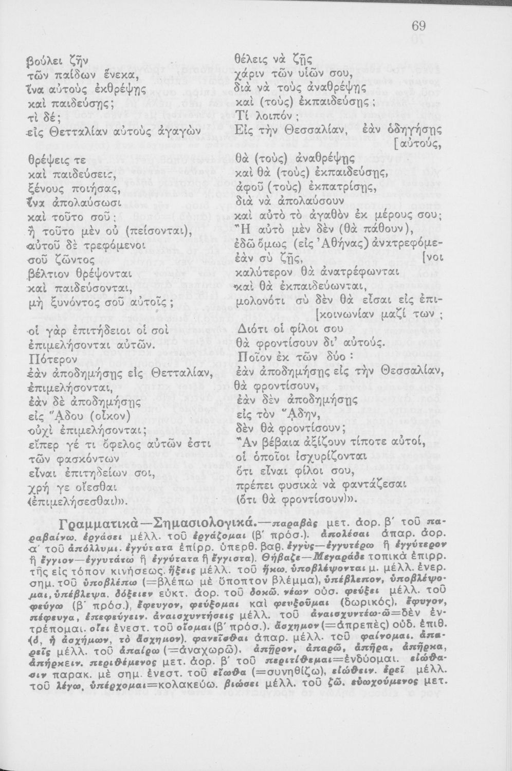 Μαθητικό βοήθημα Αρχαίων Ελληνικών για τους μαθητές της Ε' τάξης των οκταταξίων Γυμνασίων. Περιέχει το κείμενο, την μετάφραση, γραμματικά και συντακτικά σχόλια.