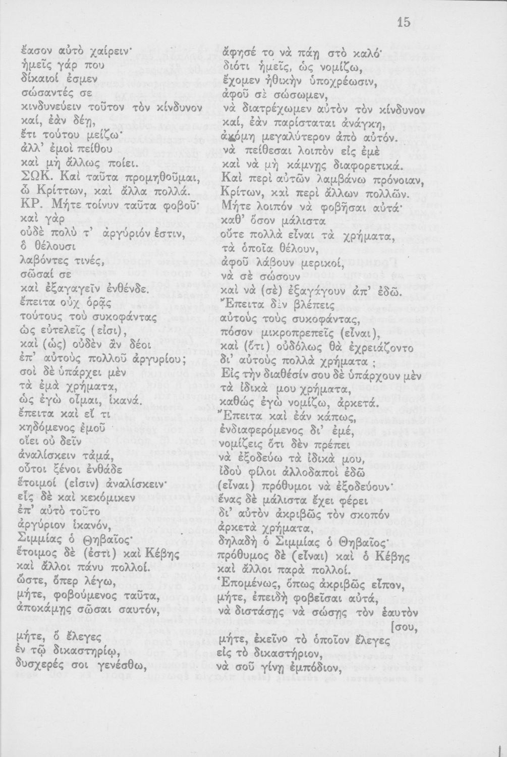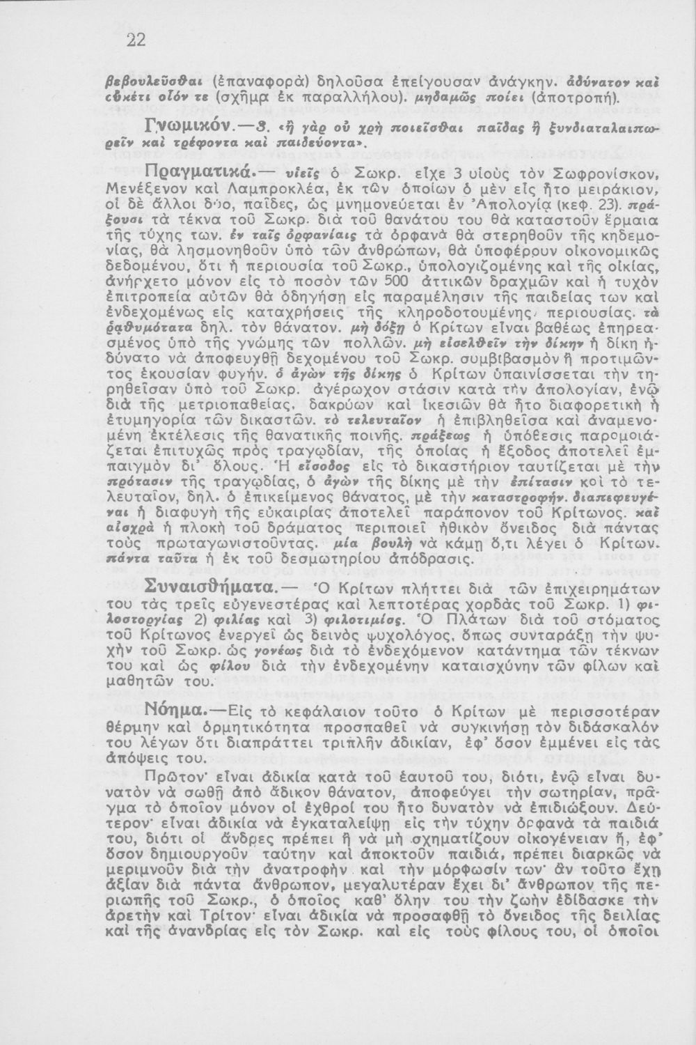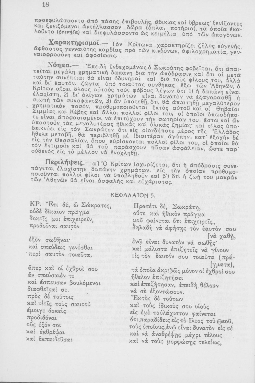 Μαθητικό βοήθημα Αρχαίων Ελληνικών για τους μαθητές της Ε' τάξης των οκταταξίων Γυμνασίων. Περιέχει το κείμενο, την μετάφραση, γραμματικά και συντακτικά σχόλια.