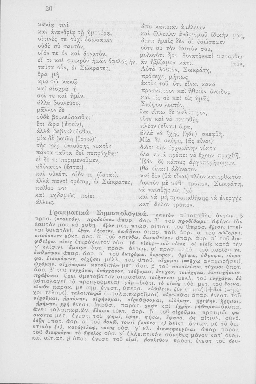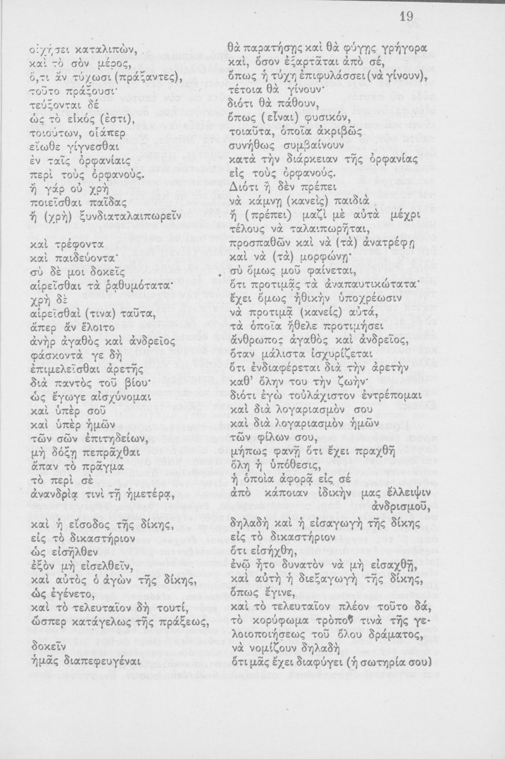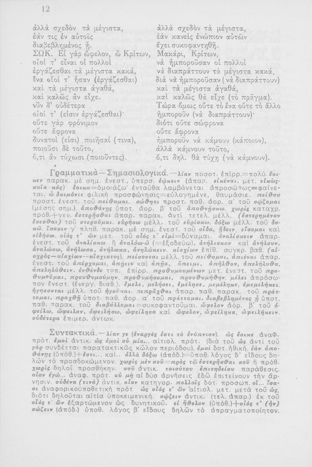 Μαθητικό βοήθημα Αρχαίων Ελληνικών για τους μαθητές της Ε' τάξης των οκταταξίων Γυμνασίων. Περιέχει το κείμενο, την μετάφραση, γραμματικά και συντακτικά σχόλια.