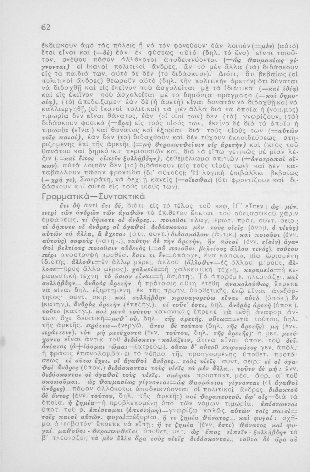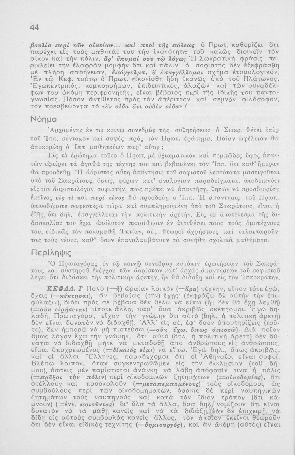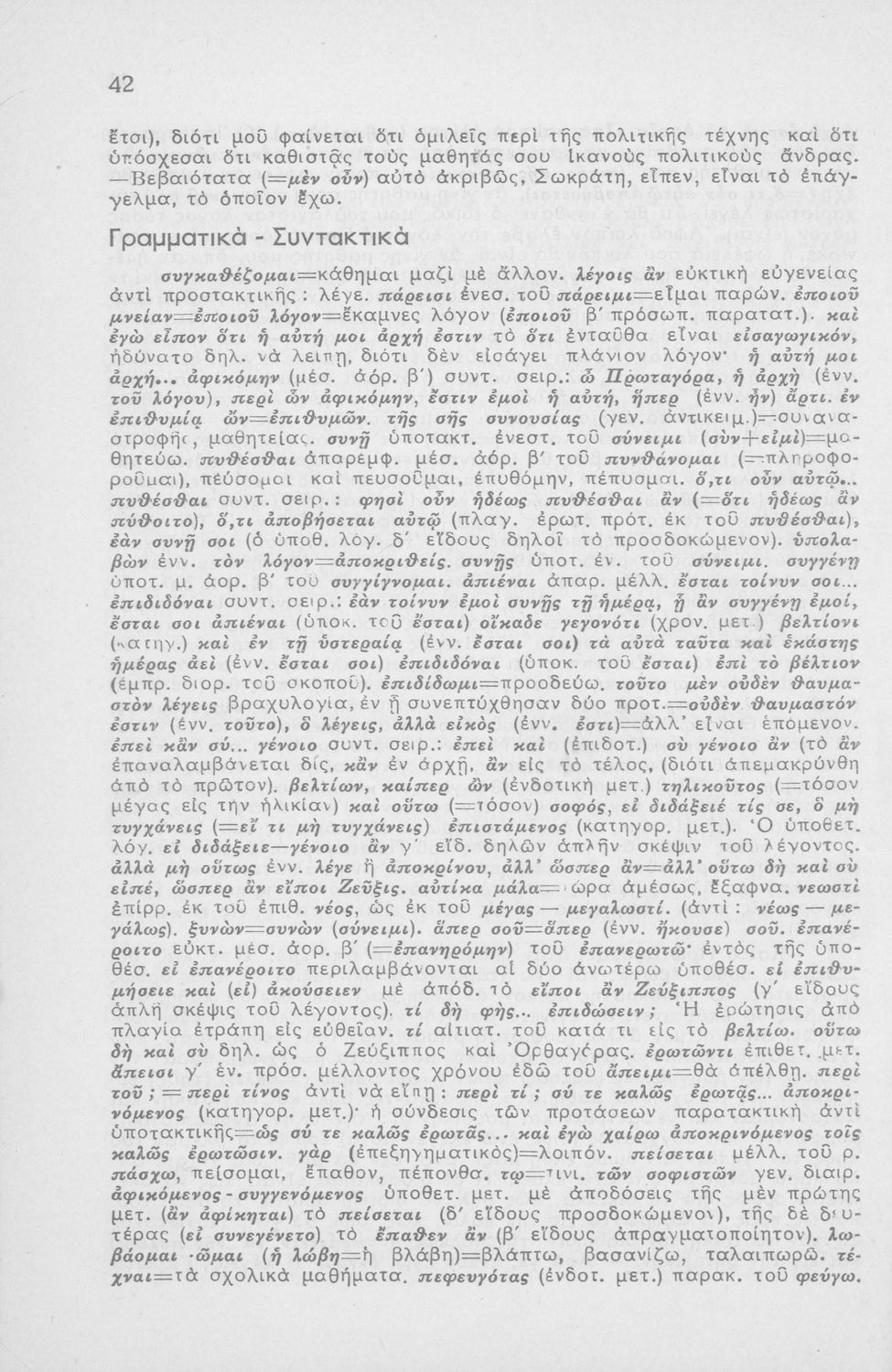Μαθητικό βοήθημα Αρχαίων Ελληνικών για τους μαθητές της Η΄ τάξης των οκταταξίων Γυμνασίων. Περιέχει το κείμενο, μετάφραση, γραμματικά και συντακτικά σχόλια.