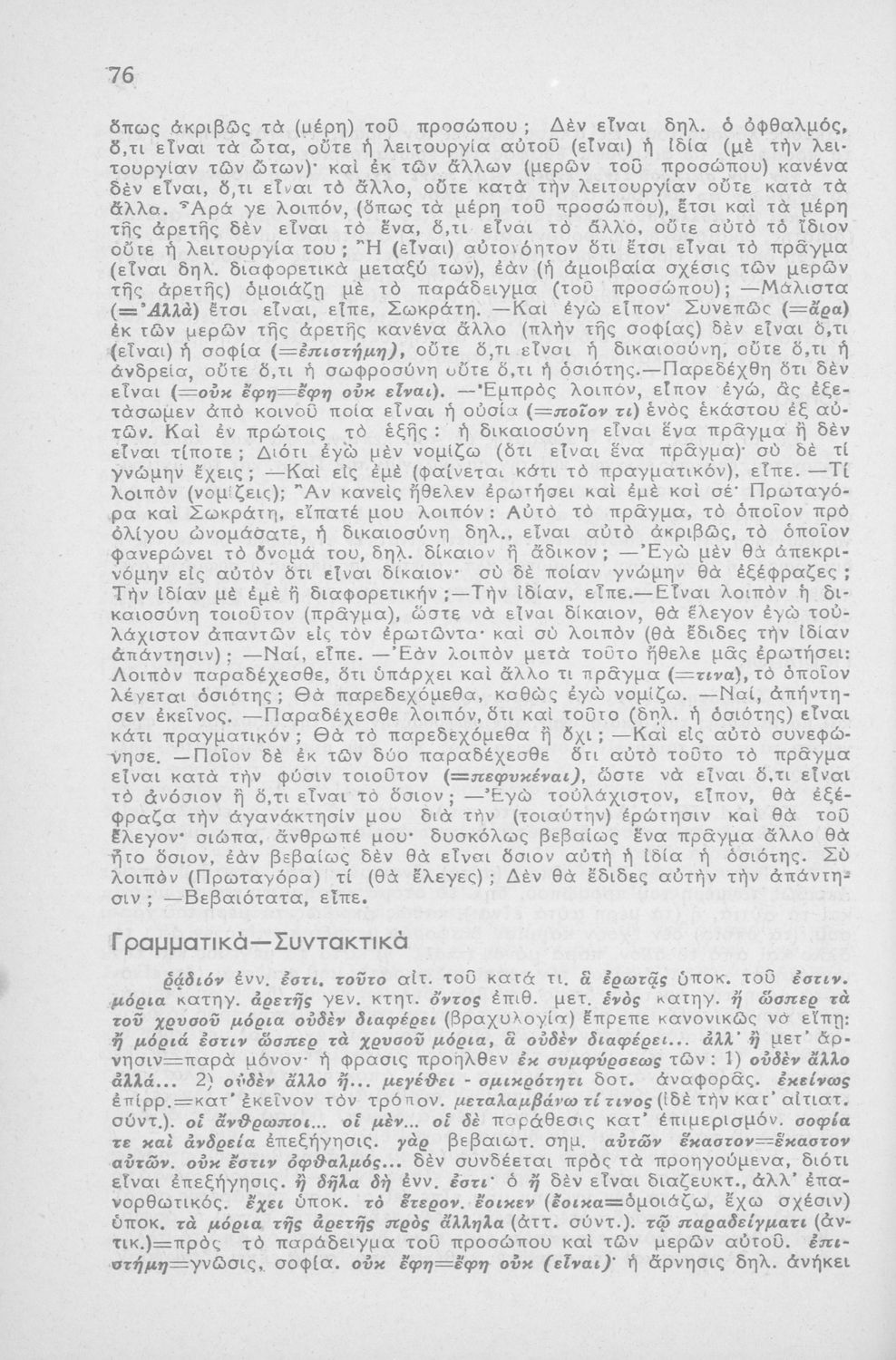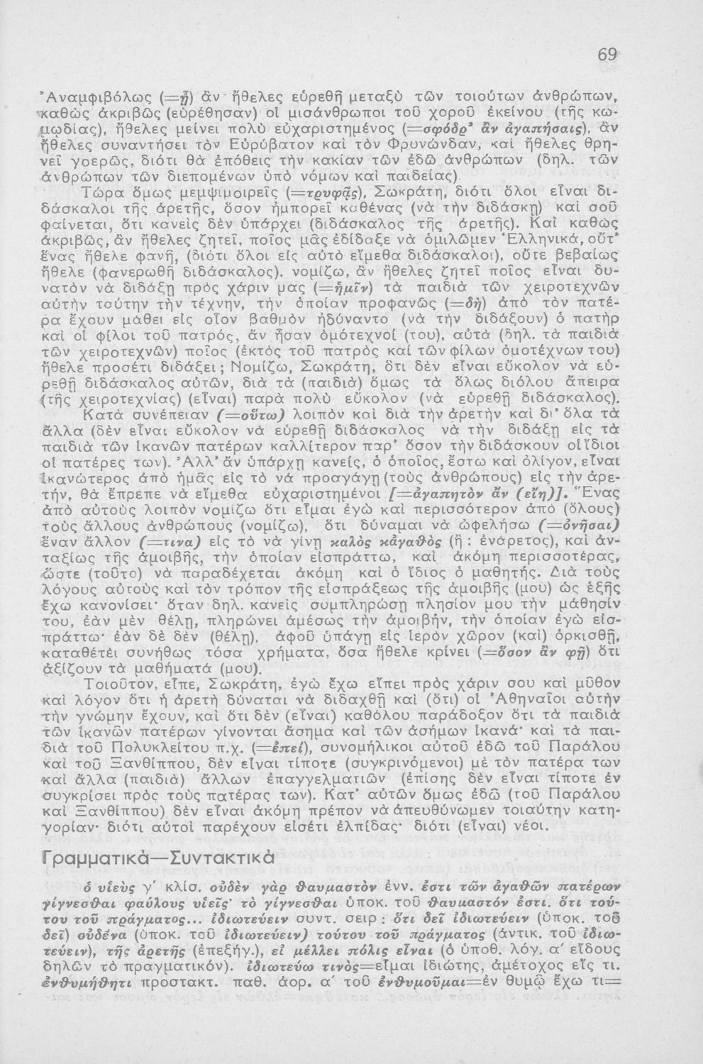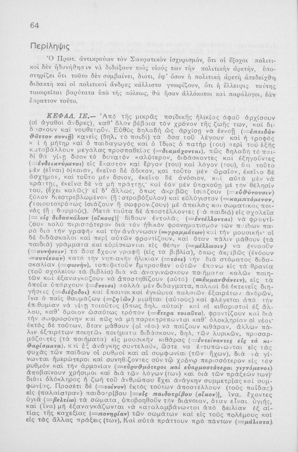 Μαθητικό βοήθημα Αρχαίων Ελληνικών για τους μαθητές της Η΄ τάξης των οκταταξίων Γυμνασίων. Περιέχει το κείμενο, μετάφραση, γραμματικά και συντακτικά σχόλια.