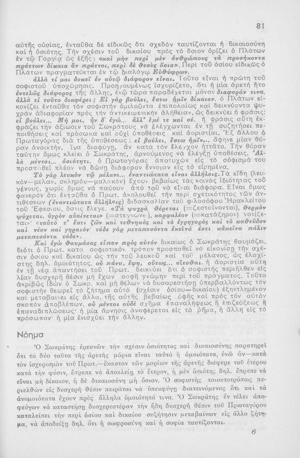Κωδικός αναγνώρισης: 01-45060 Τίτλος: Πλάτωνος Πρωταγόρας (Κεφ. Β+ΚΕ και ΛΓ+Μ), Σχολικόν Βοήθημα δια τους μαθητάς της Η΄ τάξεως των Οκταταξίων Γυμνασίων Συγγραφέας: Γεώργιος Ν. Παπανικολάου (μετάφραση, σχόλια) Μέγεθος και υπόστρωμα: Μαθητικό βοήθημα, 21εκ., μαλακό εξώφυλλο, 120 σελίδες. |