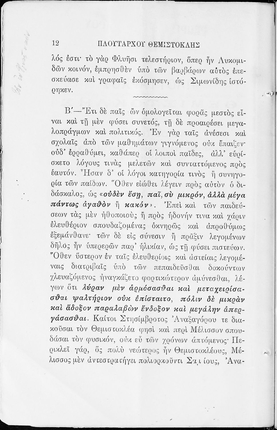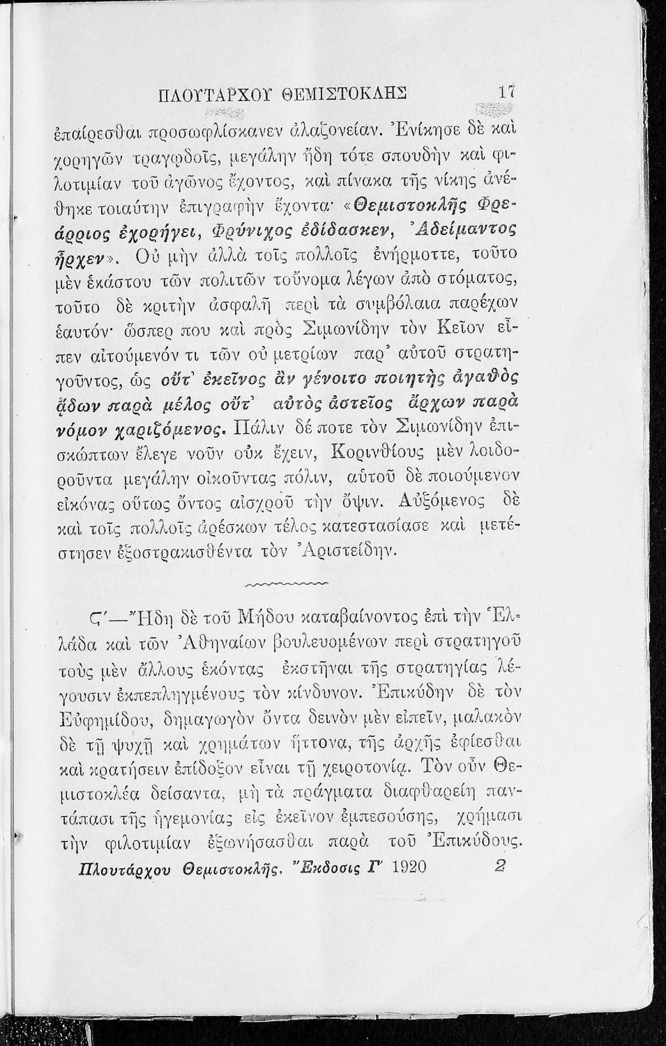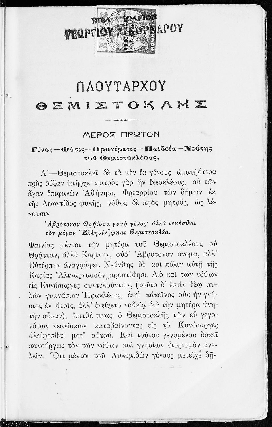 Μαθητικό βοήθημα του Γυμνασίου για το μάθημα των Αρχαίων. Περιέχει αποσπάσματα από το έργο του Πλούταρχου Θεμιστοκλής, ερμηνευτικές και πραγματολογικές παρατηρήσεις.