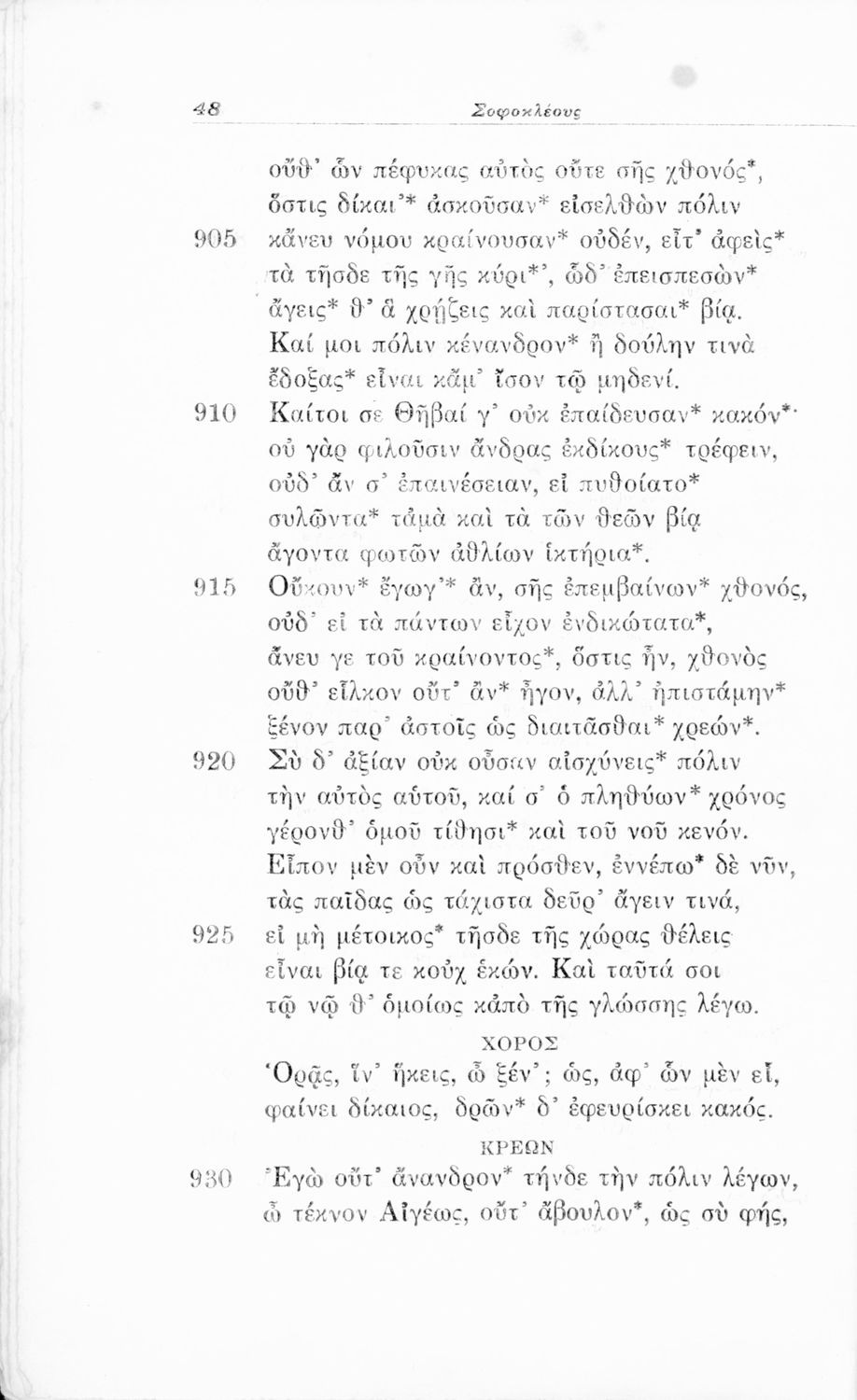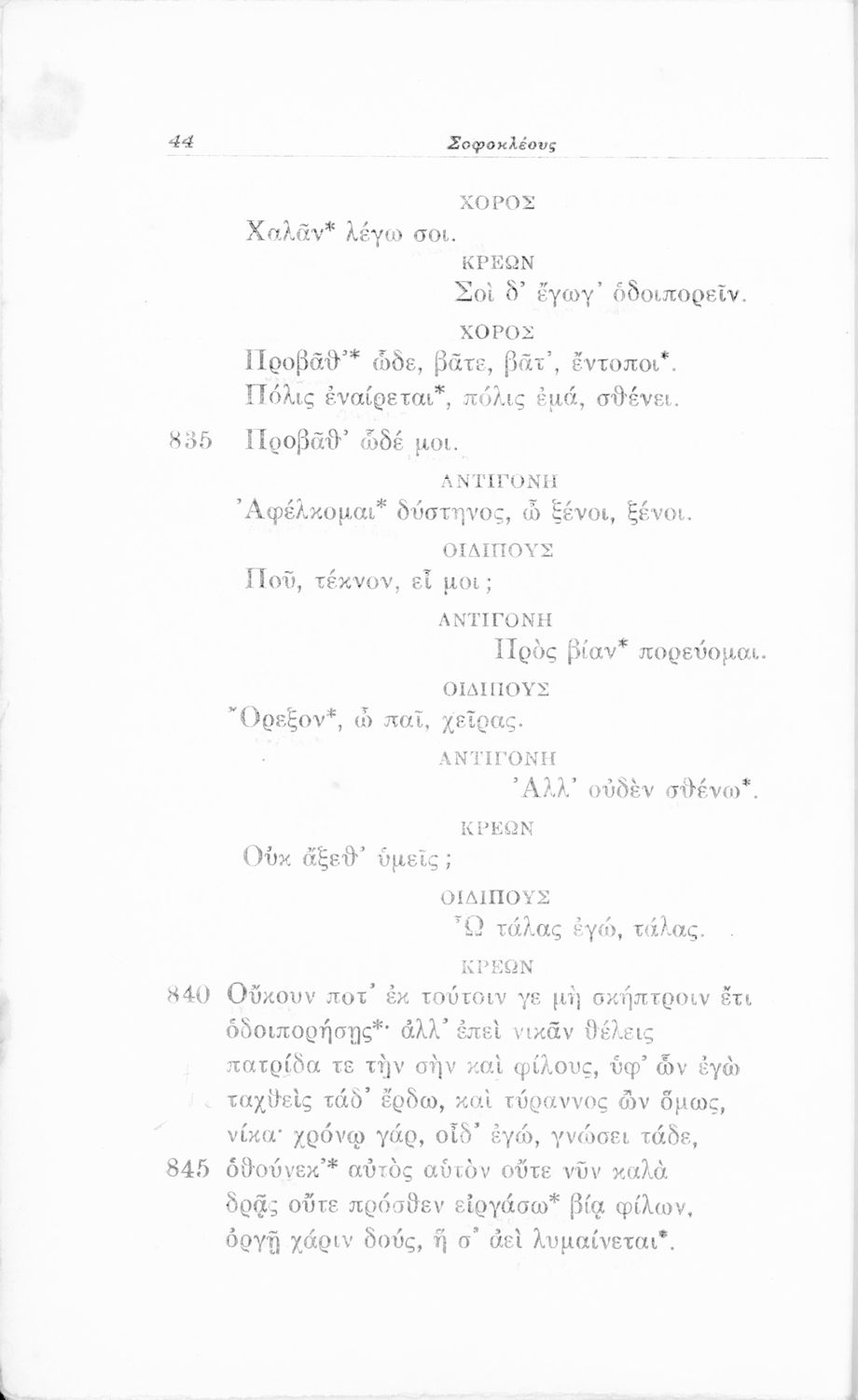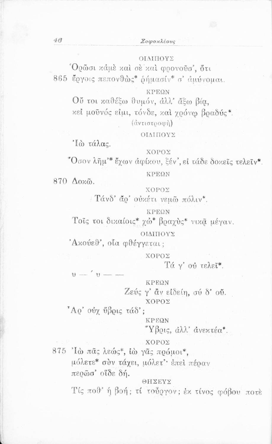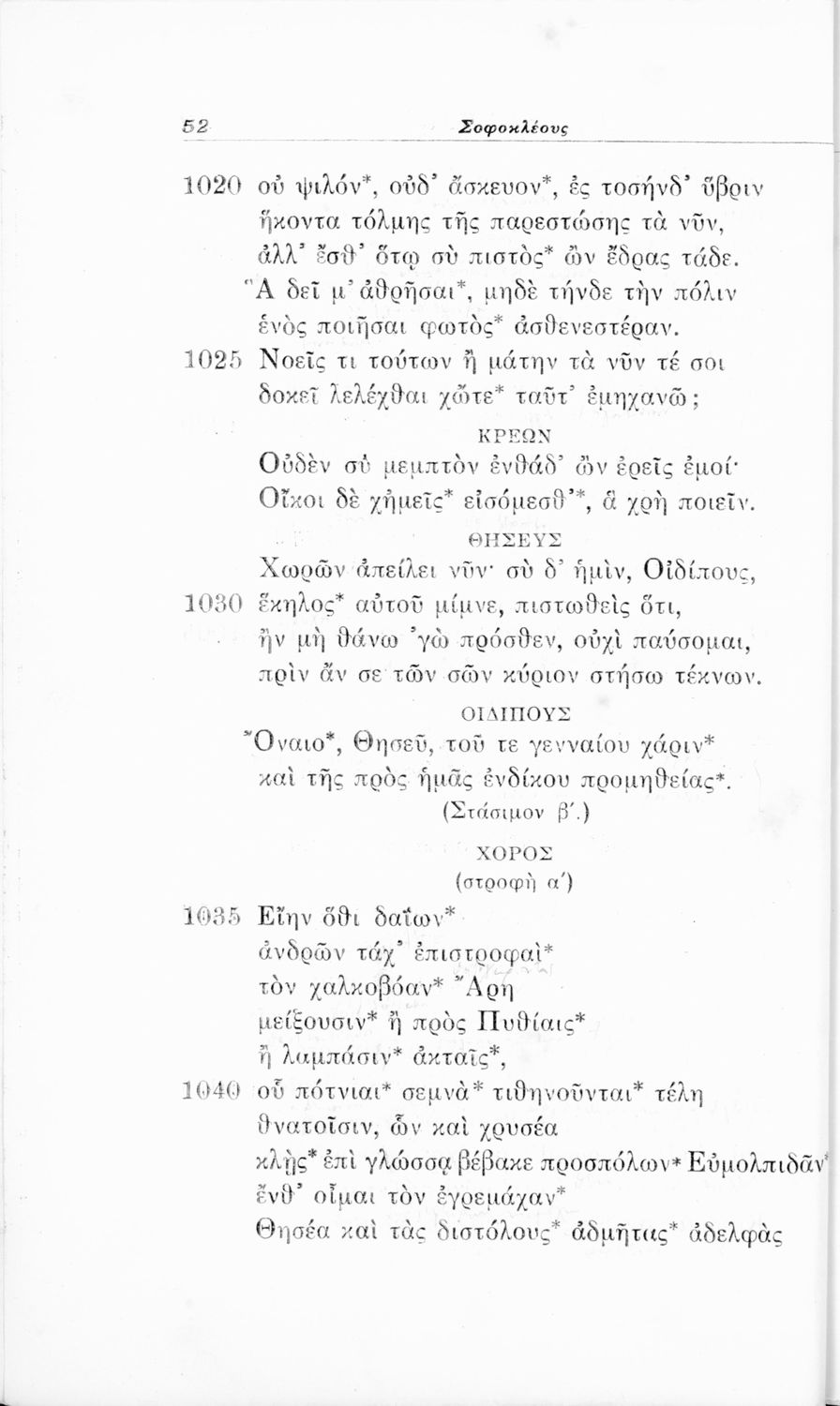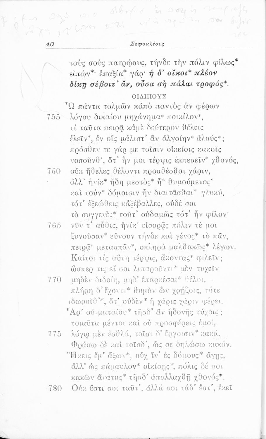 Σχολικό εγχειρίδιο της ΣΤ΄ Γυμνασίου για το μάθημα των Αρχαίων Ελληνικών. Περιλαμβάνει την τραγωδία Οιδίπους επί Κολωνώ, πραγματολογικά σχόλια και λεξιλογικές παρατηρήσεις. Ο συγγραφέας ήταν Γυμνασιάρχης.