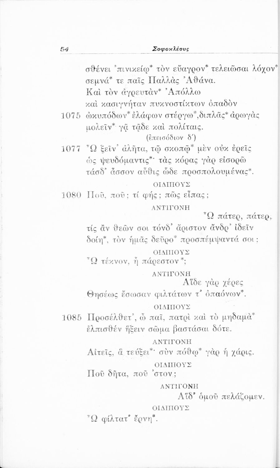 Σοφοκλέους Οιδίπους επί Κολωνώ (μετά Λεξιλογίου) Χάριν των μαθητών και μαθητριών της ΣΤ΄ Τάξεως του Εξατάξιου Γυμνασίου και της αντιστοίχου των Διδασκαλείων κ.λ.π