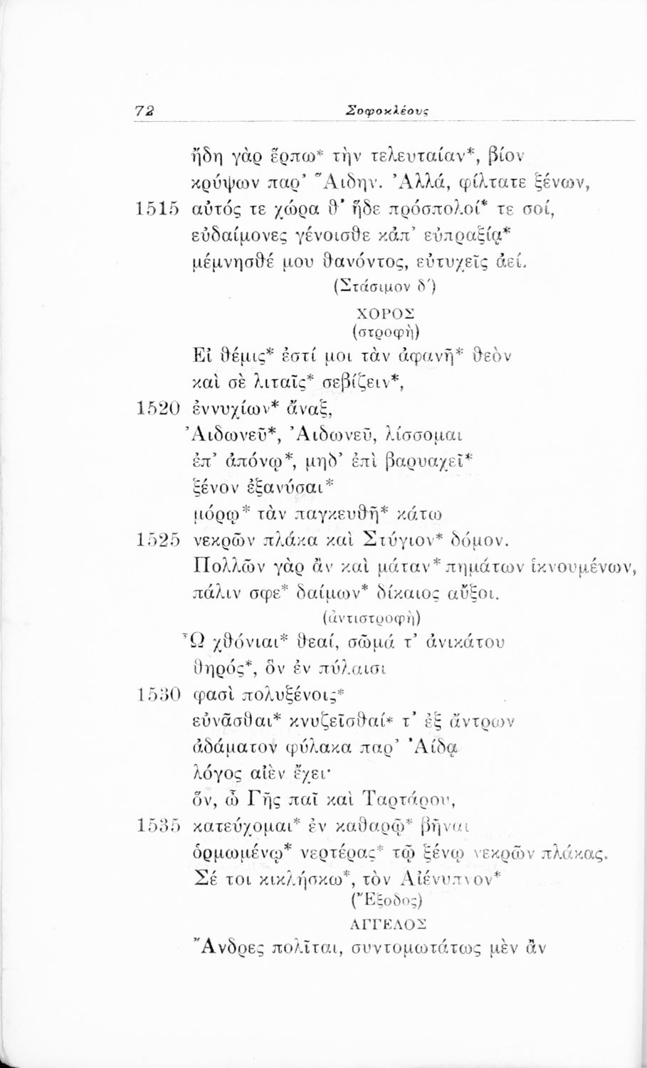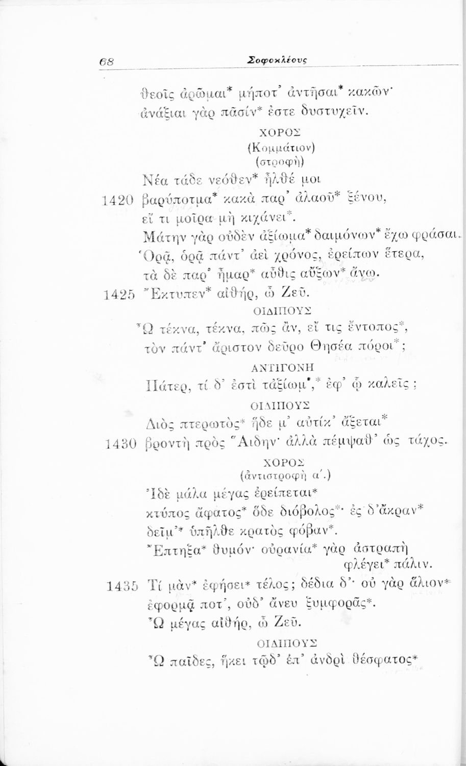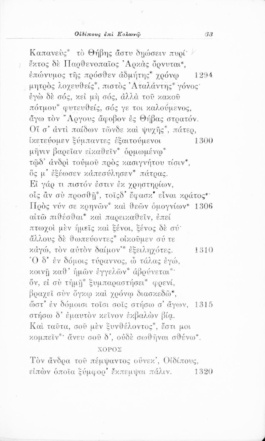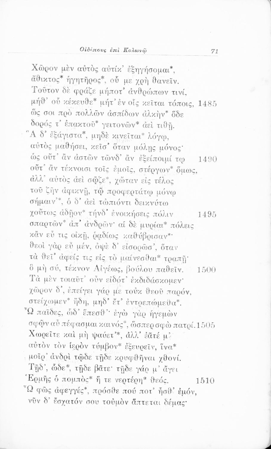 Σοφοκλέους Οιδίπους επί Κολωνώ (μετά Λεξιλογίου) Χάριν των μαθητών και μαθητριών της ΣΤ΄ Τάξεως του Εξατάξιου Γυμνασίου και της αντιστοίχου των Διδασκαλείων κ.λ.π