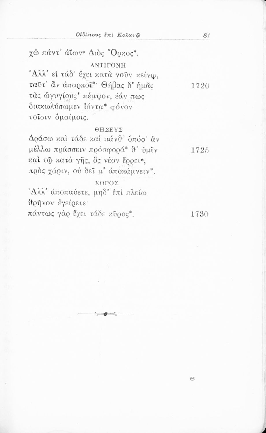 Σοφοκλέους Οιδίπους επί Κολωνώ (μετά Λεξιλογίου) Χάριν των μαθητών και μαθητριών της ΣΤ΄ Τάξεως του Εξατάξιου Γυμνασίου και της αντιστοίχου των Διδασκαλείων κ.λ.π