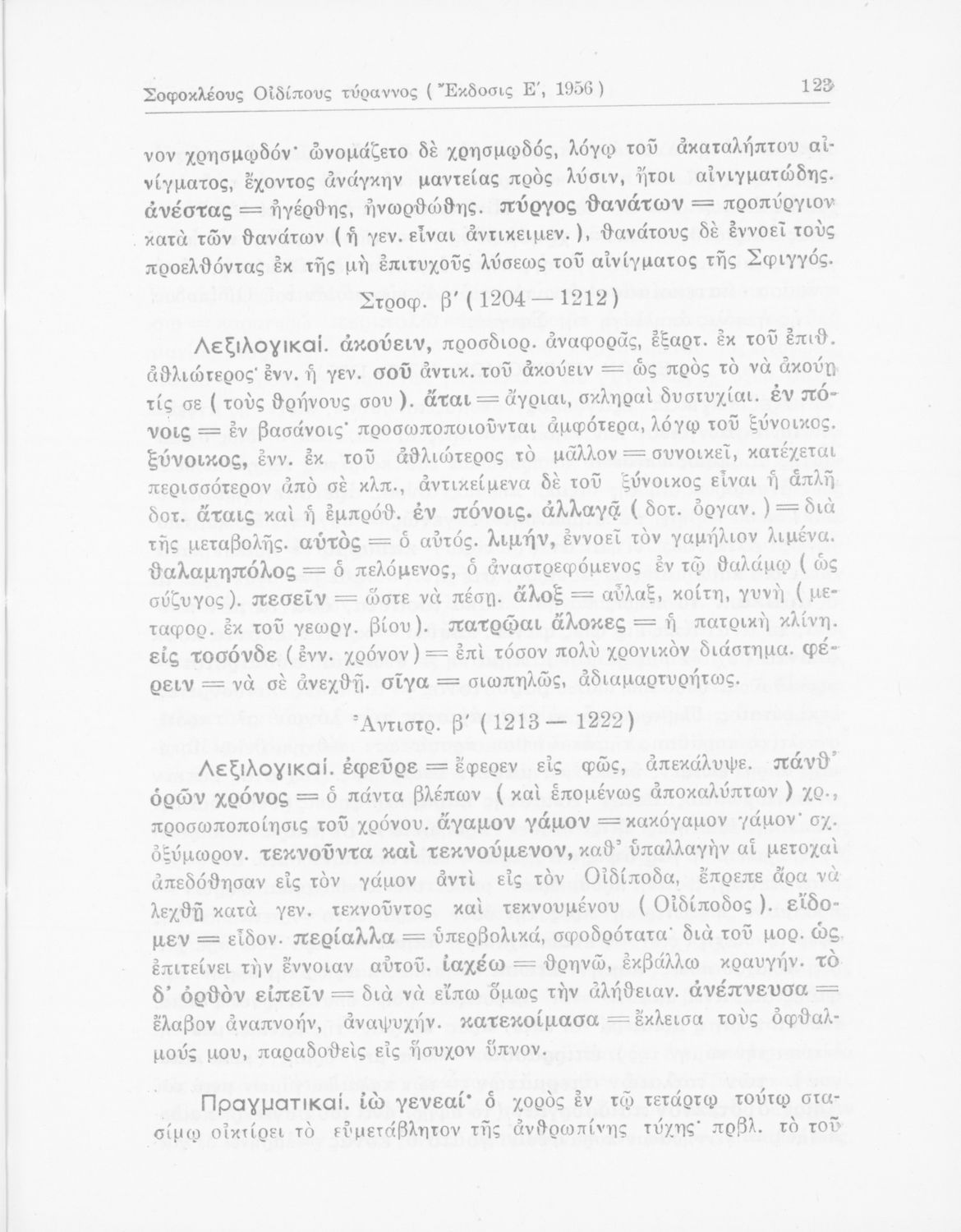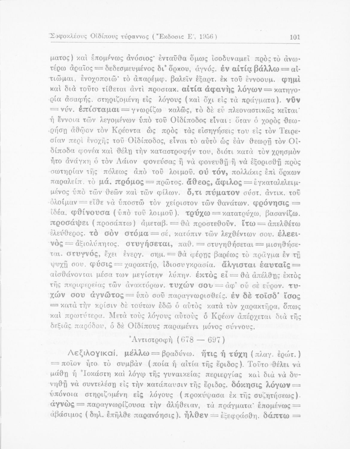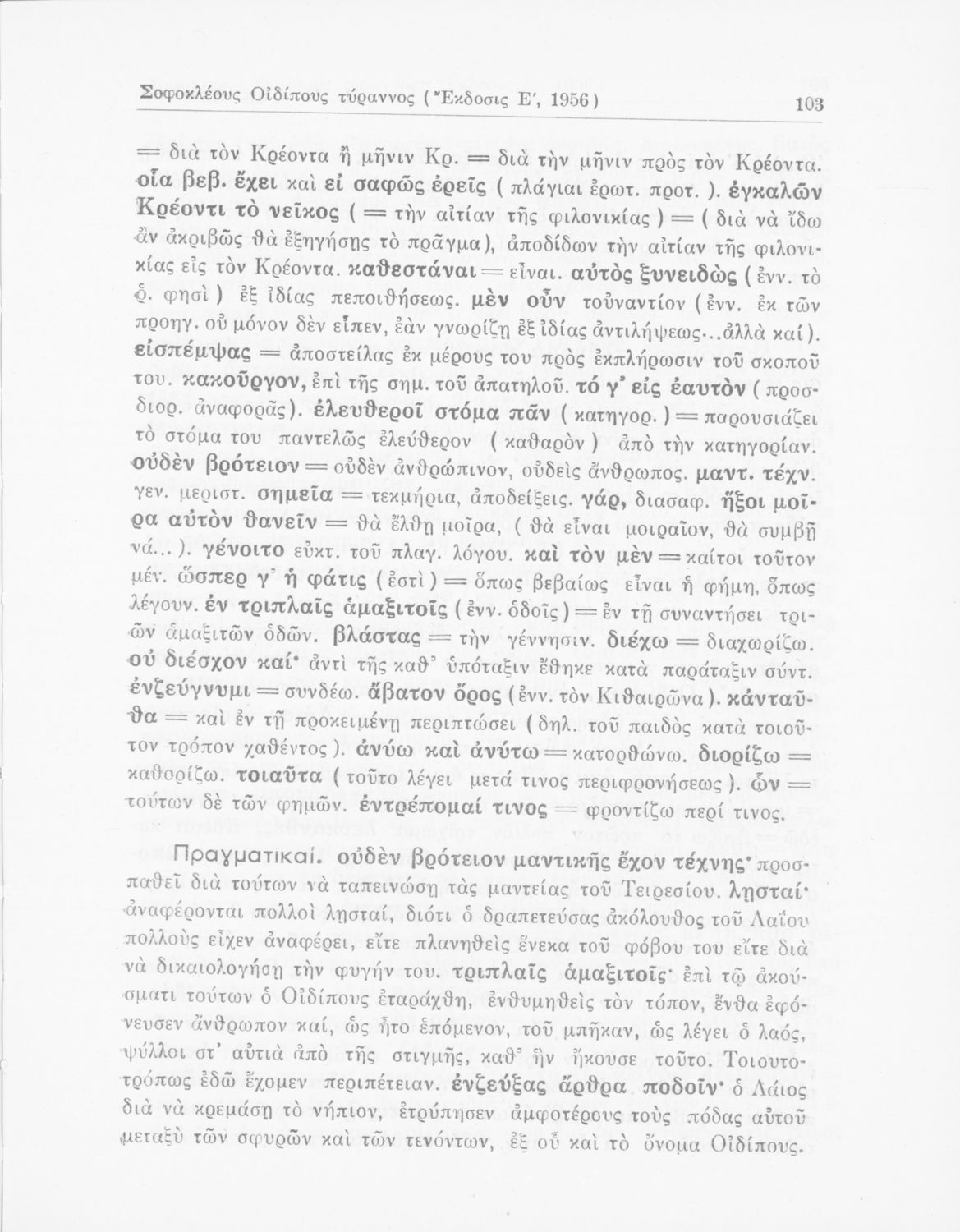 Σχολικό εγχειρίδιο του Γυμνασίου για το μάθημα των Αρχαίων Ελληνικών που περιέχει την τραγωδία του Σοφοκλή Οιδίπους Τύραννος, ερμηνευτικά και πραγματολογικά σχόλια και λεξιλογικές παρατηρήσεις.