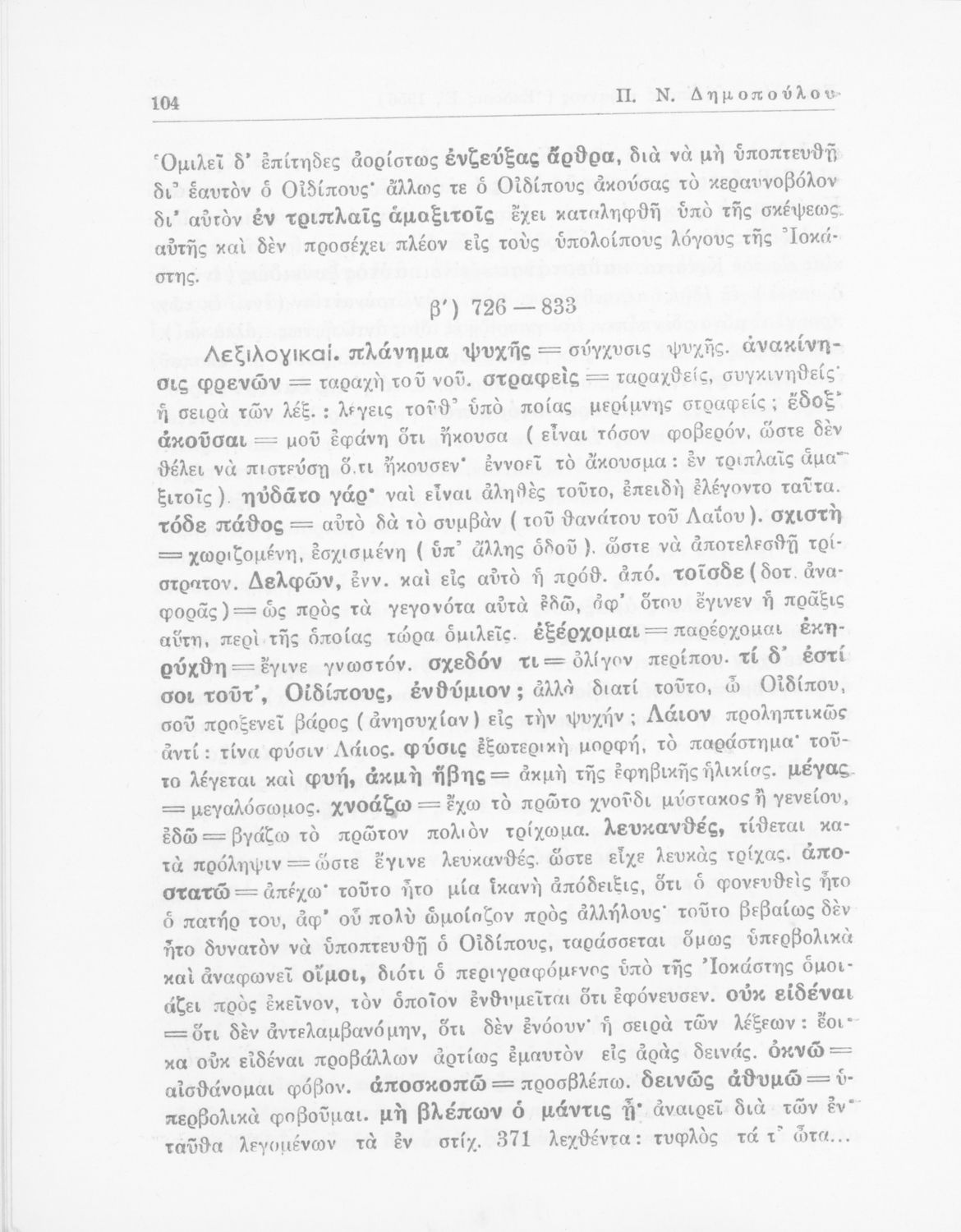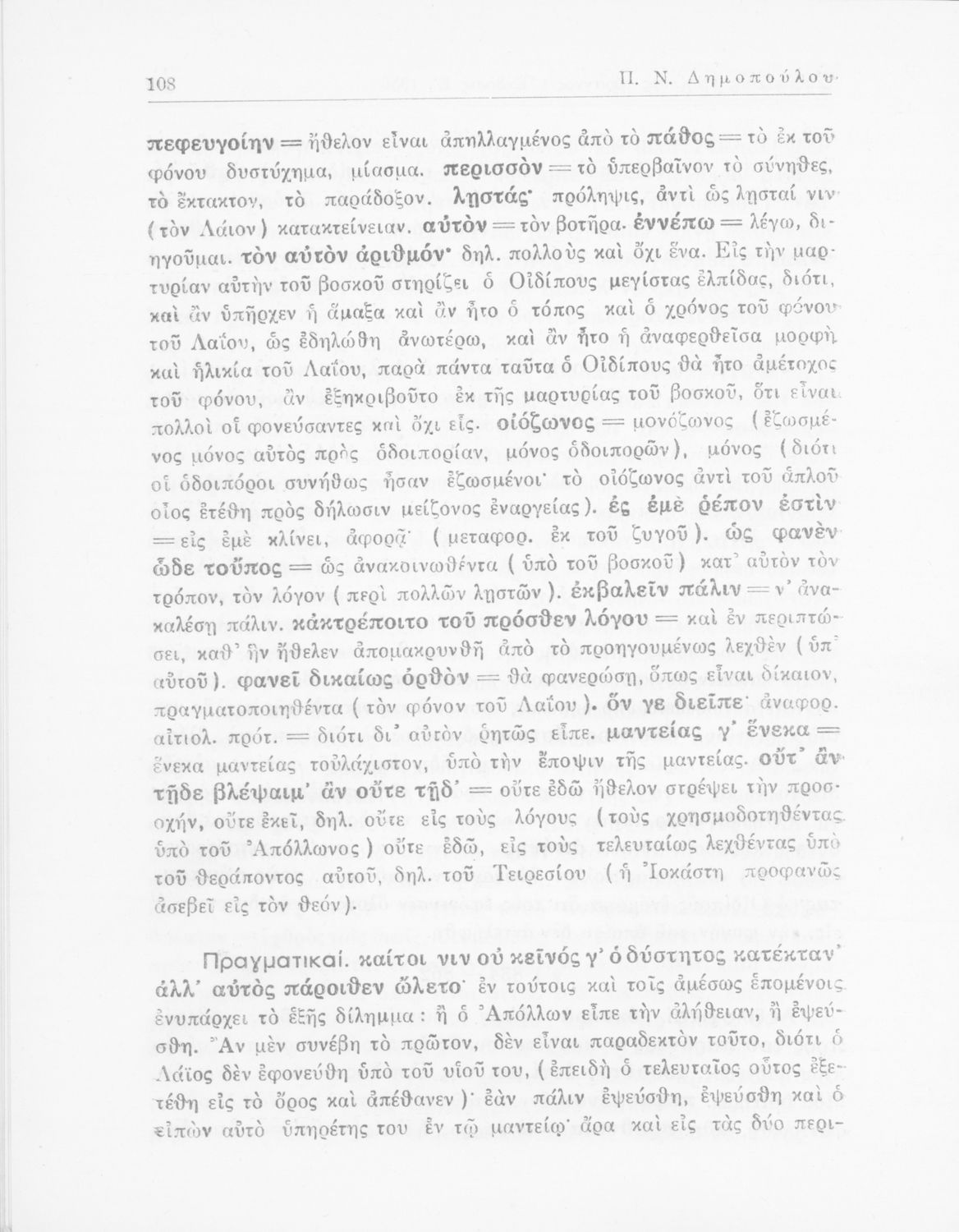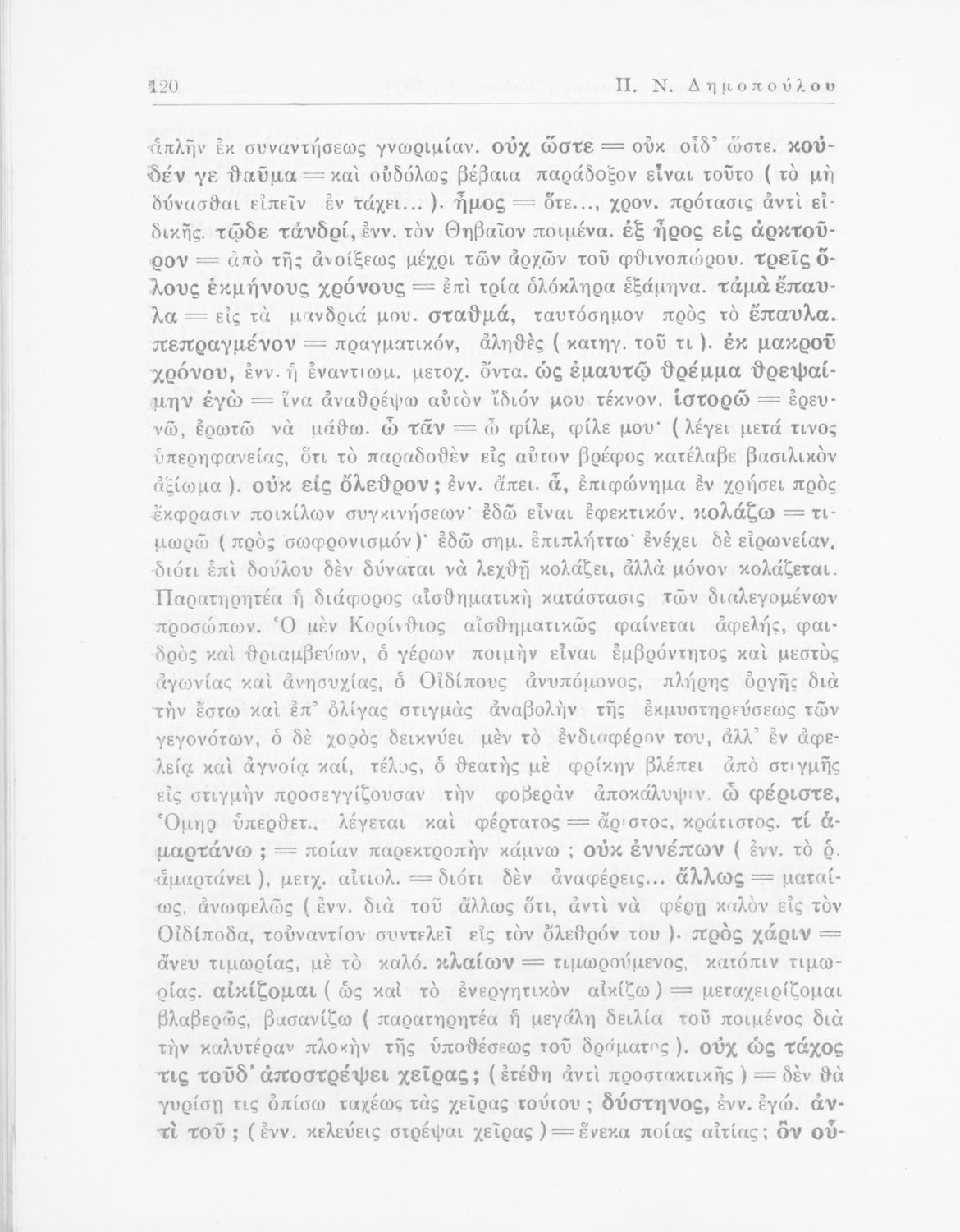 Σοφοκλής, Π. Ν Δημόπουλος (σχόλια)