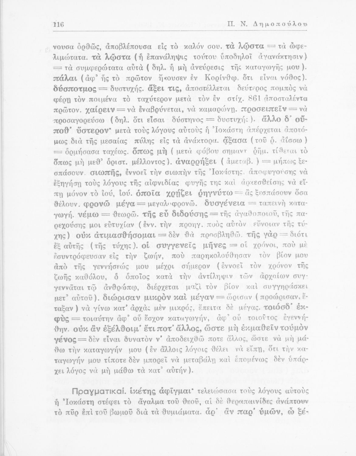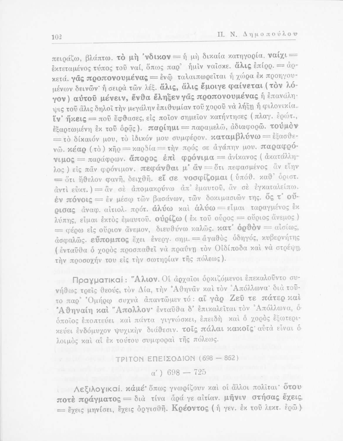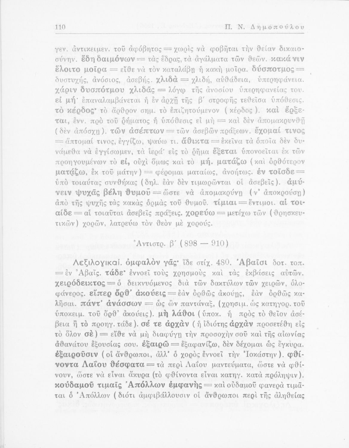 Σοφοκλής, Π. Ν Δημόπουλος (σχόλια)