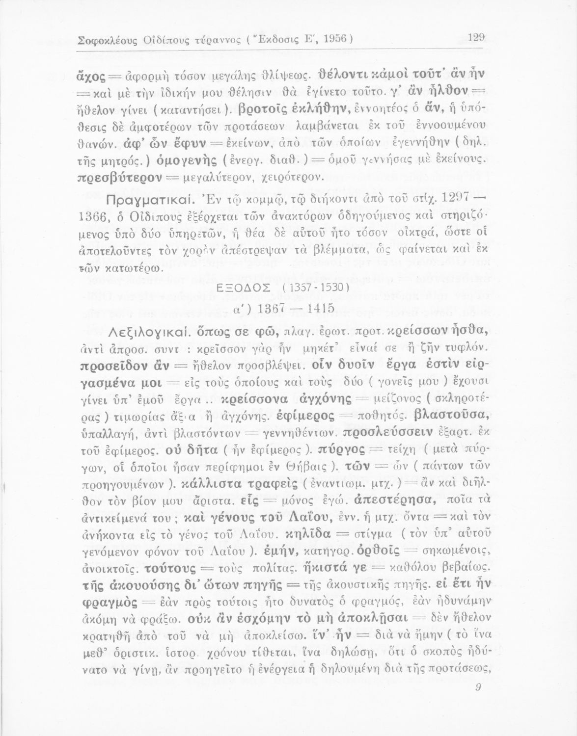Σχολικό εγχειρίδιο του Γυμνασίου για το μάθημα των Αρχαίων Ελληνικών που περιέχει την τραγωδία του Σοφοκλή Οιδίπους Τύραννος, ερμηνευτικά και πραγματολογικά σχόλια και λεξιλογικές παρατηρήσεις.
