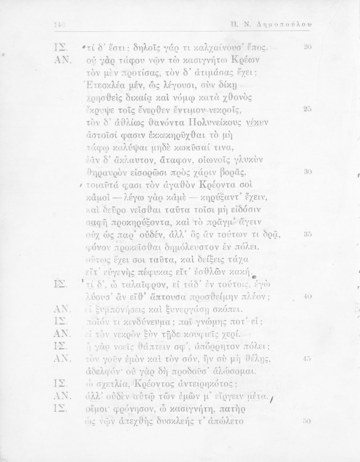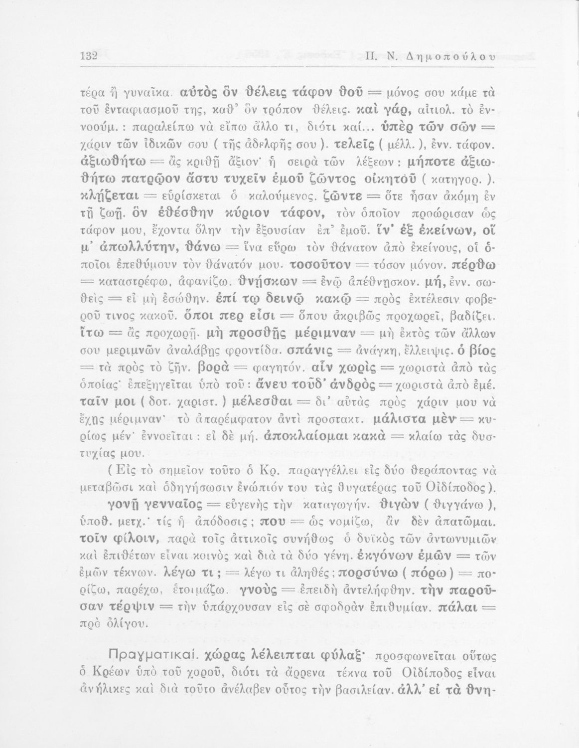 Σοφοκλής, Π. Ν. Δημόπουλος (σχόλια)