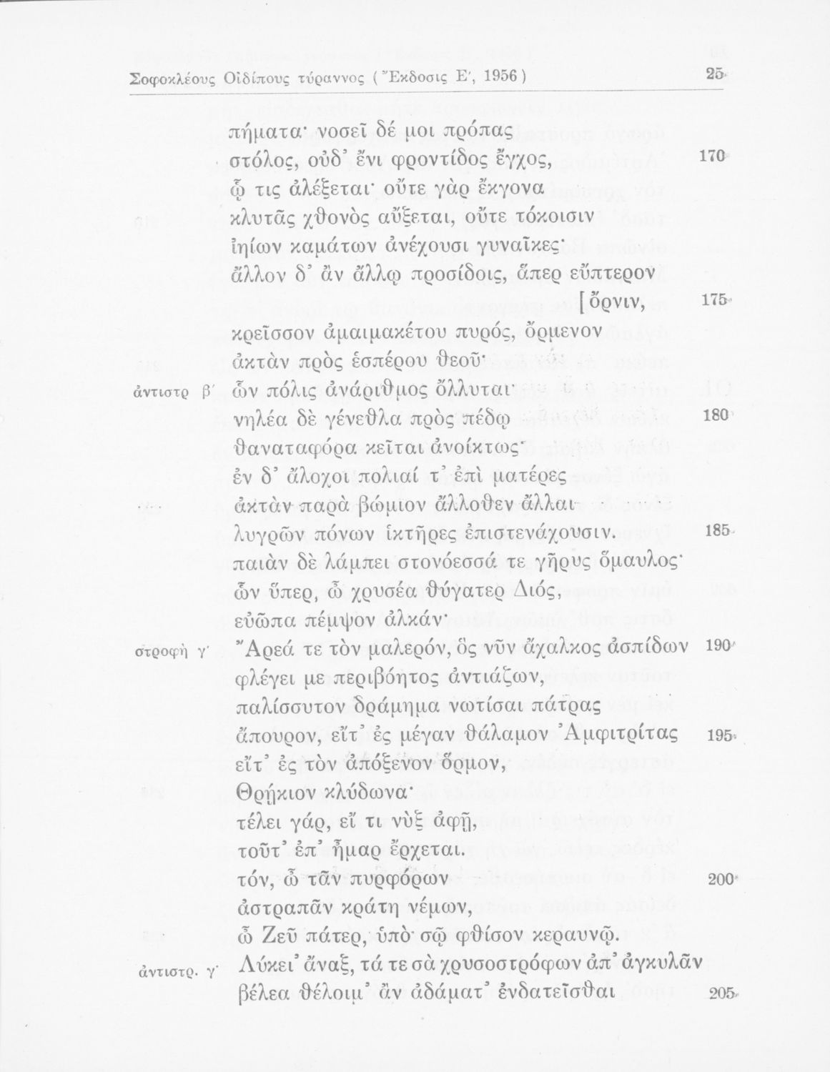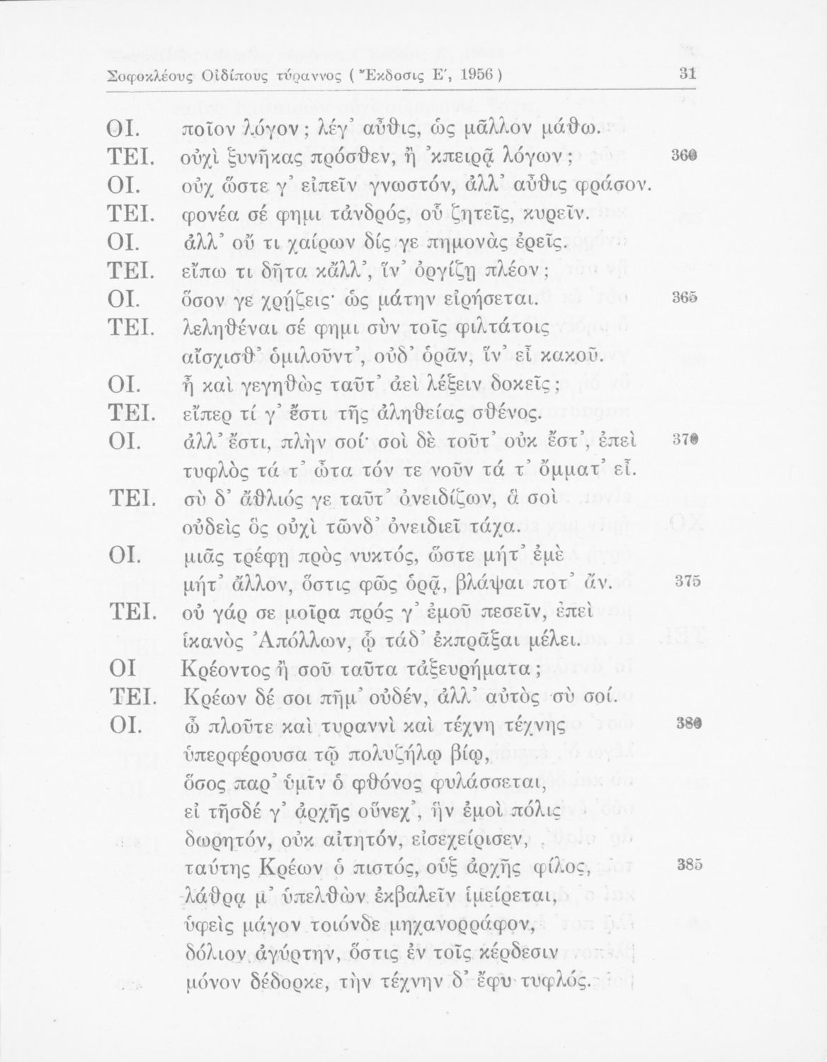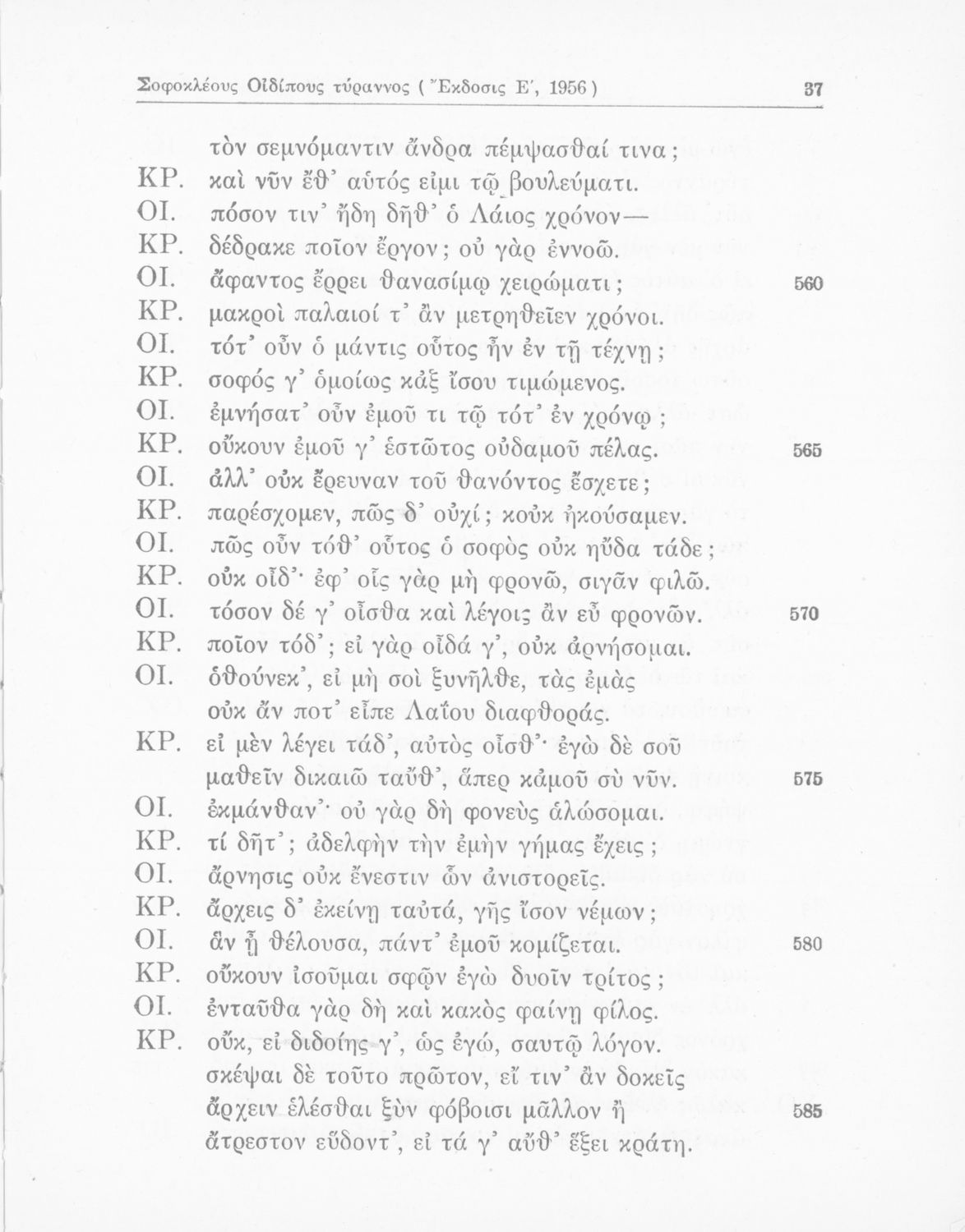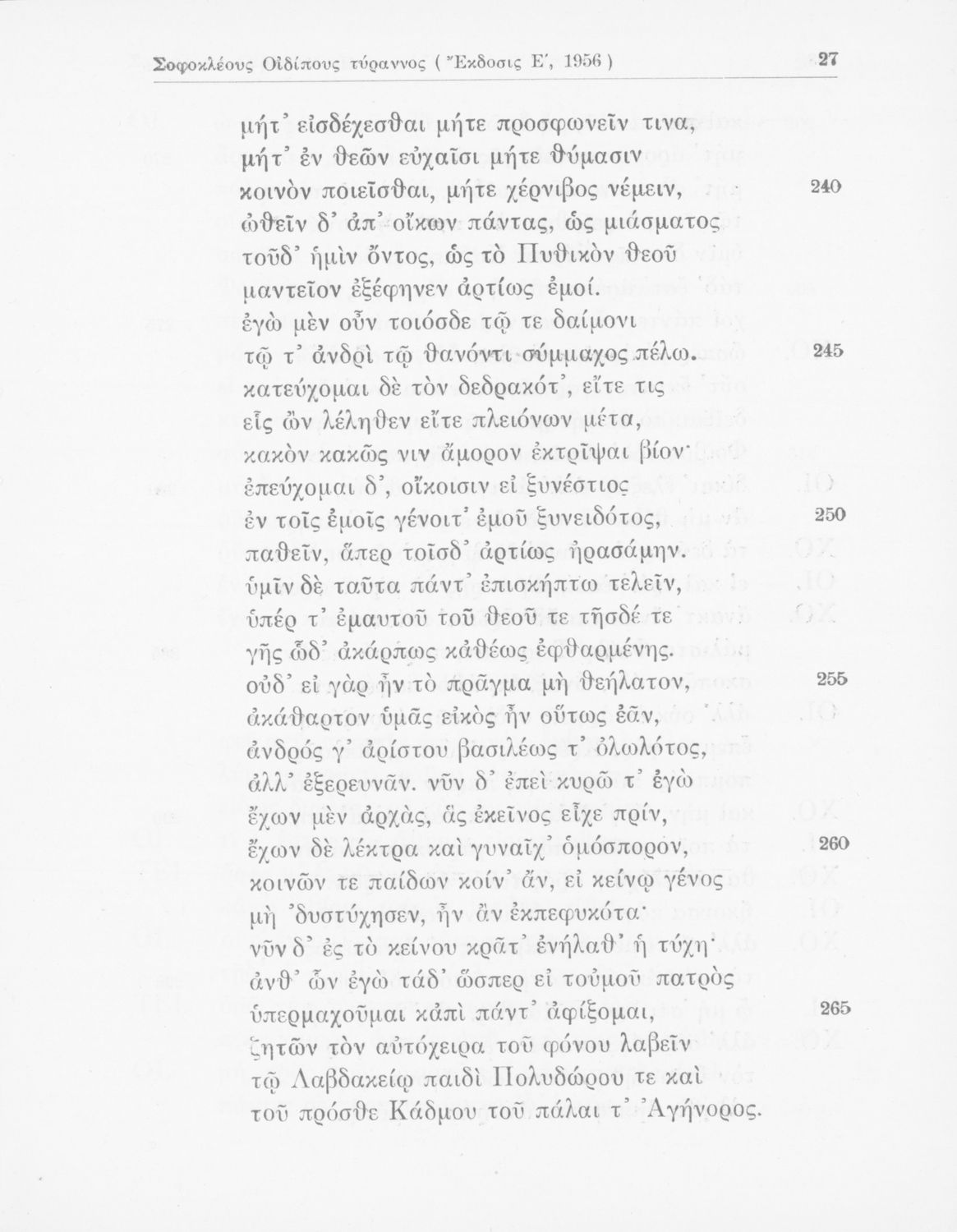 Σχολικό εγχειρίδιο του Γυμνασίου για το μάθημα των Αρχαίων Ελληνικών που περιέχει την τραγωδία του Σοφοκλή Οιδίπους Τύραννος, ερμηνευτικά και πραγματολογικά σχόλια και λεξιλογικές παρατηρήσεις.