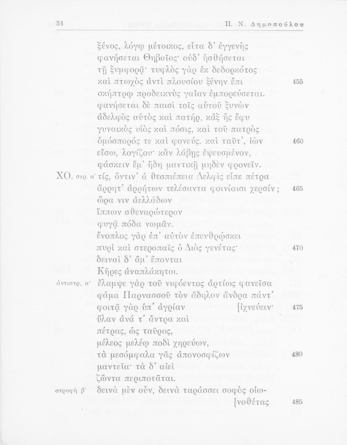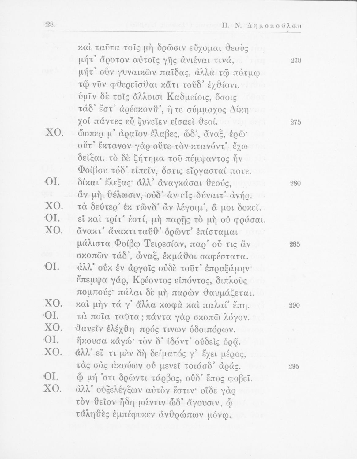 Σοφοκλής, Π. Ν Δημόπουλος (σχόλια)