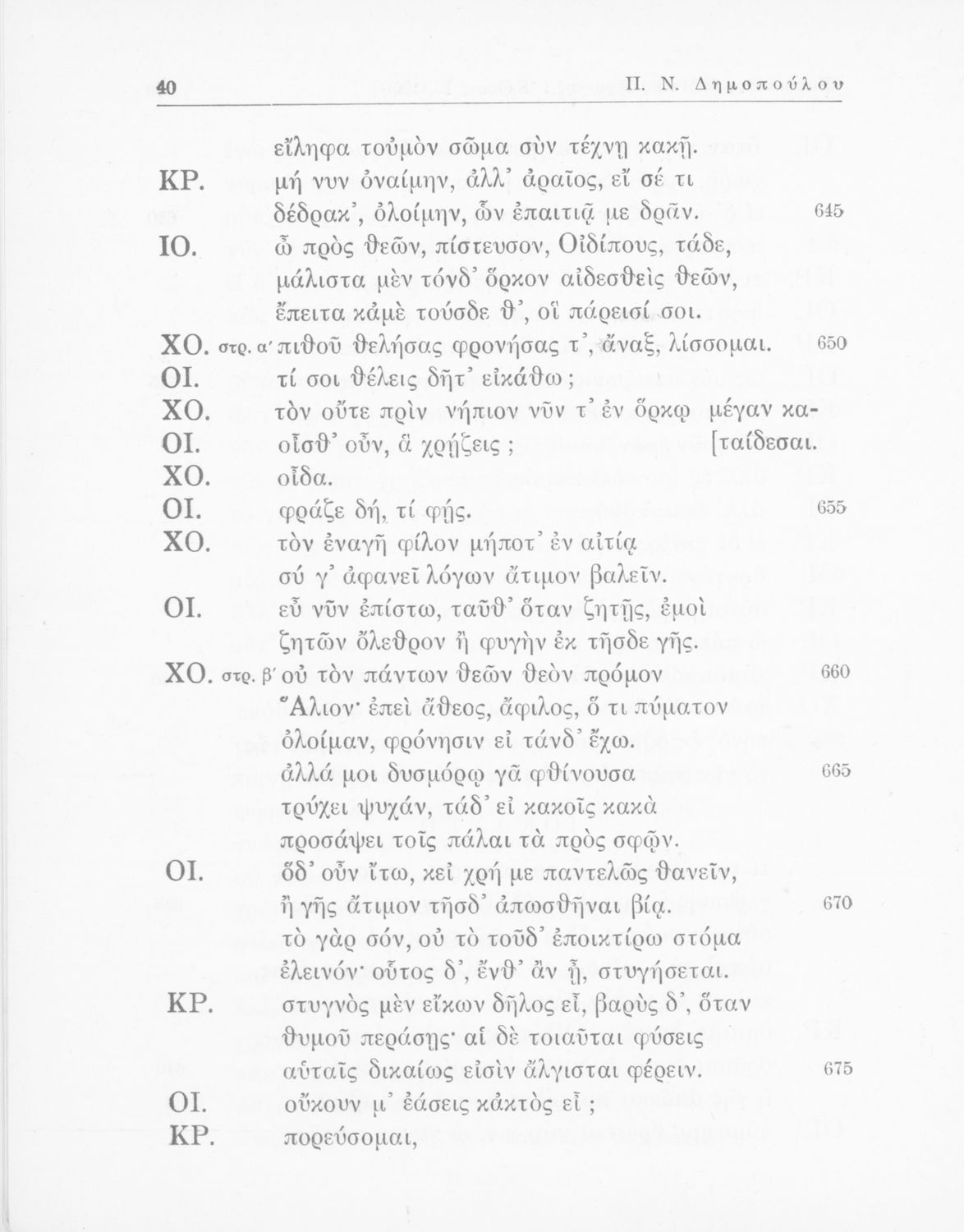 Σοφοκλής, Π. Ν. Δημόπουλος (σχόλια)