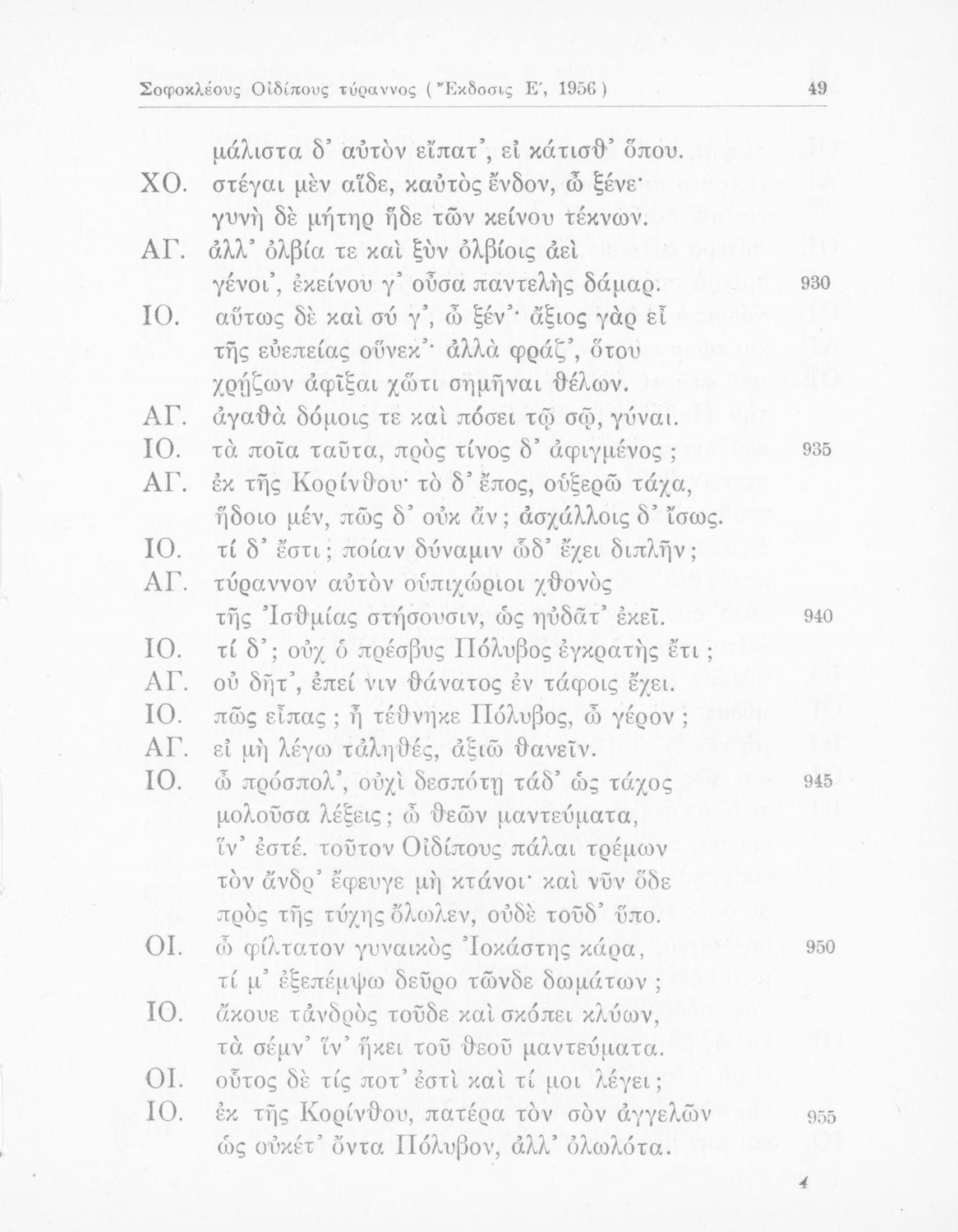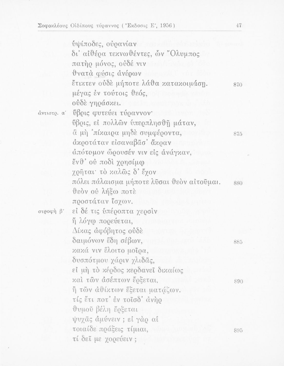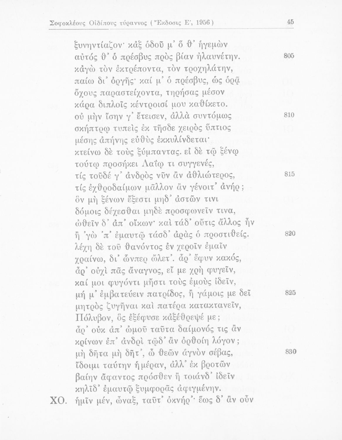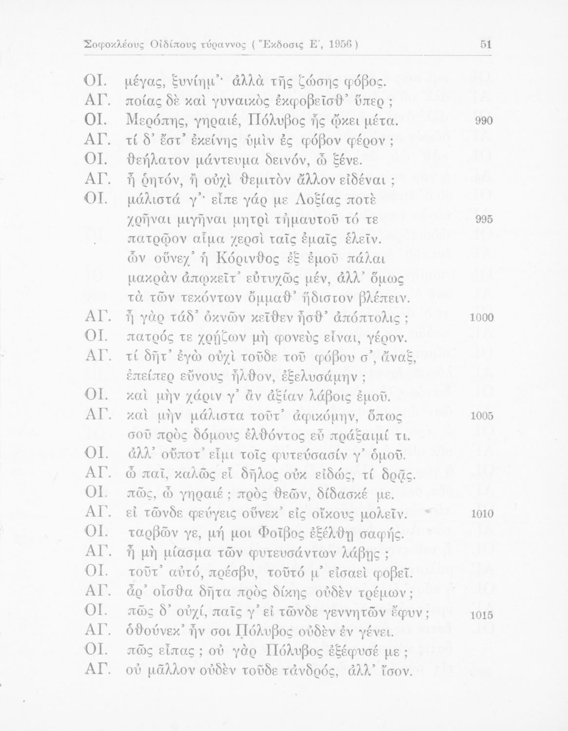 Σχολικό εγχειρίδιο του Γυμνασίου για το μάθημα των Αρχαίων Ελληνικών που περιέχει την τραγωδία του Σοφοκλή Οιδίπους Τύραννος, ερμηνευτικά και πραγματολογικά σχόλια και λεξιλογικές παρατηρήσεις.