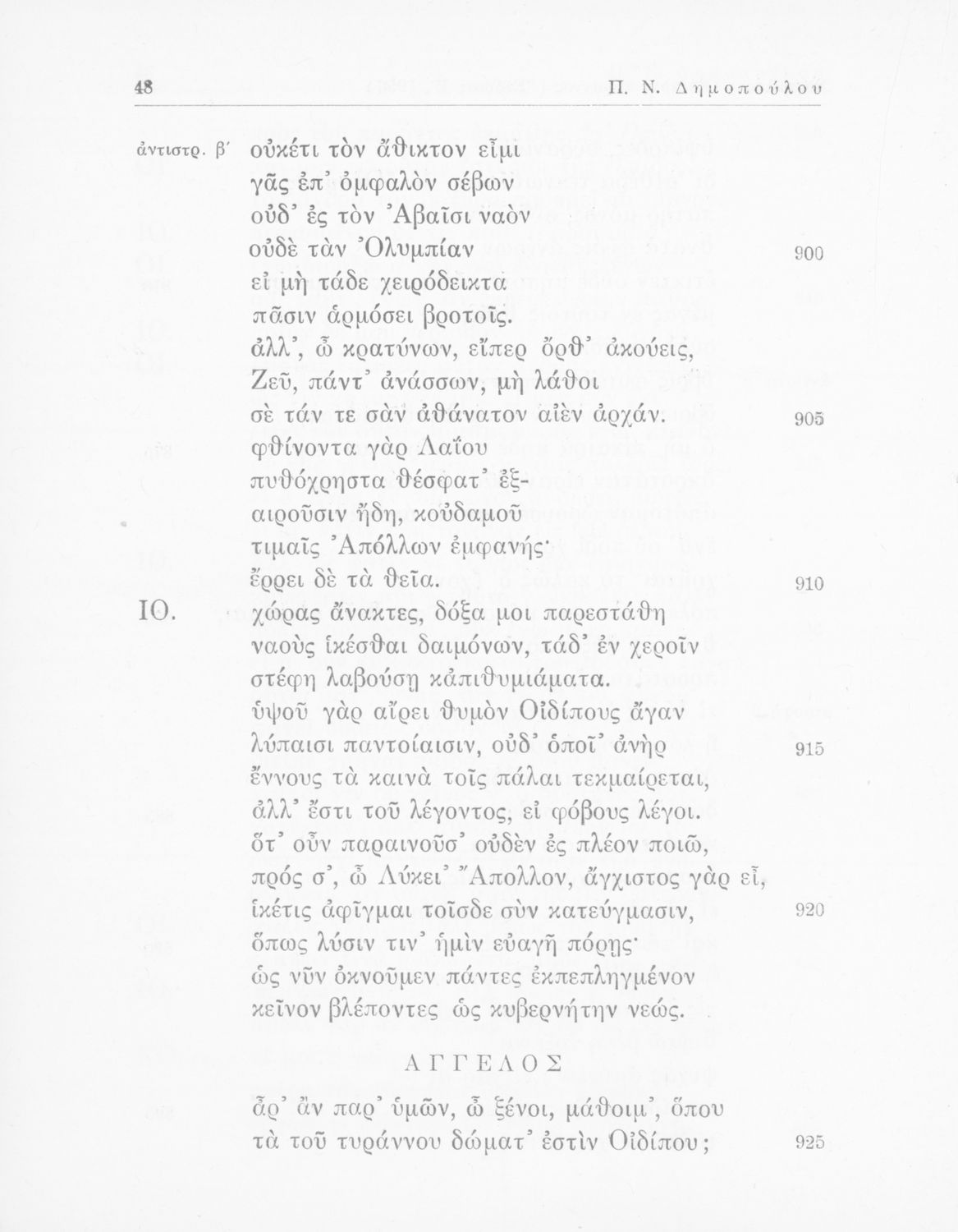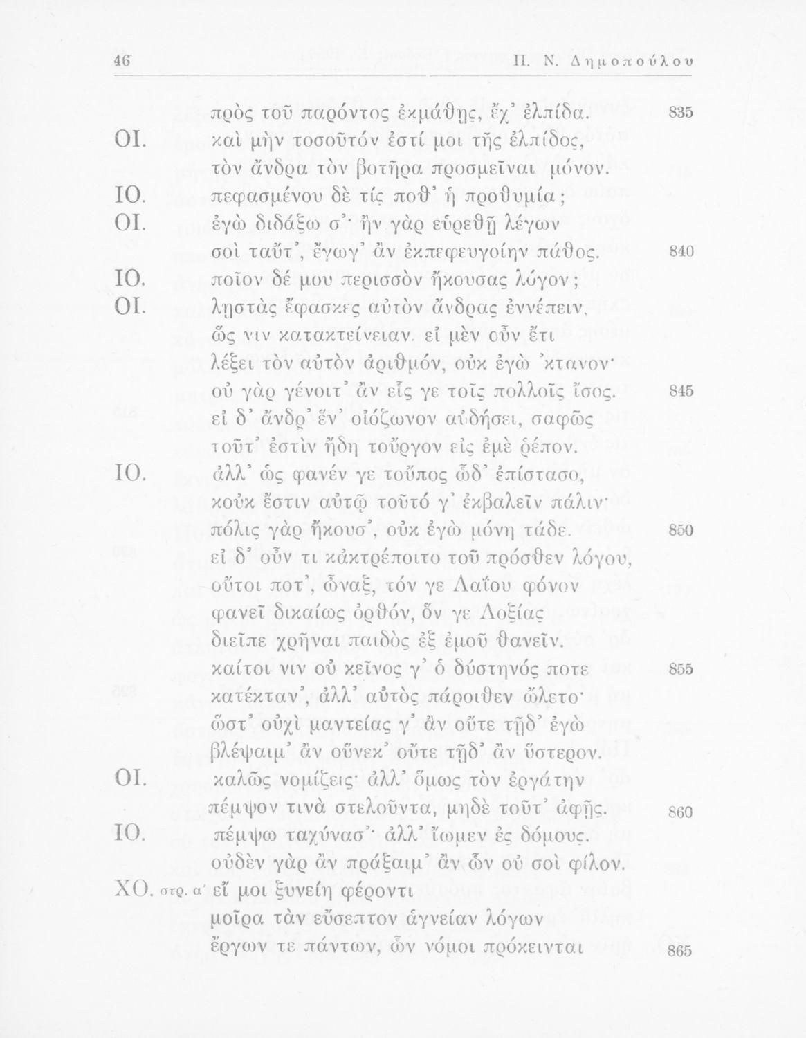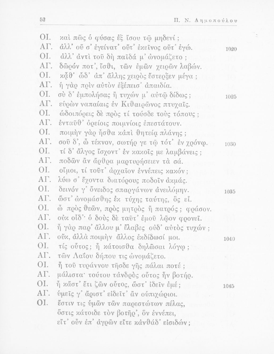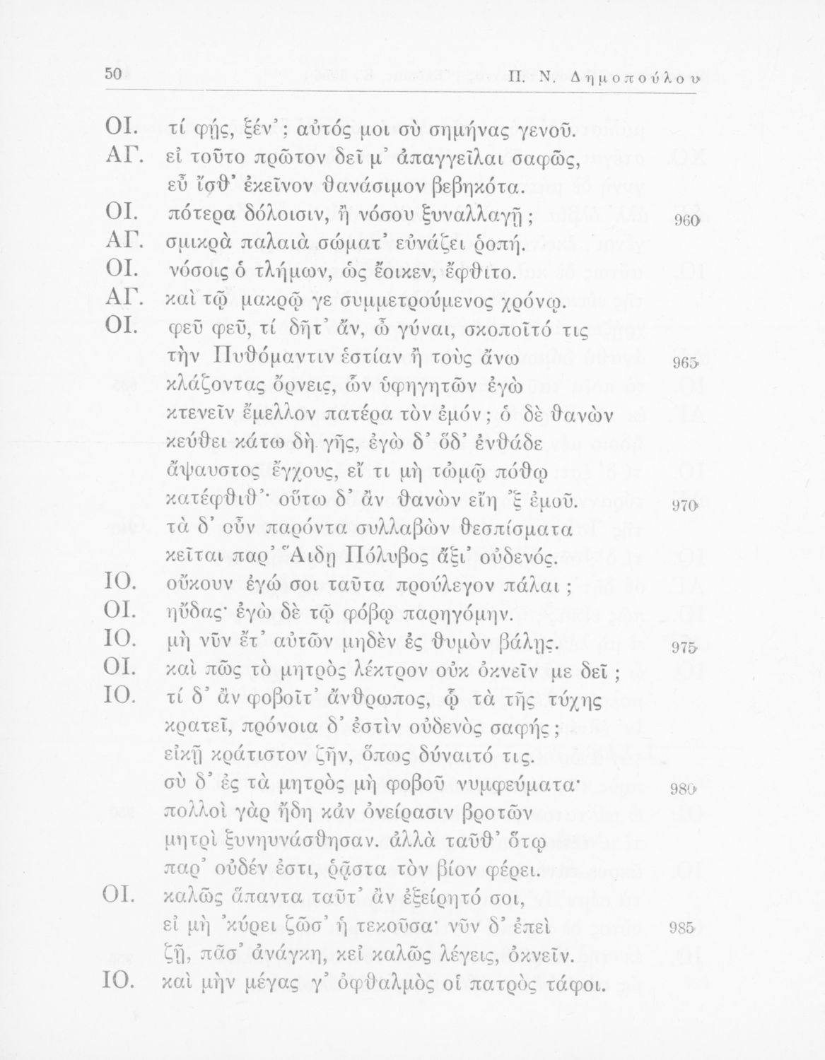 Σοφοκλής, Π. Ν Δημόπουλος (σχόλια)