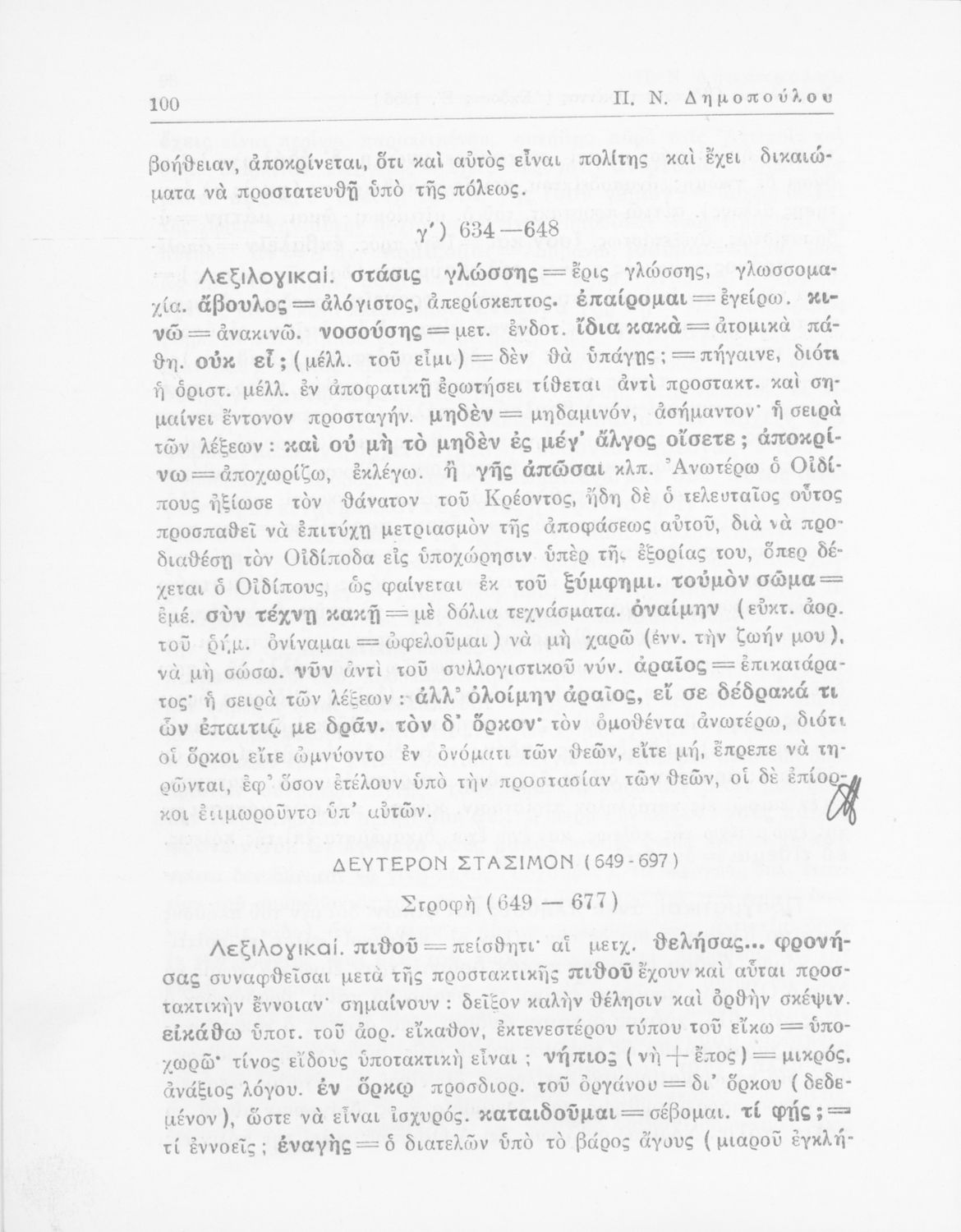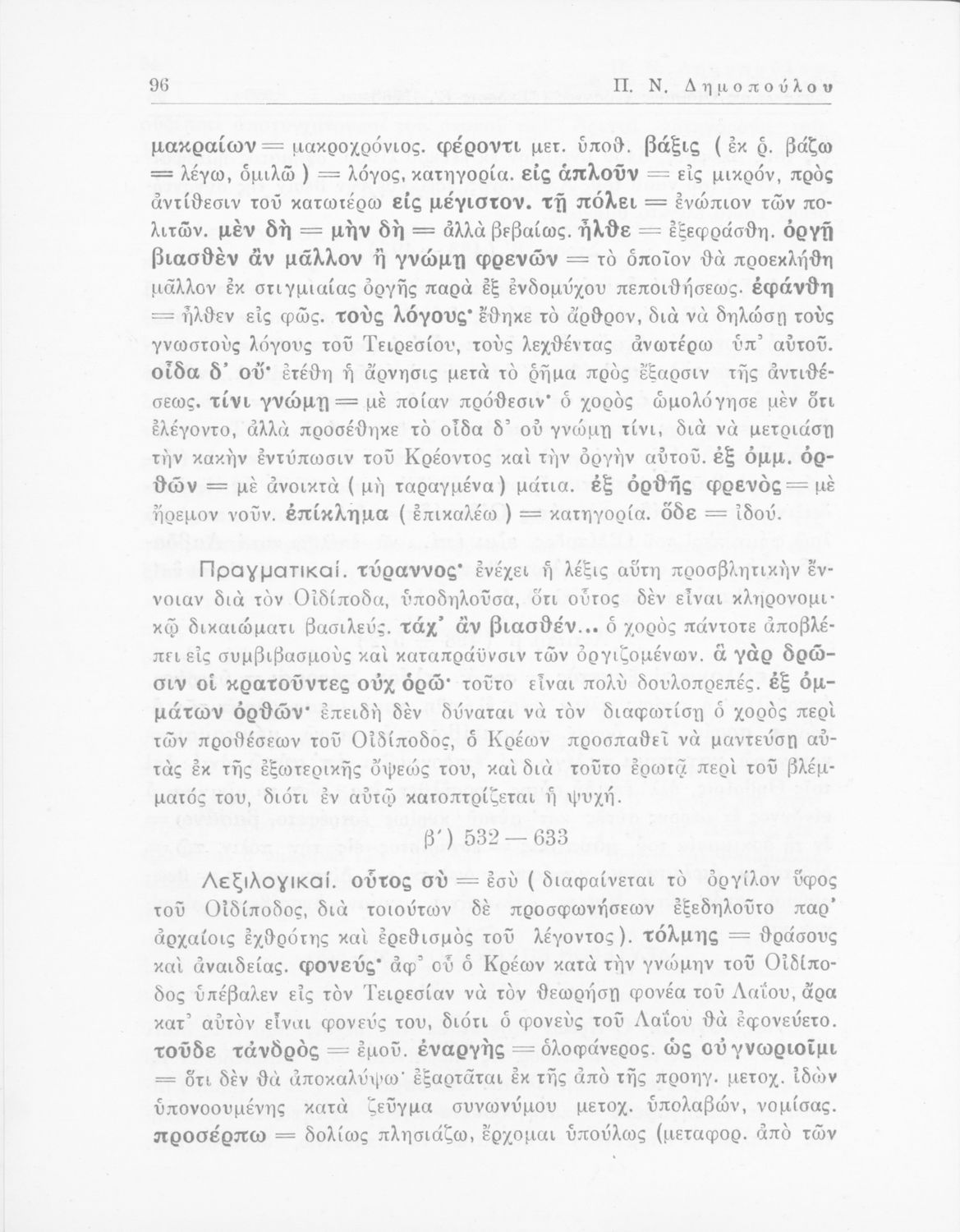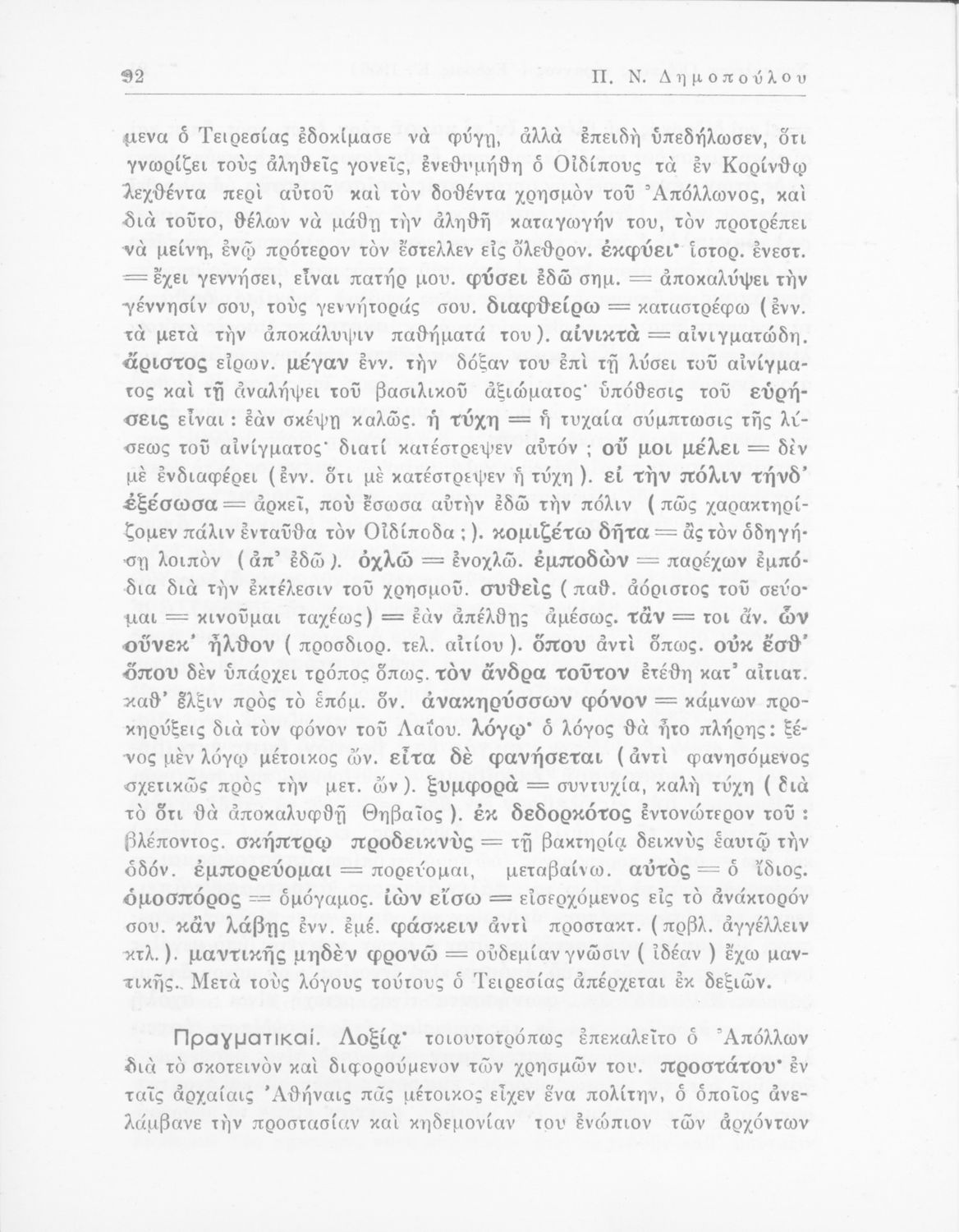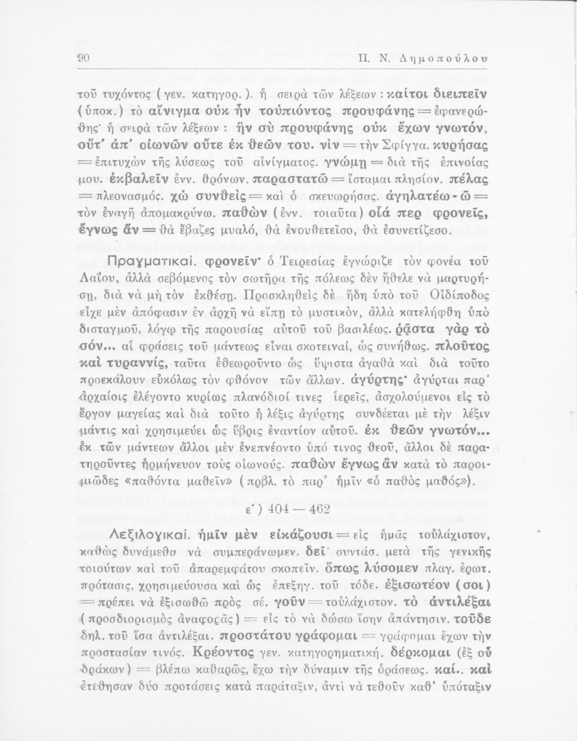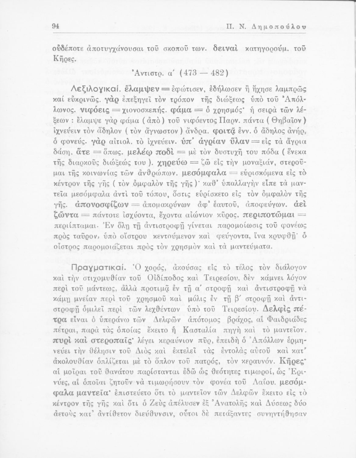 Σοφοκλής, Π. Ν. Δημόπουλος (σχόλια)