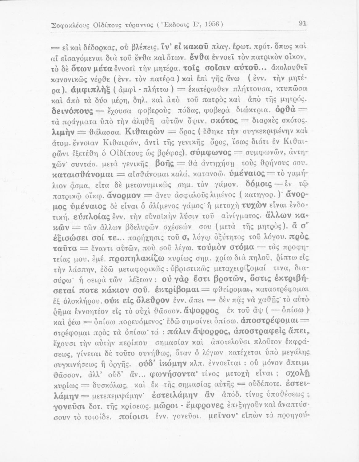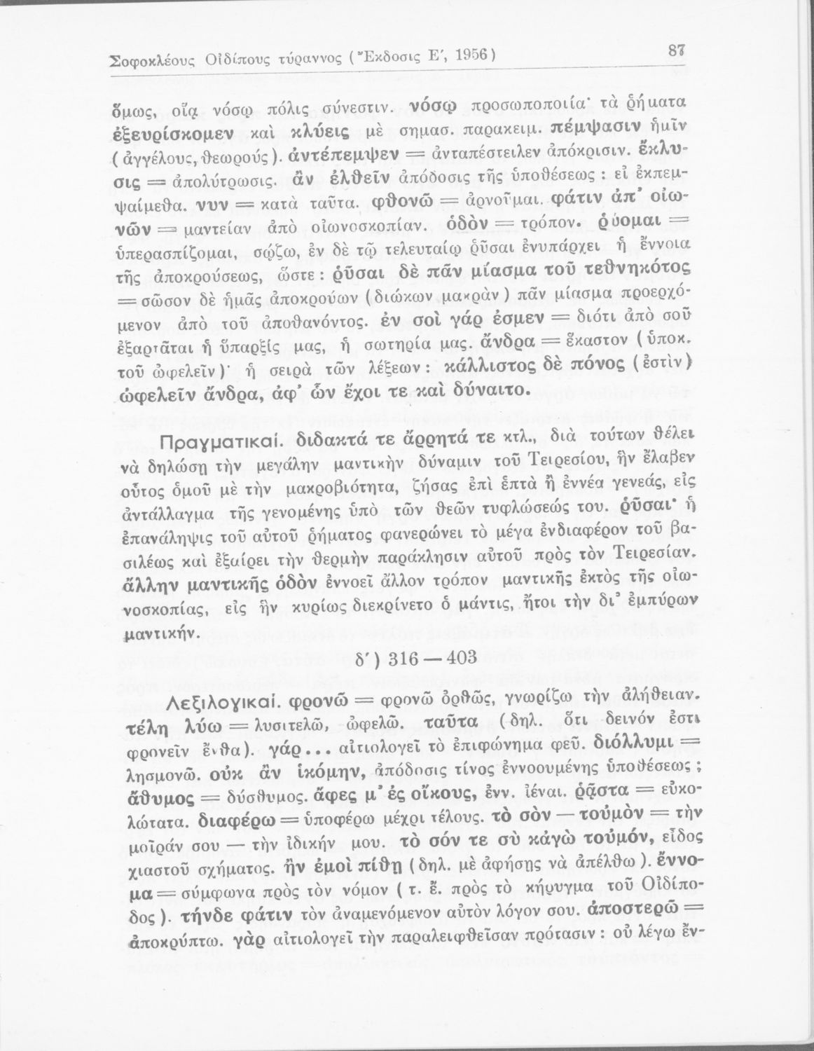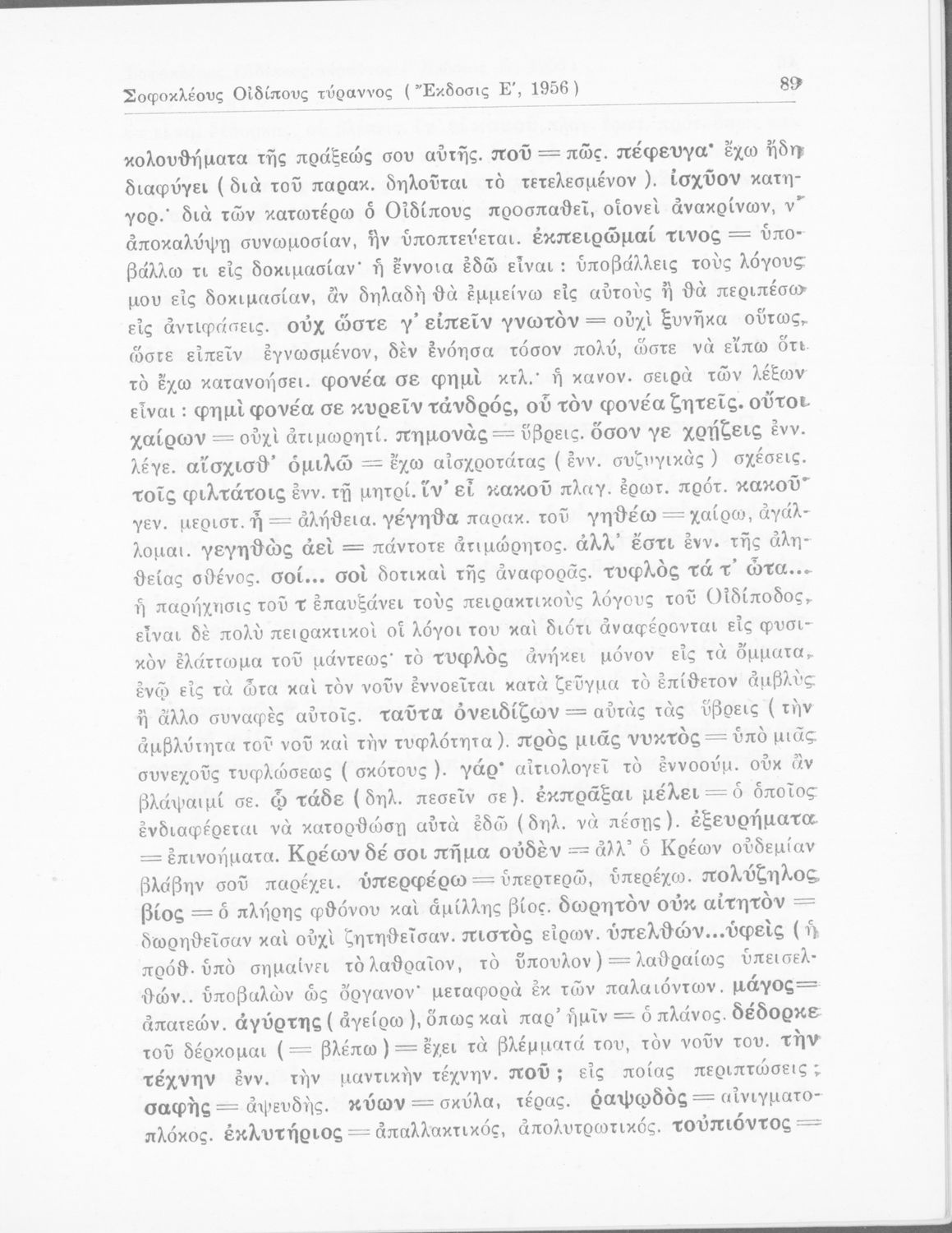 Σχολικό εγχειρίδιο του Γυμνασίου για το μάθημα των Αρχαίων Ελληνικών που περιέχει την τραγωδία του Σοφοκλή Οιδίπους Τύραννος, ερμηνευτικά και πραγματολογικά σχόλια και λεξιλογικές παρατηρήσεις.