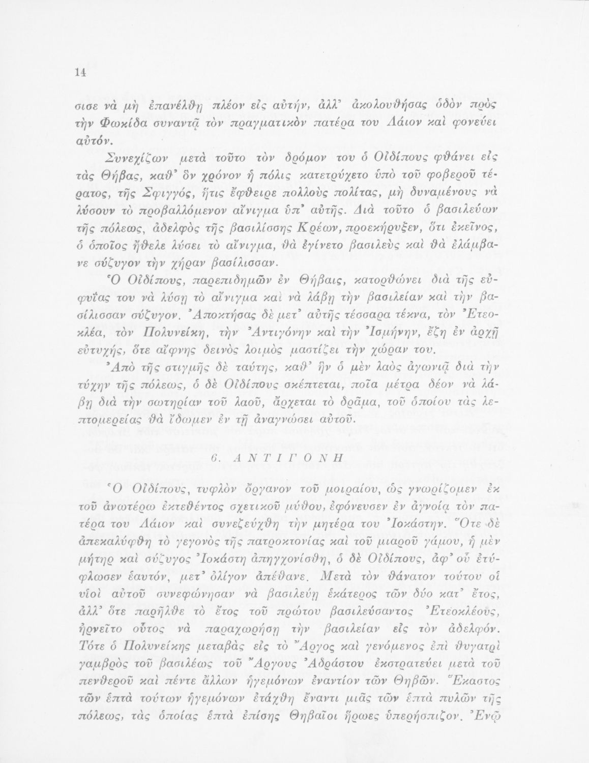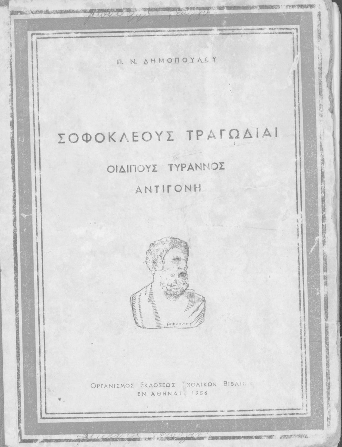 Σχολικό εγχειρίδιο Αρχαίων Ελληνικών που περιλαμβάνει τις τραγωδίες του Σοφοκλή Οιδίπους Τύραννος και Αντιγόνη, εισαγωγή και ερμηνευτικά σχόλια.