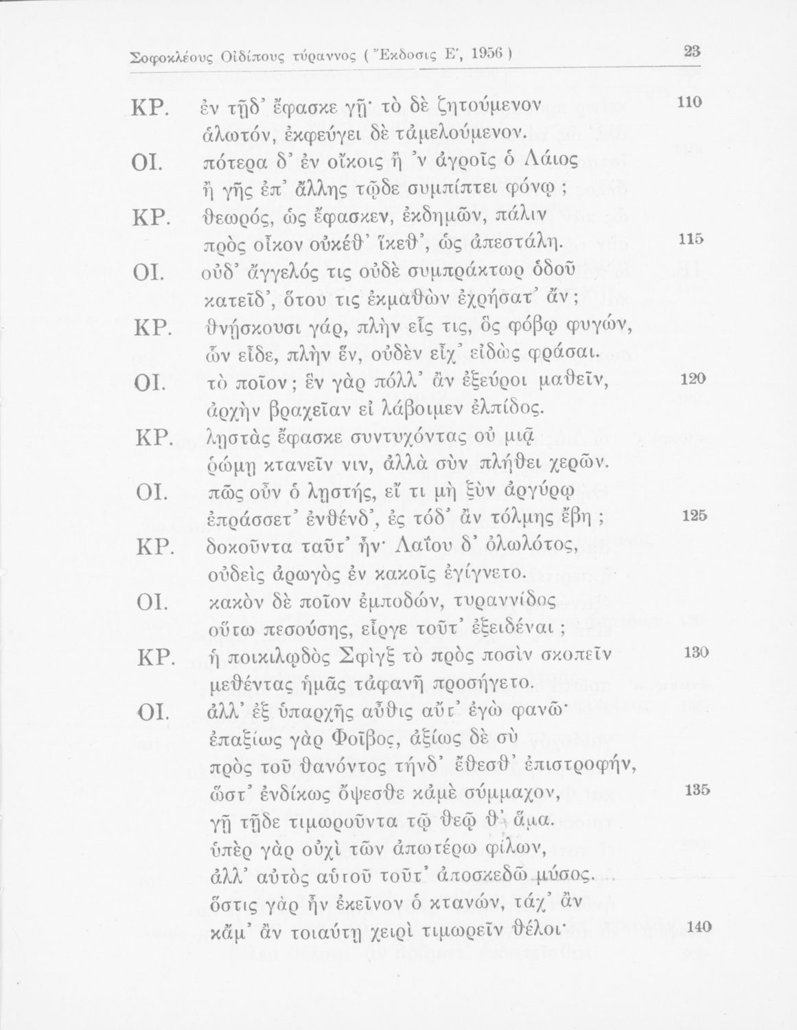 Σχολικό εγχειρίδιο του Γυμνασίου για το μάθημα των Αρχαίων Ελληνικών που περιέχει την τραγωδία του Σοφοκλή Οιδίπους Τύραννος, ερμηνευτικά και πραγματολογικά σχόλια και λεξιλογικές παρατηρήσεις.