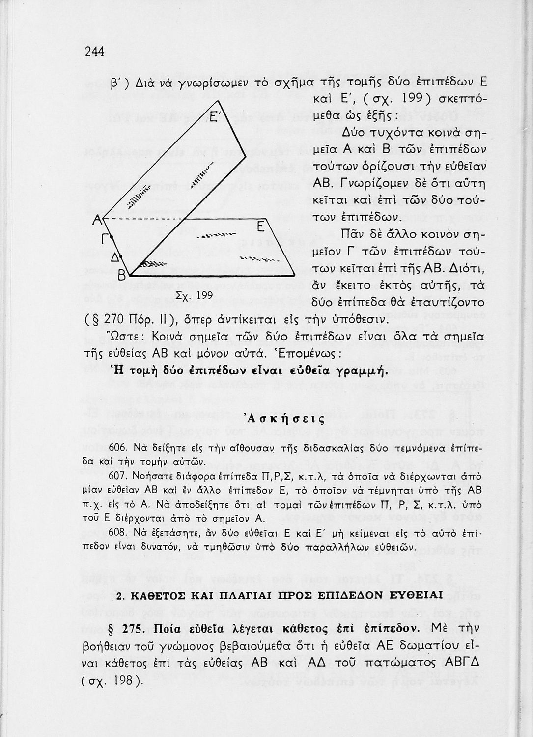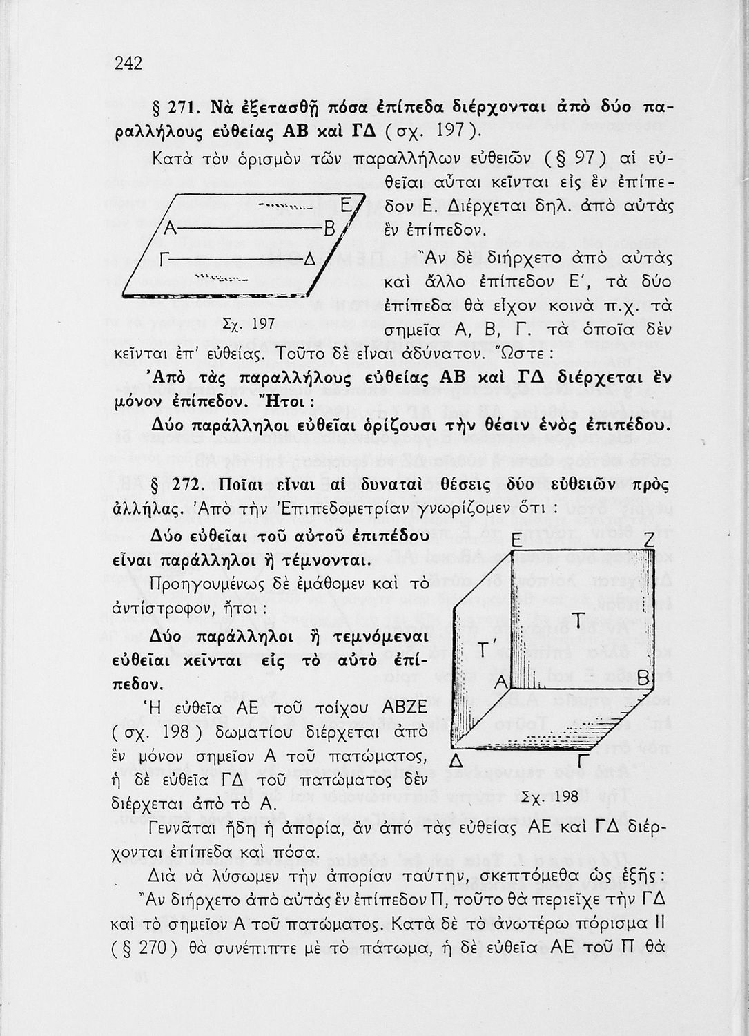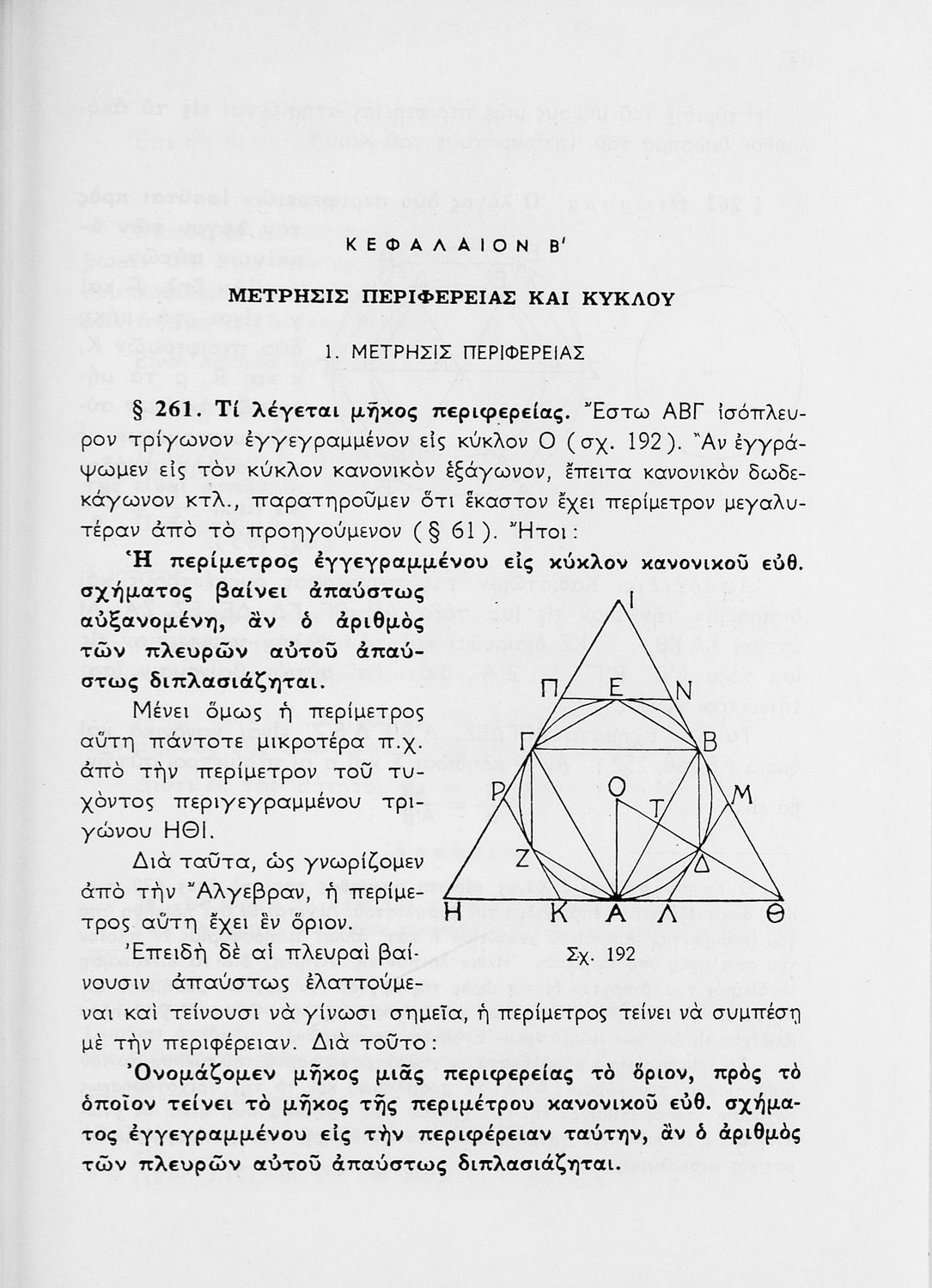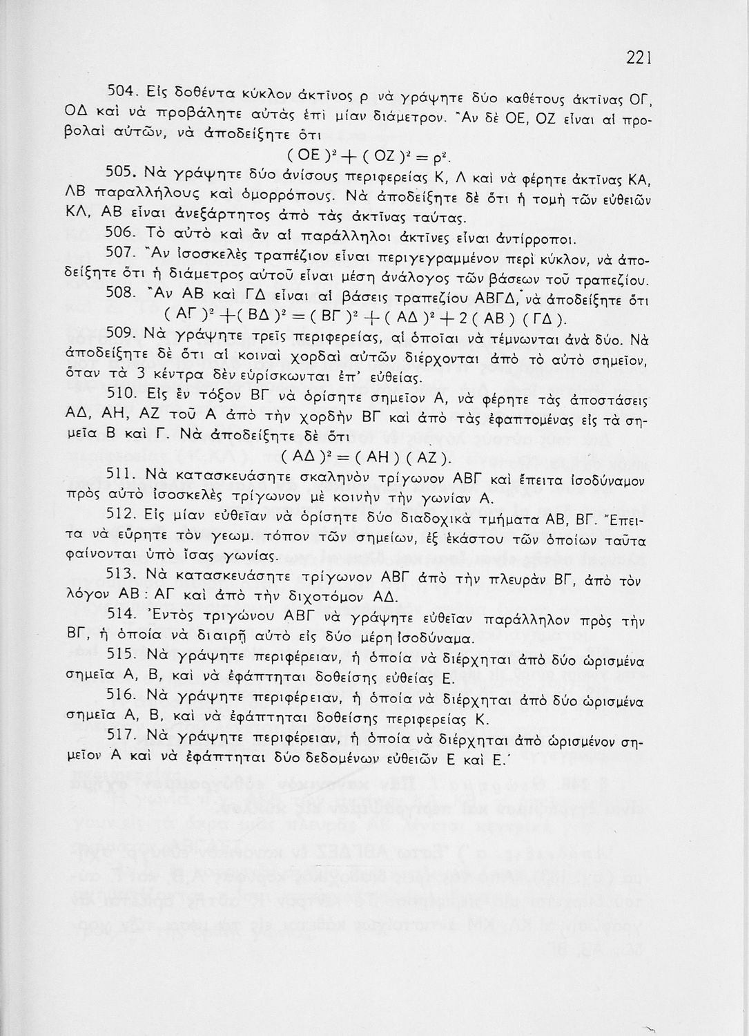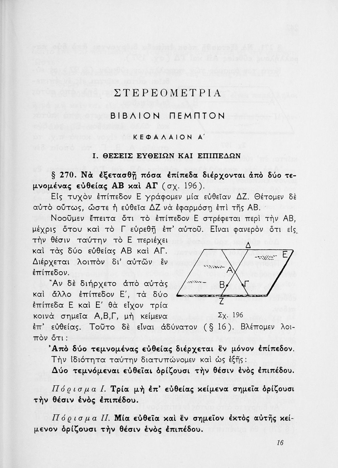 Σχολικό εγχειρίδιο Γεωμετρίας που περιλαμβάνει θεωρία και ασκήσεις και είναι χωρισμένο σε Επιπεδομετρία και Στερεομετρία.