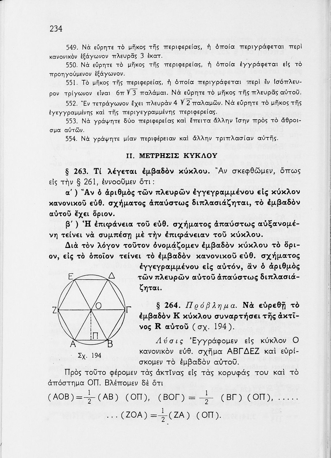 Σχολικό εγχειρίδιο Γεωμετρίας για τις Γ΄, Δ΄, Ε΄, ΣΤ΄ Γυμνασίου που περιλαμβάνει θεωρία και ασκήσεις και είναι χωρισμένο σε Επιπεδομετρία και Στερεομετρία.
