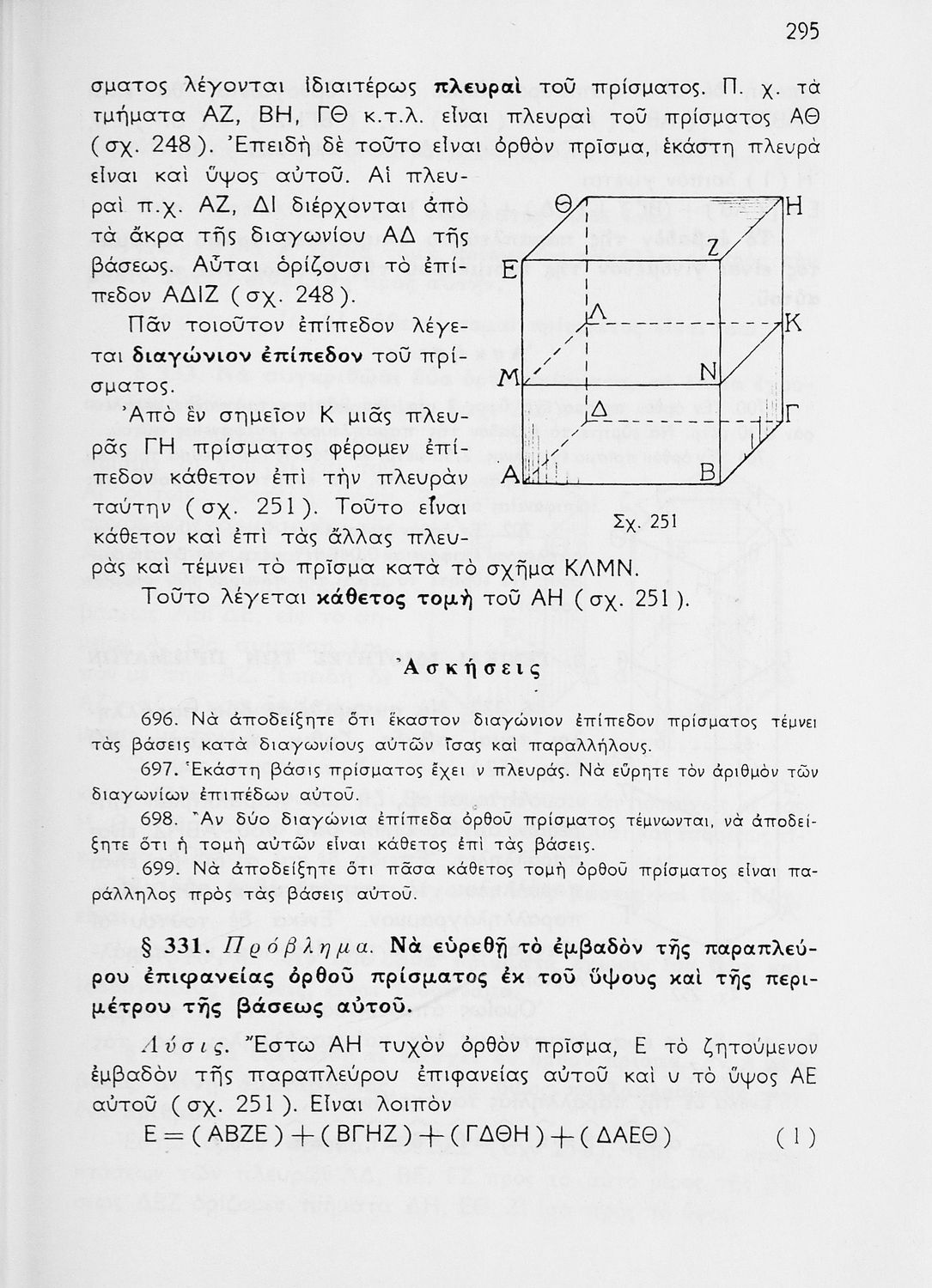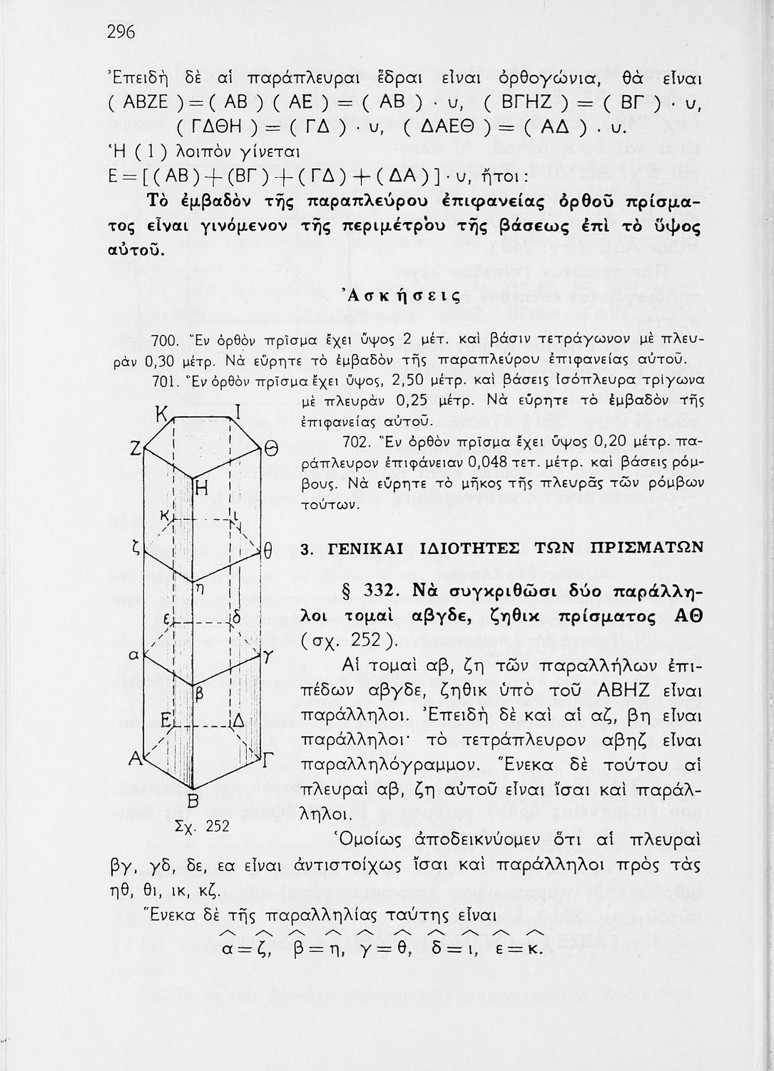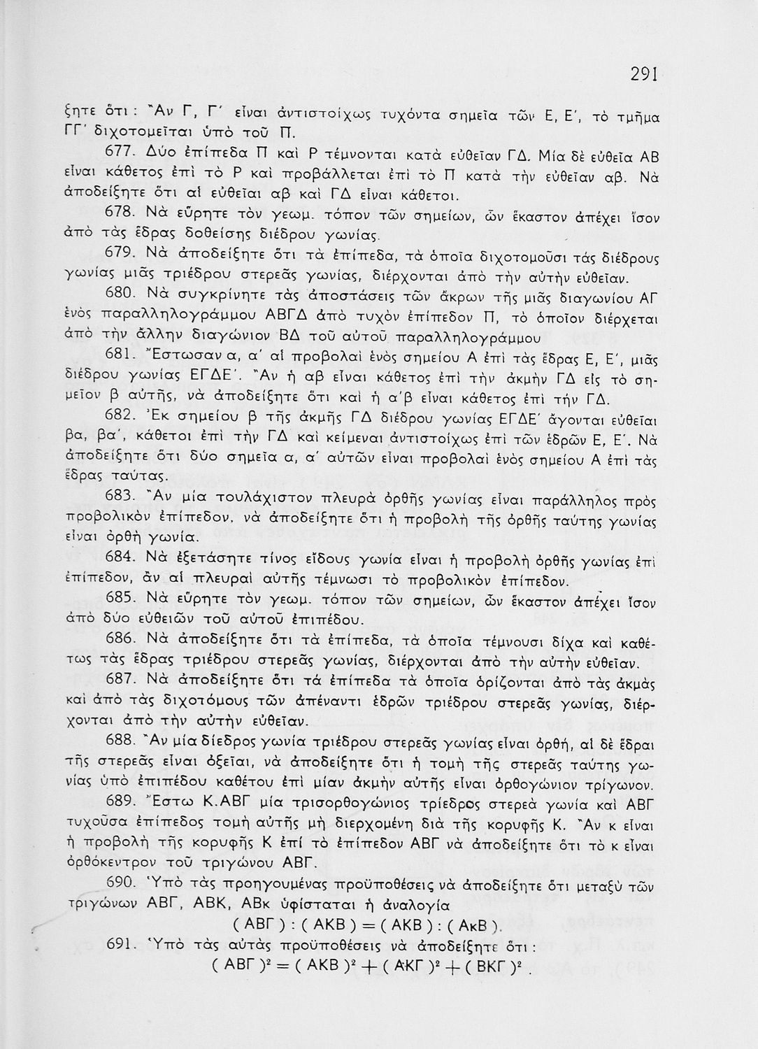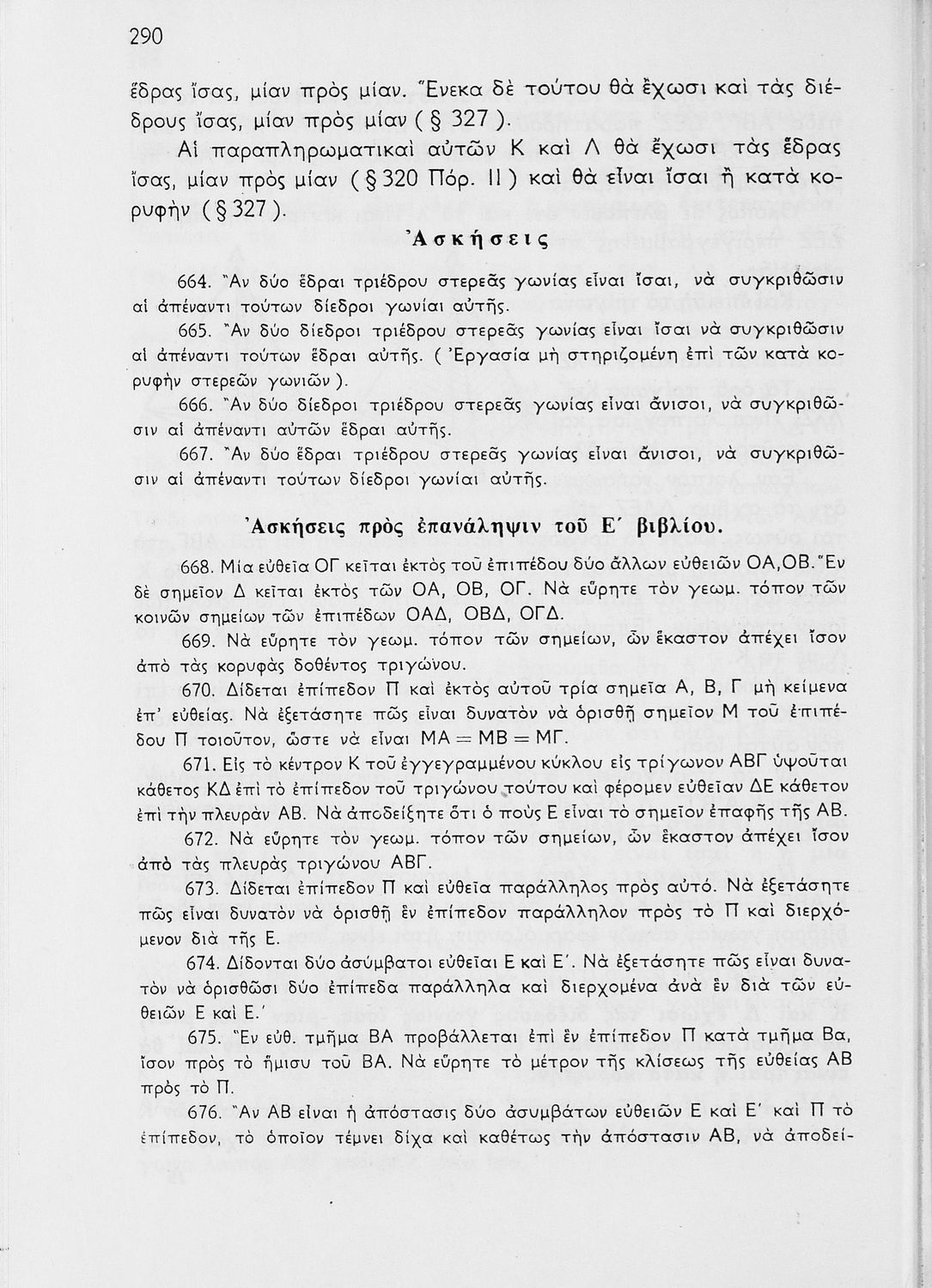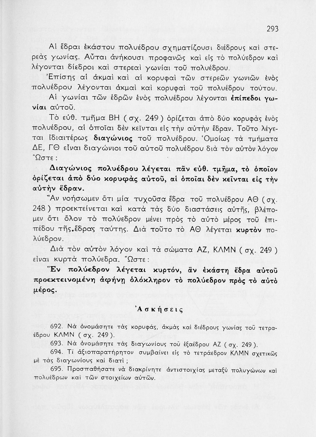 Σχολικό εγχειρίδιο Γεωμετρίας που περιλαμβάνει θεωρία και ασκήσεις και είναι χωρισμένο σε Επιπεδομετρία και Στερεομετρία.