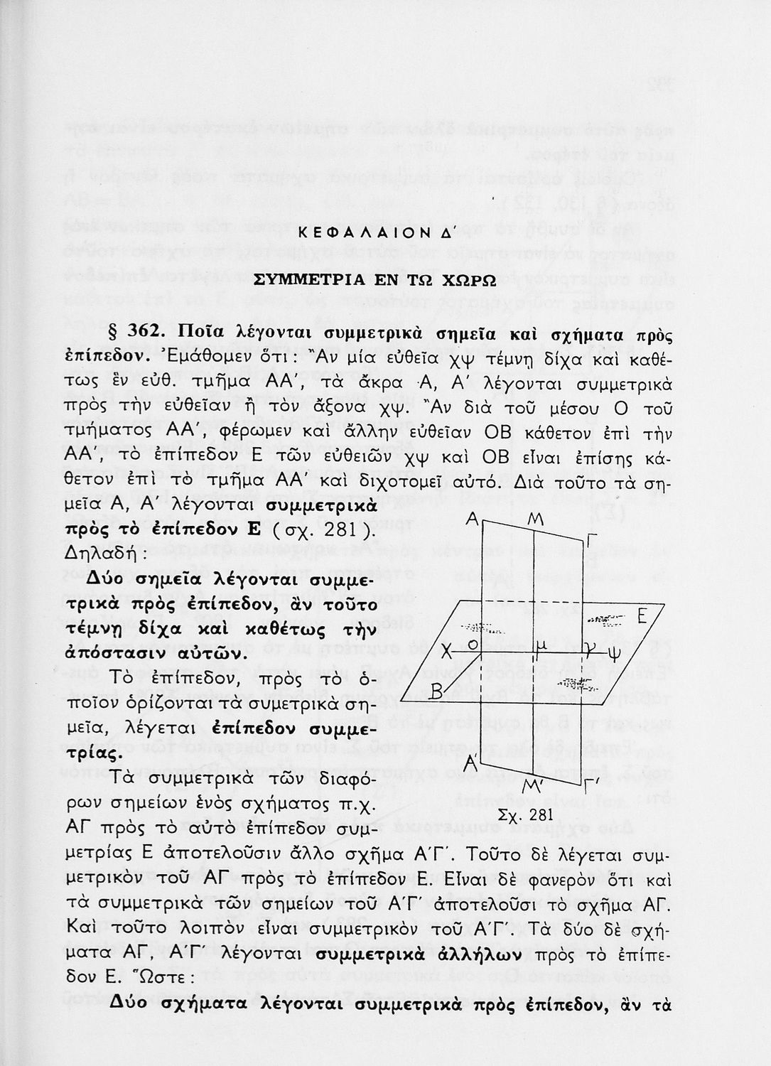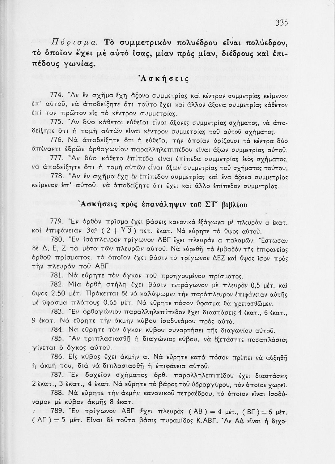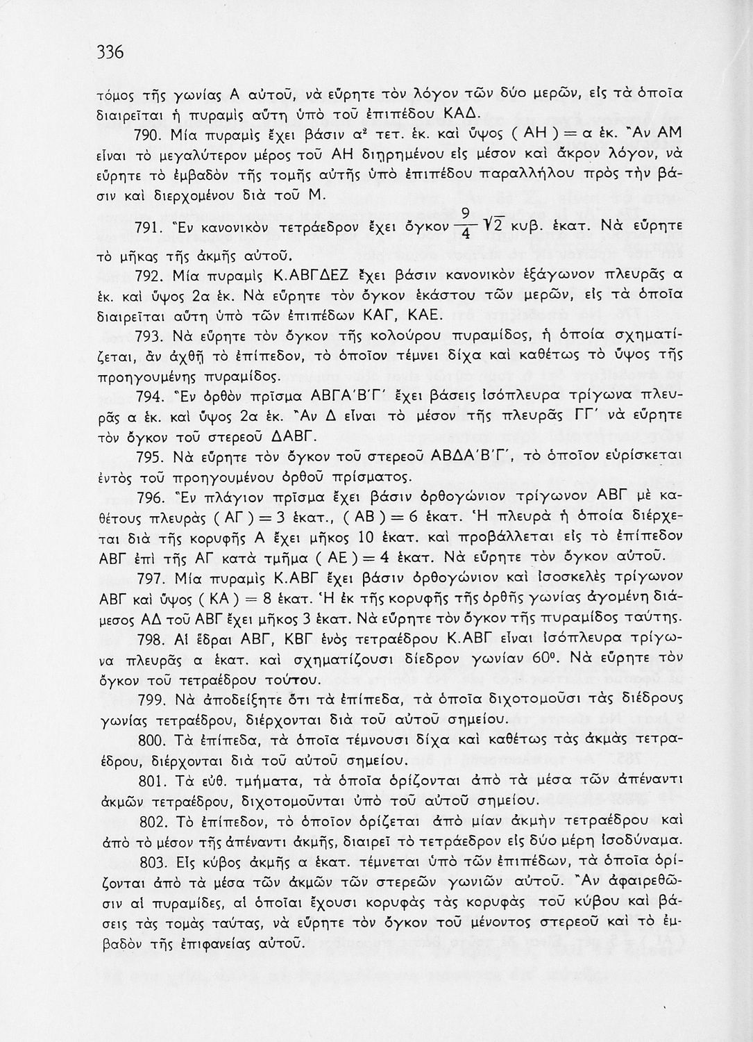 Σχολικό εγχειρίδιο Γεωμετρίας που περιλαμβάνει θεωρία και ασκήσεις και είναι χωρισμένο σε Επιπεδομετρία και Στερεομετρία.