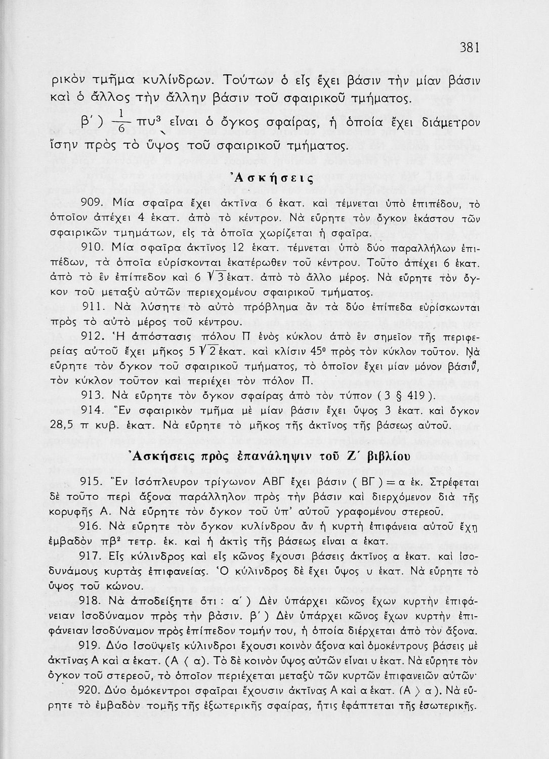Σχολικό εγχειρίδιο Γεωμετρίας που περιλαμβάνει θεωρία και ασκήσεις και είναι χωρισμένο σε Επιπεδομετρία και Στερεομετρία.