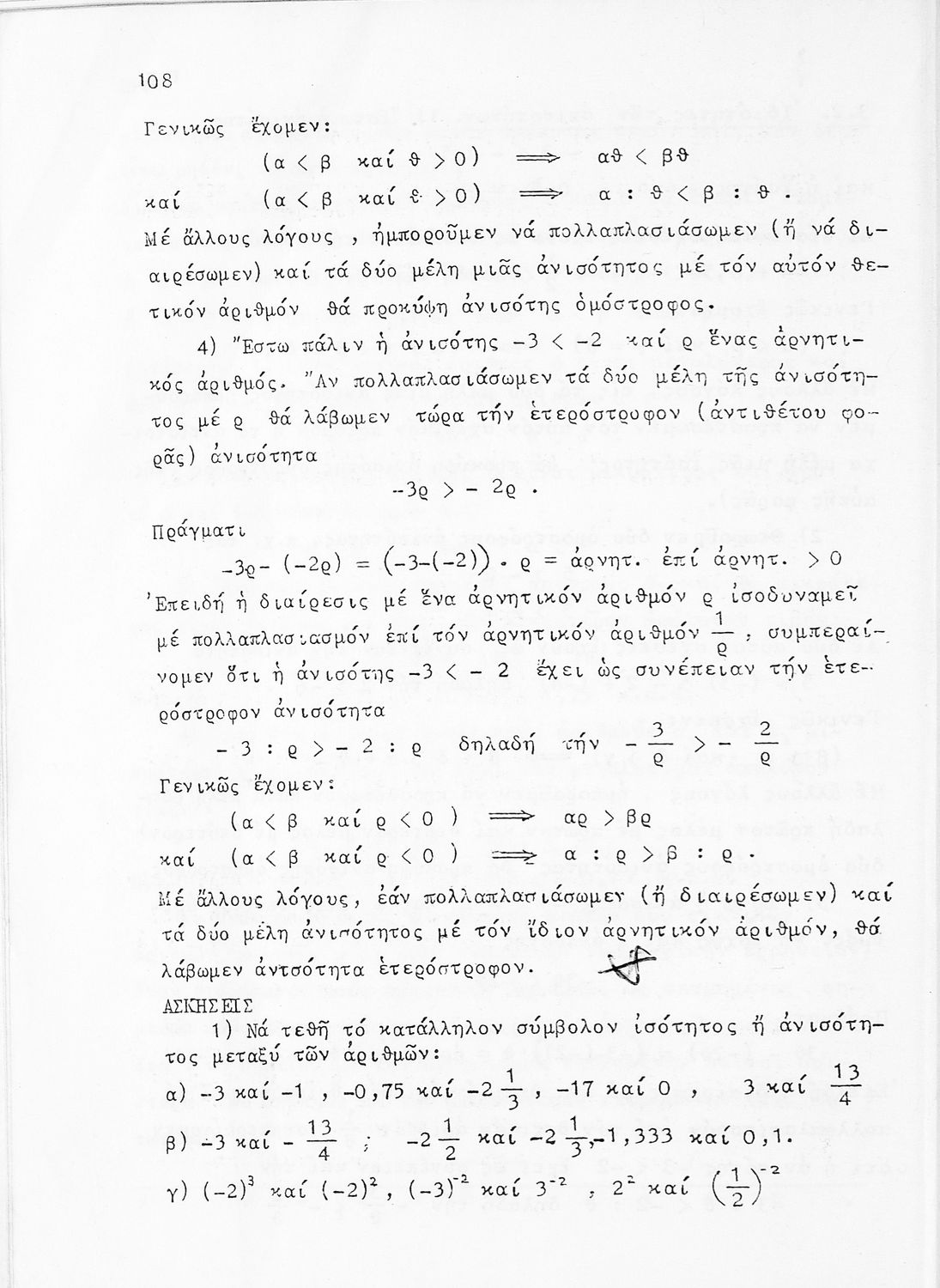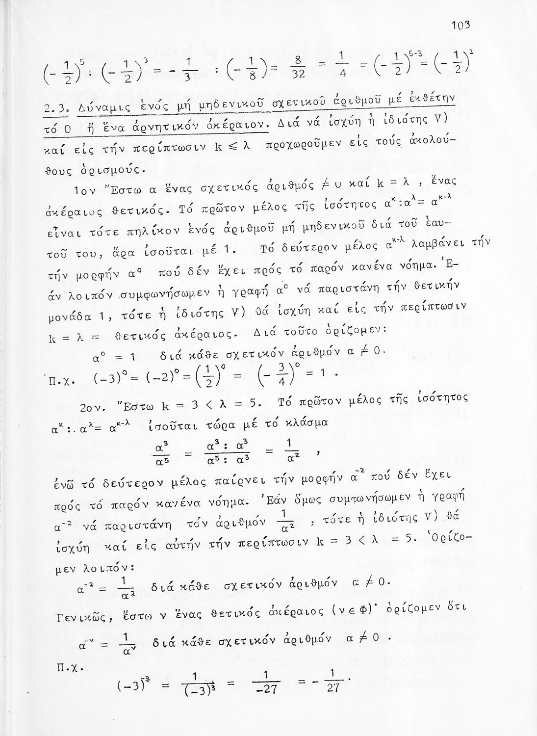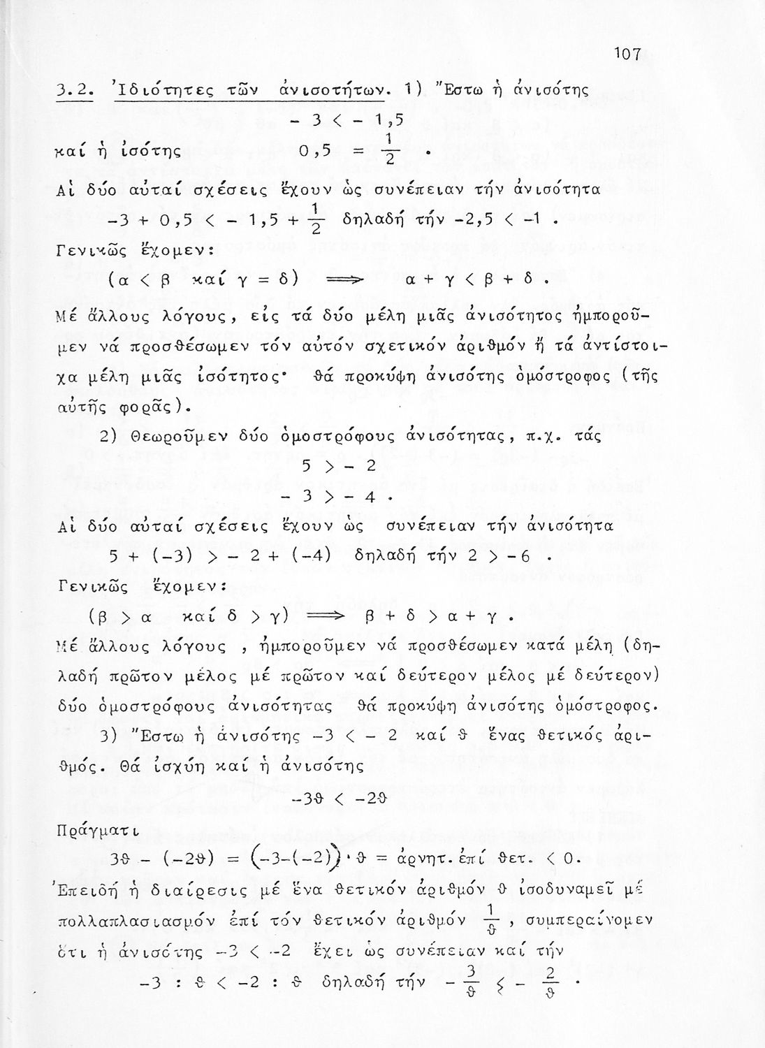 Σχολικό εγχειρίδιο Μαθηματικών Β΄ Γυμνασίου χωρισμένο σε θεωρία και ασκήσεις. Φέρει το σύμβολο της δικτατορίας.